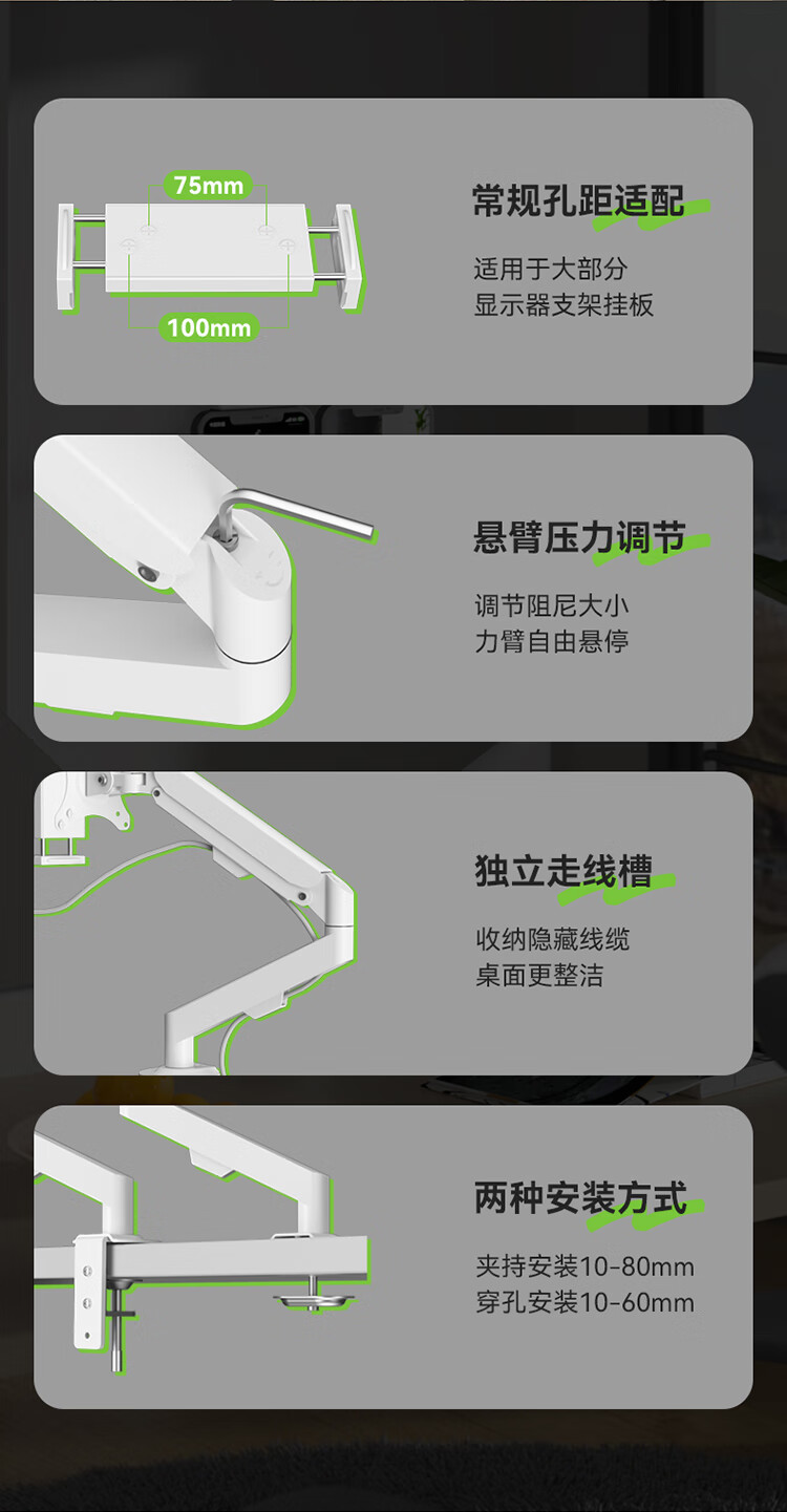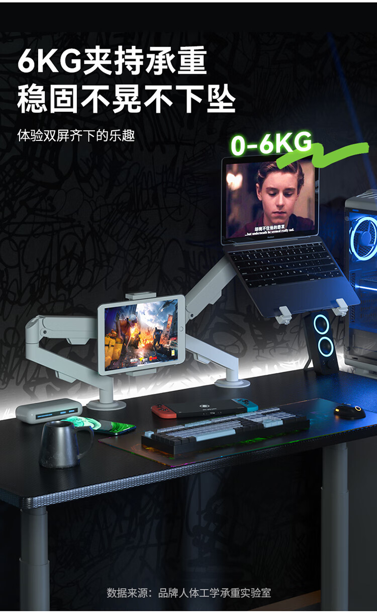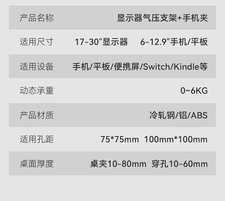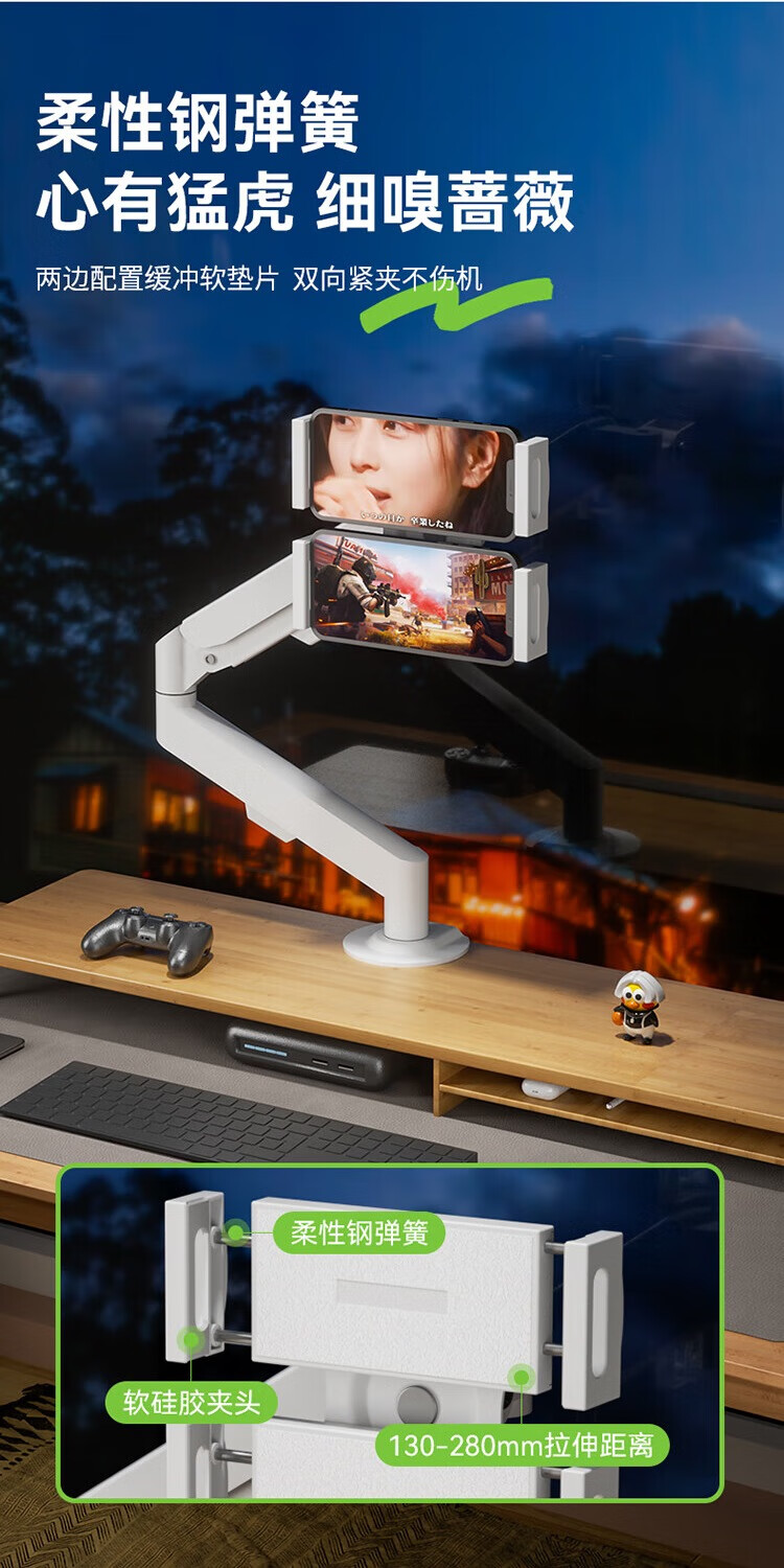 HILLPORT adapts to the sculptor's portable screen bedside desktop stand. Mobile phone tablet stand can be lifted, rotated, elevated, iPad table clip or perforated. Small screen air pressure arm/portable screen/0-6KG/metal shaft white
