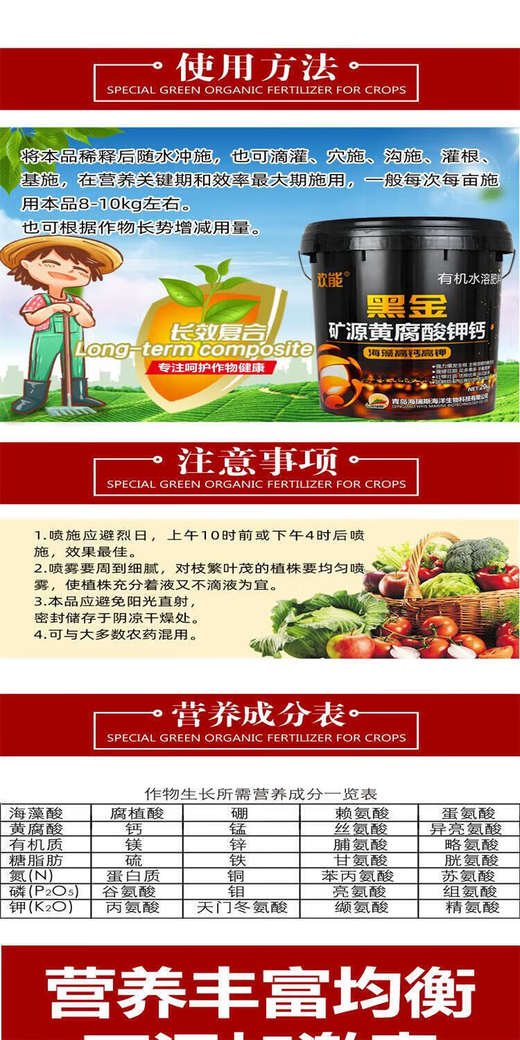 Huaneng Mineral Source Potassium Fulvic Acid High Calcium High Potassium Root Expansion Fruit Increase Yield Organic Water-Soluble Fertilizer Fruit Tree Vegetable Fertilizer Bucket Fertilizer 20kg* Bucket Delivered to Your Door