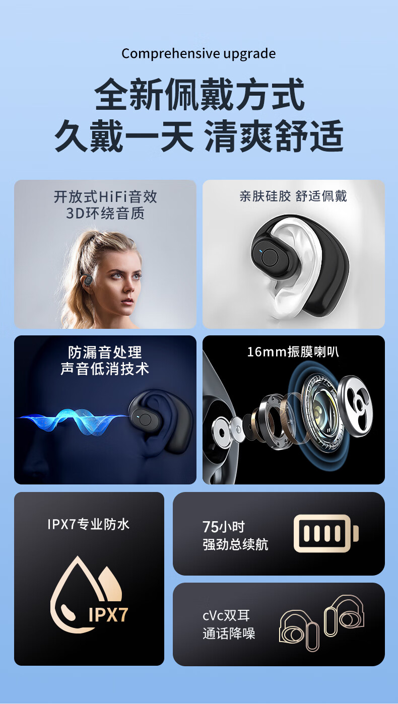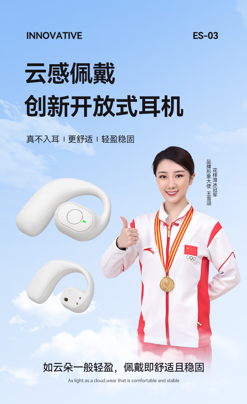 Xiaomi Xiaomi Youpin Mall Bluetooth Headset 2025 New Wireless Over-Ear Open No-Ear Air Bone Conduction Transport New Version Oil White HIFI Sound Quality + HD Call Standard