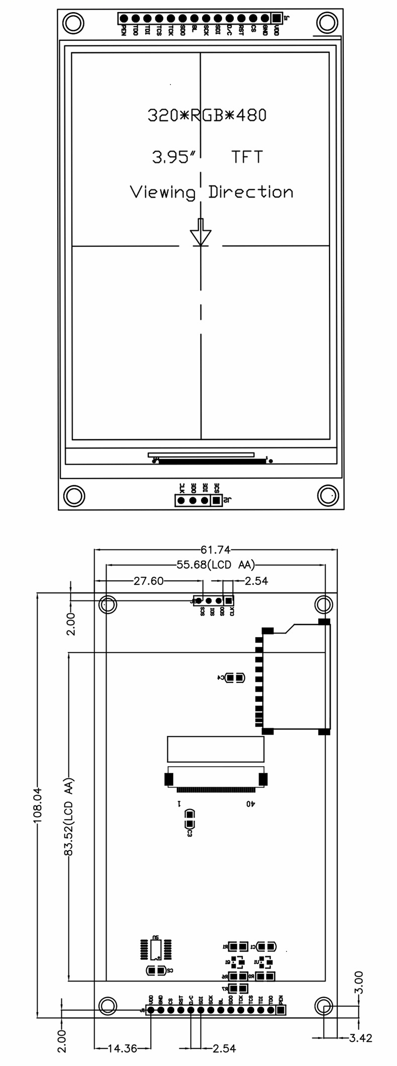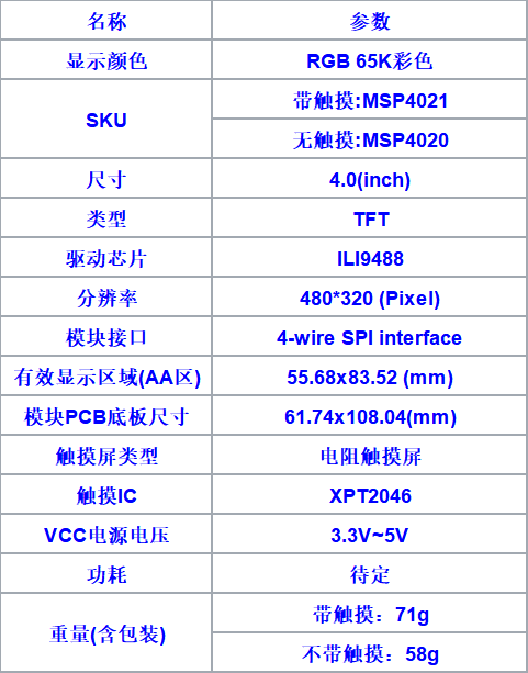 Brand new 4.0-inch SPI serial LCD screen touch screen module 480*320TFT display module ILI9488 IPS full viewing angle-with touch