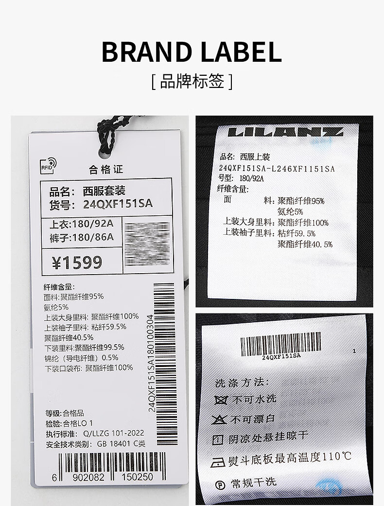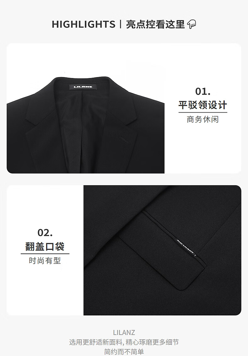 Lilan suit suit male groom wedding dress business formal autumn 2025 new men's suit black (24QXF151SA) 165A