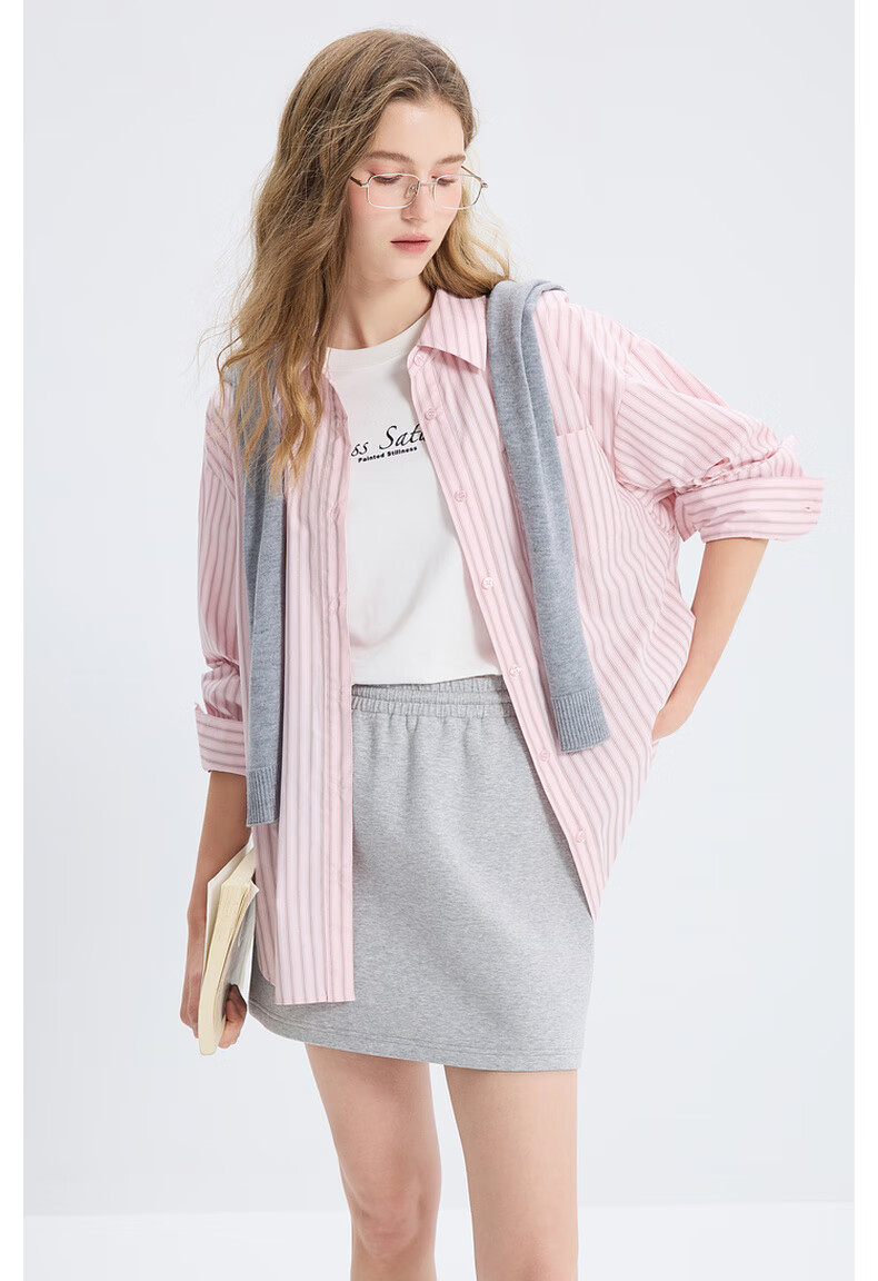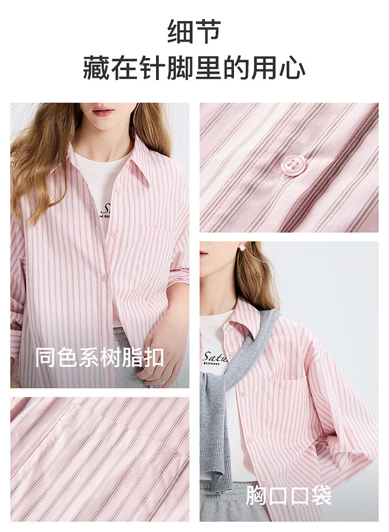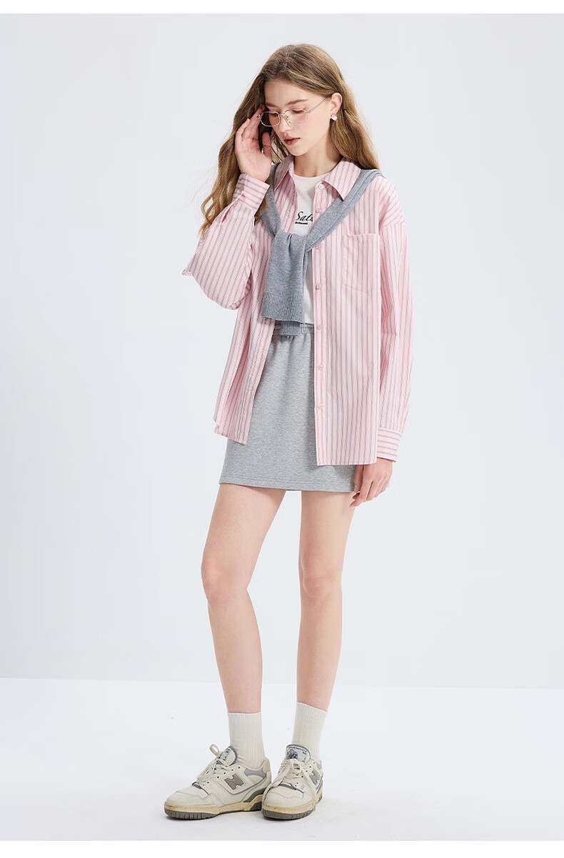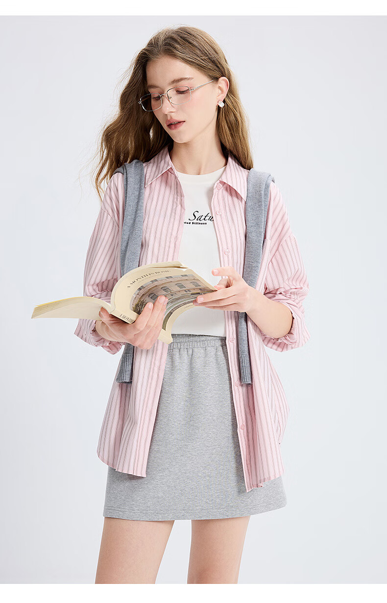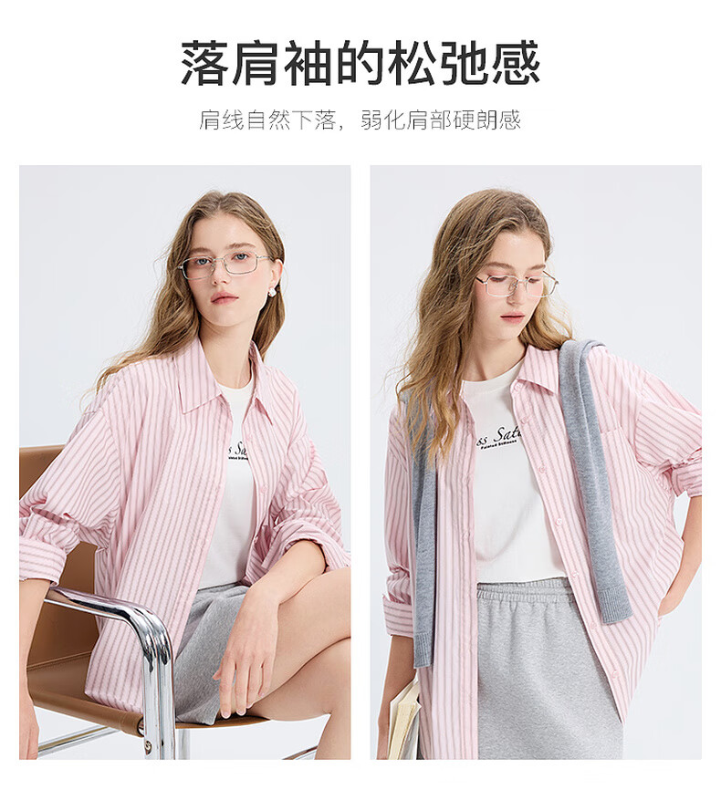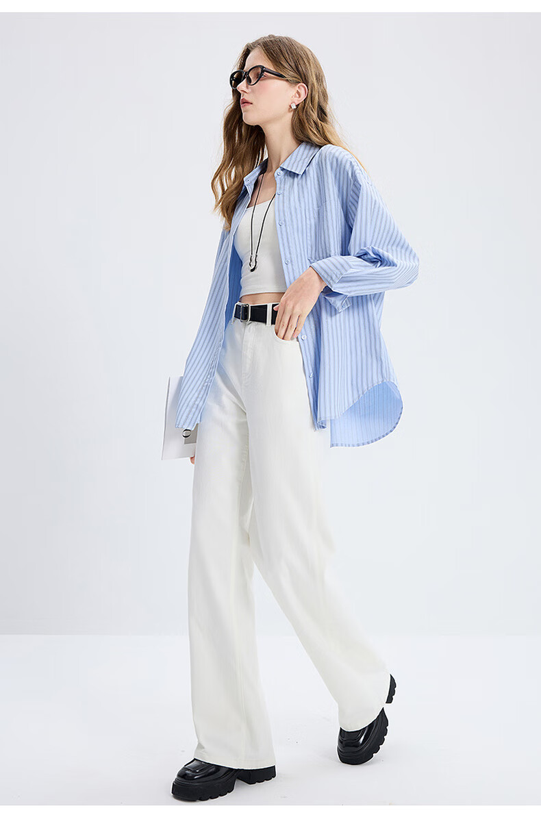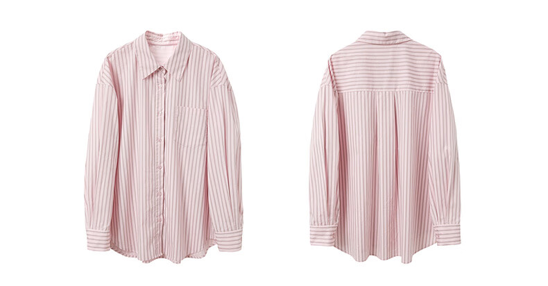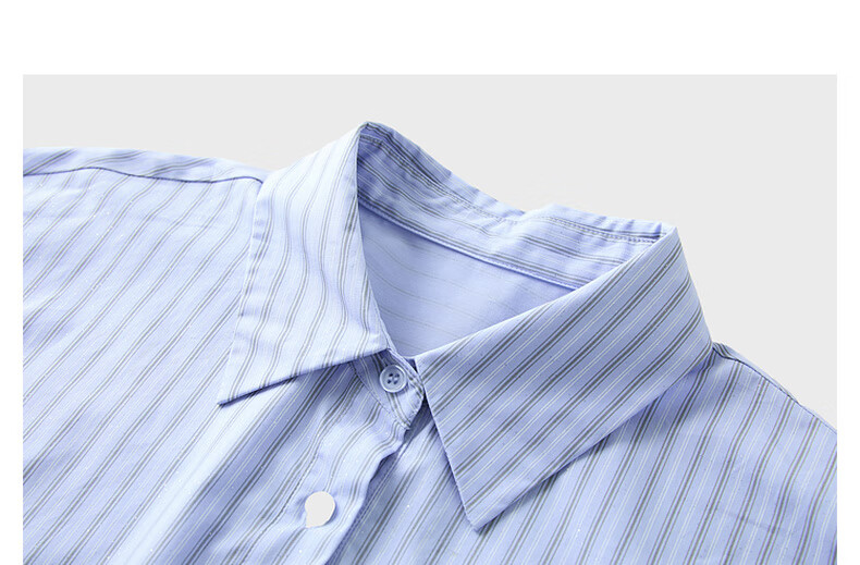 Tricolor 100 Cotton 2025 Autumn New Long Sleeve Loose Striped Shirt Lapel Shirt Cardigan Top M Glacier Blue Stripe M 160/84A