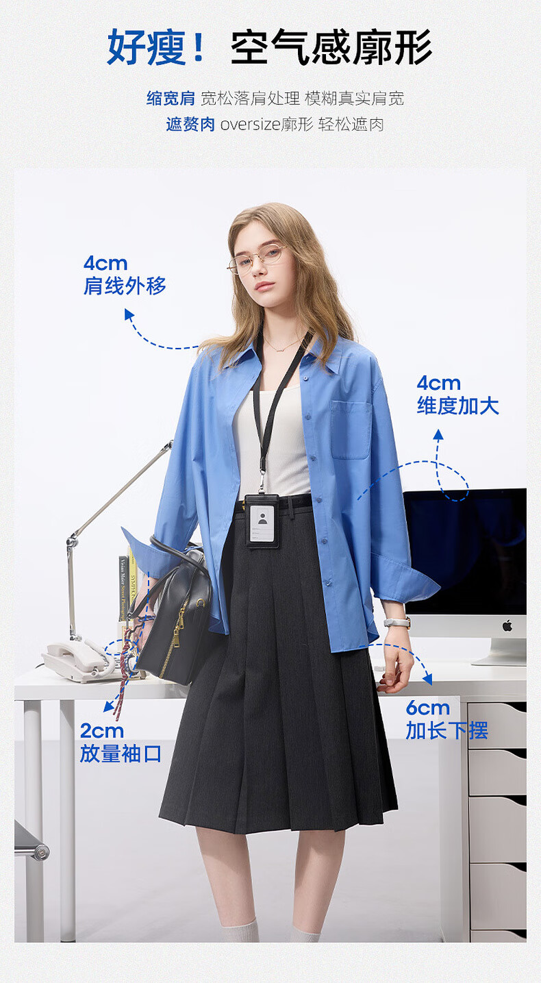 Sancai 2025 Autumn New Solid Color Shirt Lapel Loose Shirt Simple Commuting Layer Z Pearl White M 160/84A