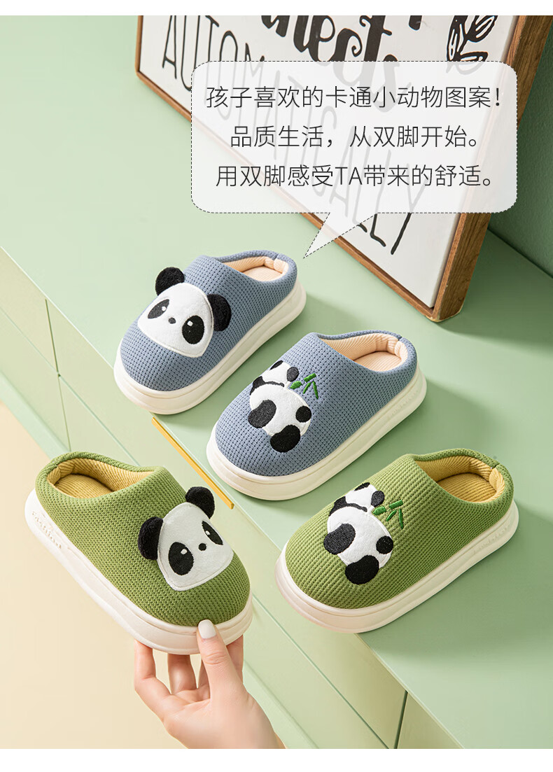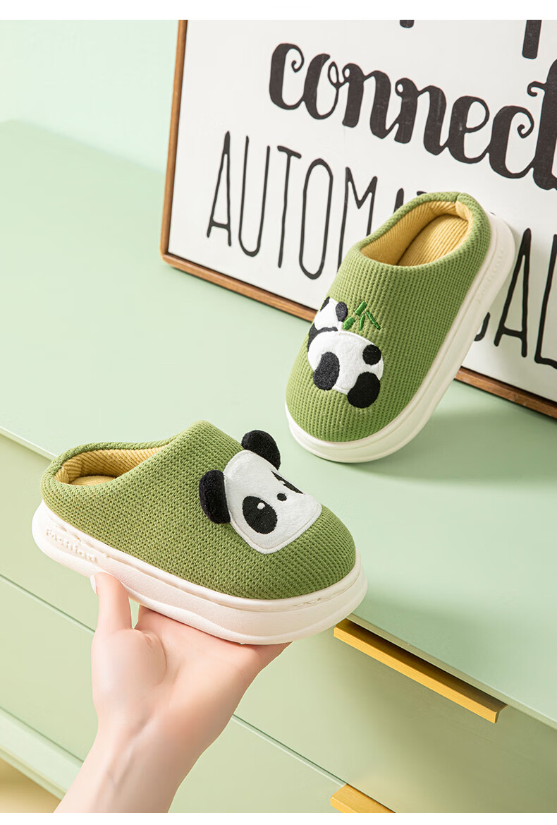 Robot Pig Autumn and Winter Children's Cotton Slippers for Boys and Girls Non-Slip Thick-soled Cartoon Indoor Adult Children's Baby Home Care Green 30-31 Size Shoe Inner Length 19cm