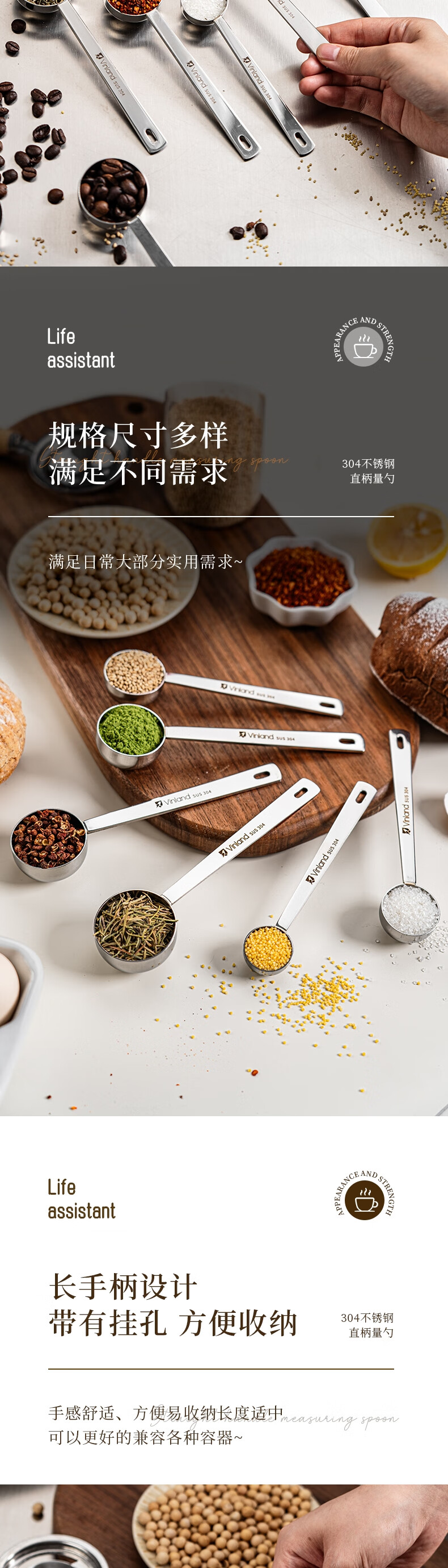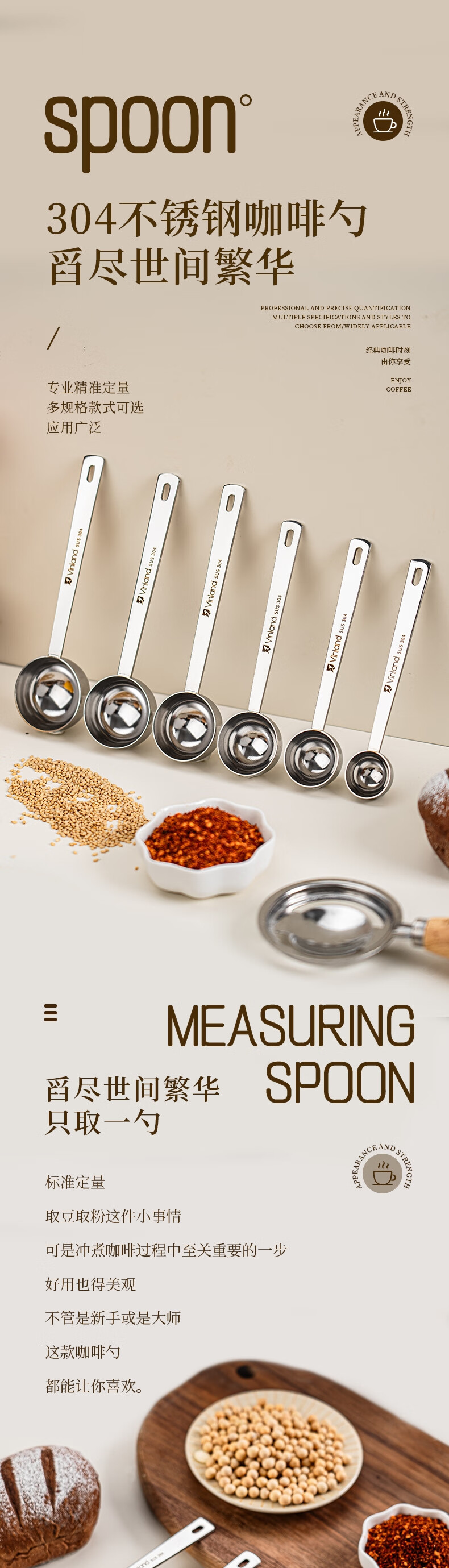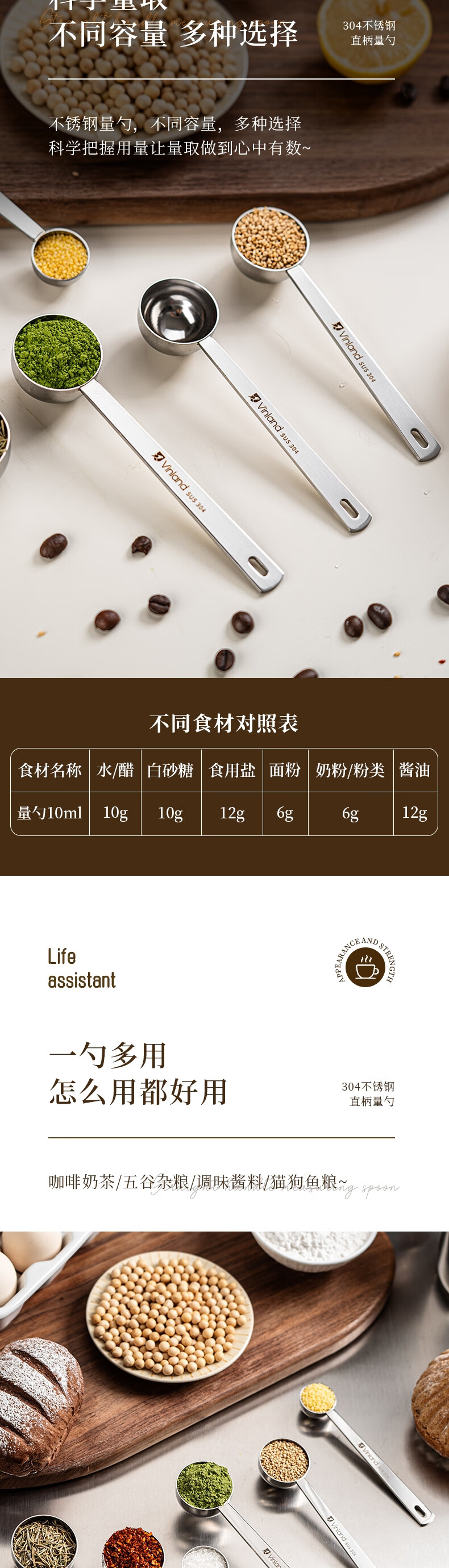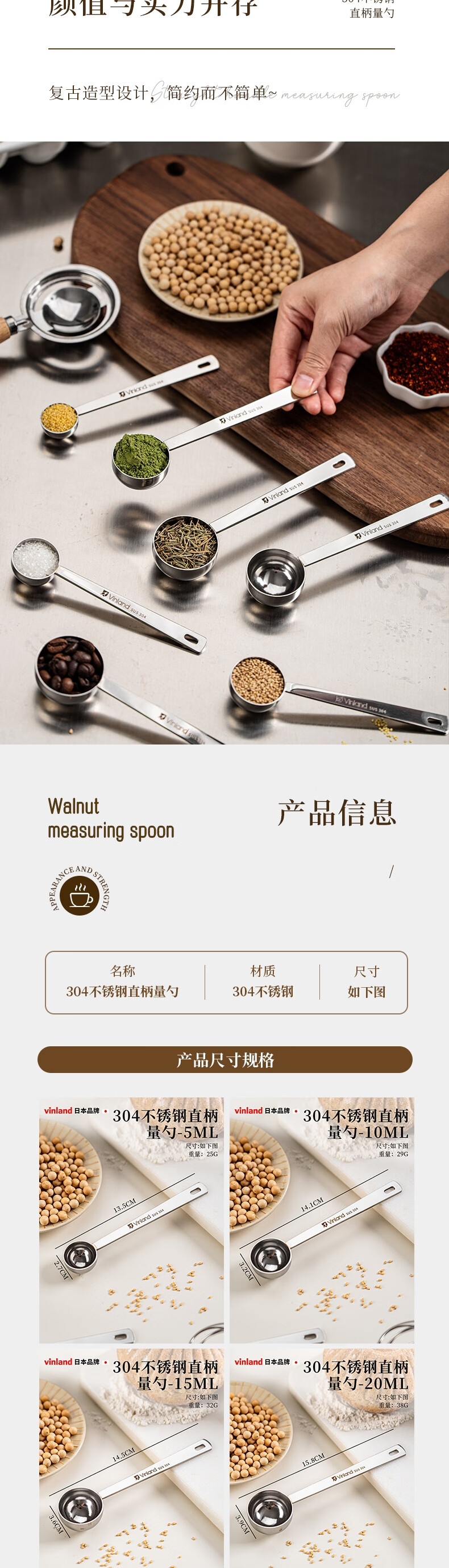 Vinland Japanese stainless steel measuring spoon coffee bean spoon quantitative 5g 15 milk powder spoon seasoning salt spoon controlled decimal 10ml304 304 stainless steel straight handle measuring spoon-5ml