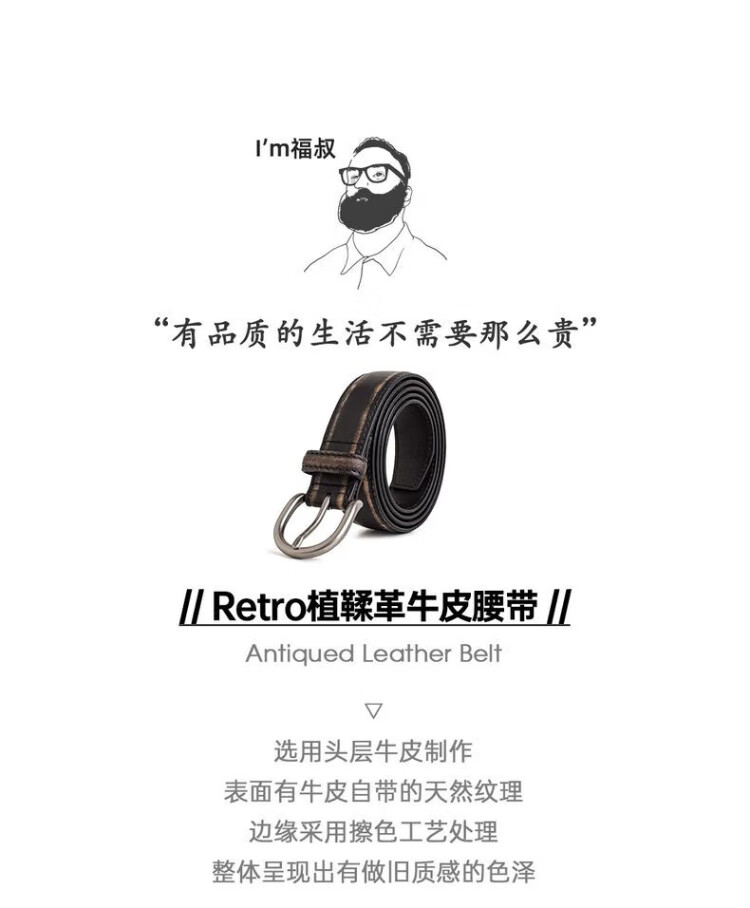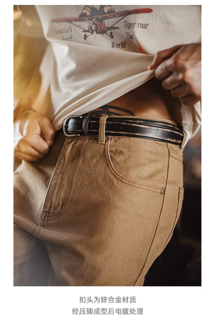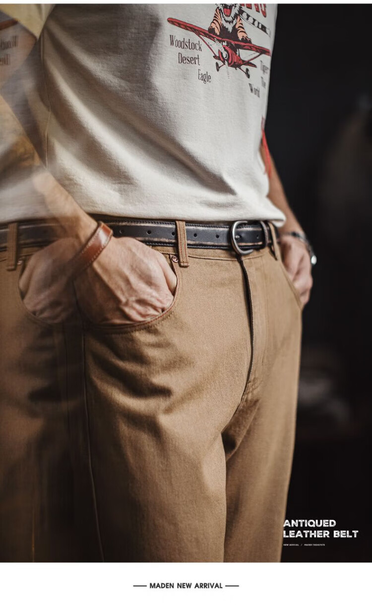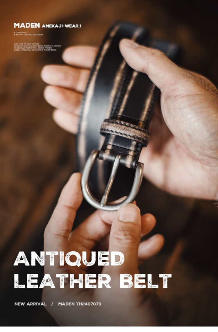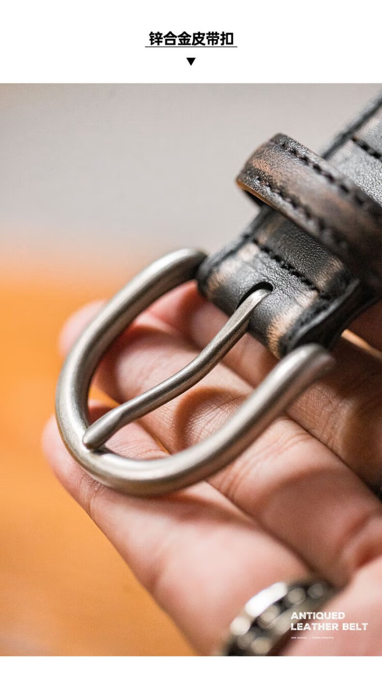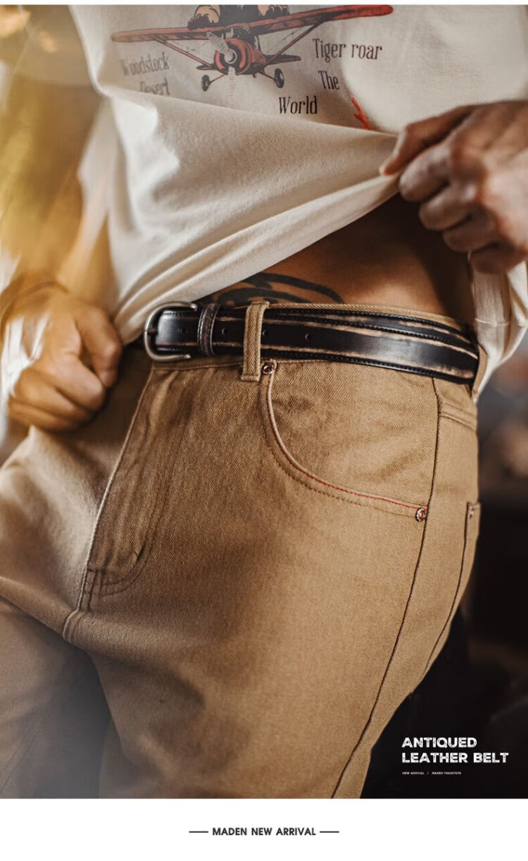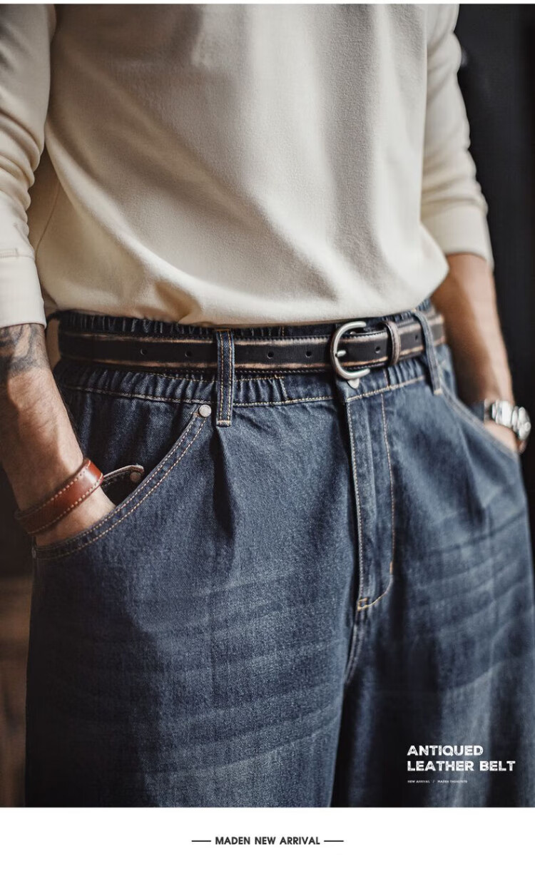 Madden Workwear Retro Vegetable Tanned Leather Belt Men's Retro Genuine Leather Belt Single-pin Buckle Trouser Belt Men's Accessories Black Quick-Removal/Color-Rubbing/Waist-Constricting Artifact 115cm Long X 2.9cm Width
