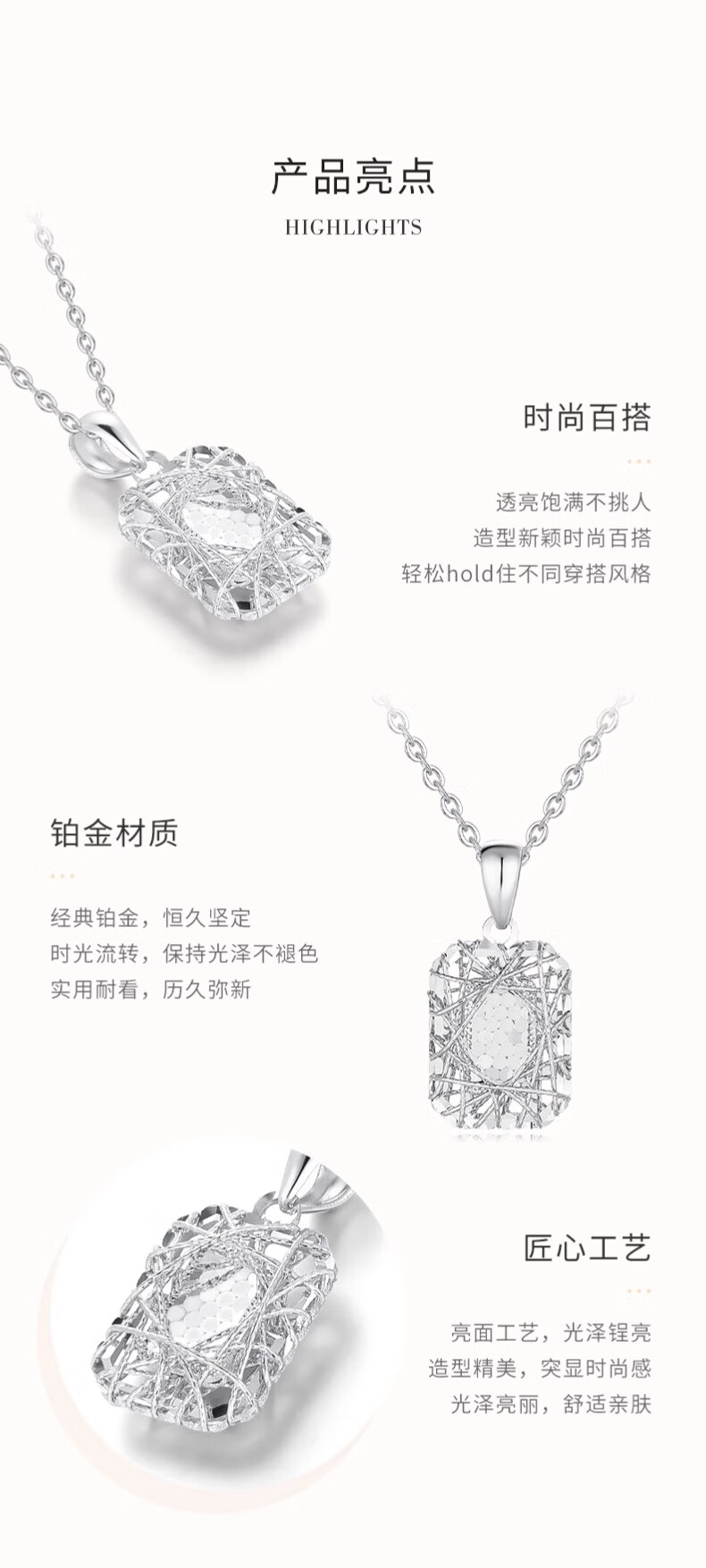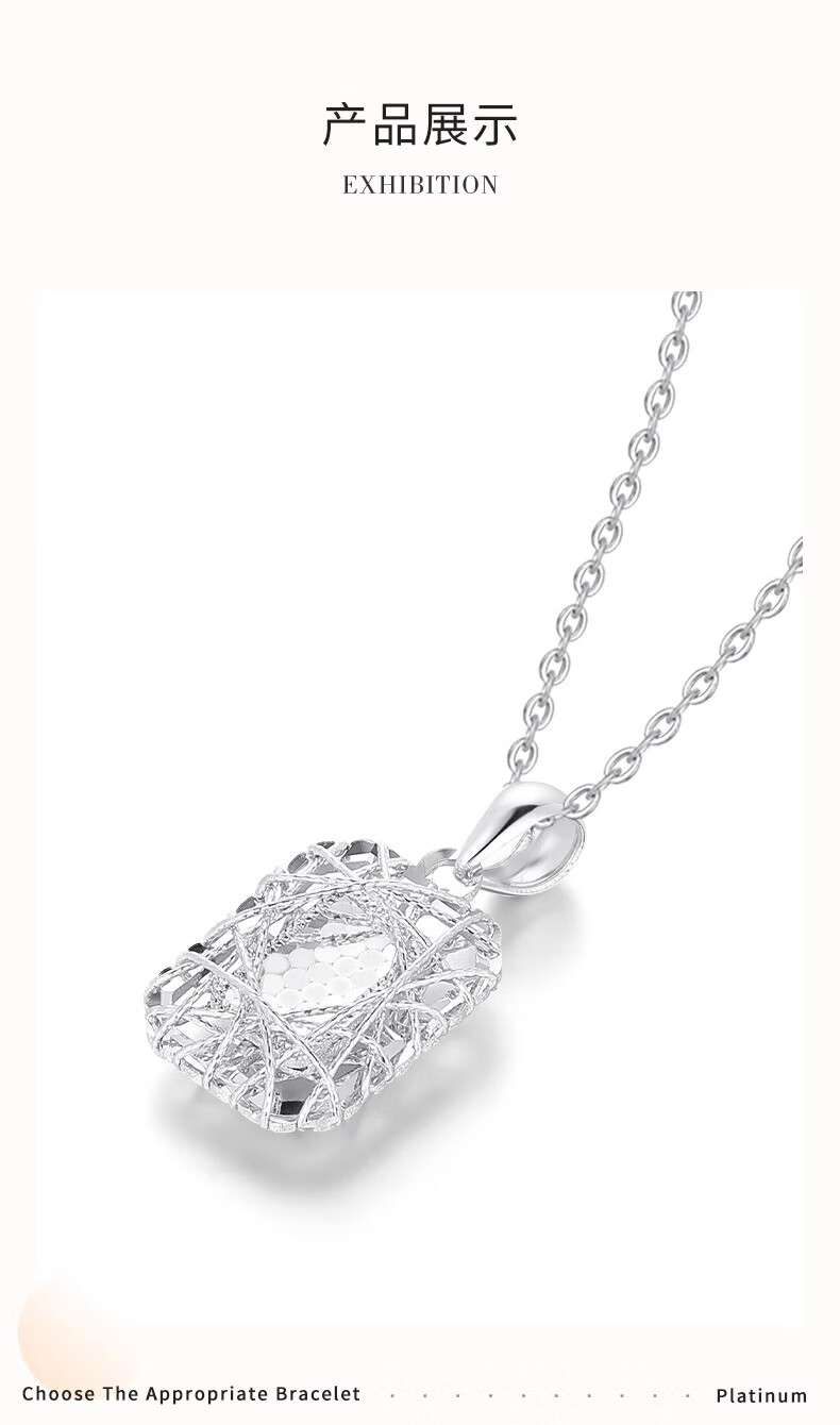 China Gold (CHINA GOLD) PT950 Platinum Platinum Women's Hollow Fish Scale Winding Light Luxury Minimalist Geometric Square Pendant for Girlfriend and Wife Platinum Hollow Fish Scale Square Pendant About 2.1g Free Silver Chain
