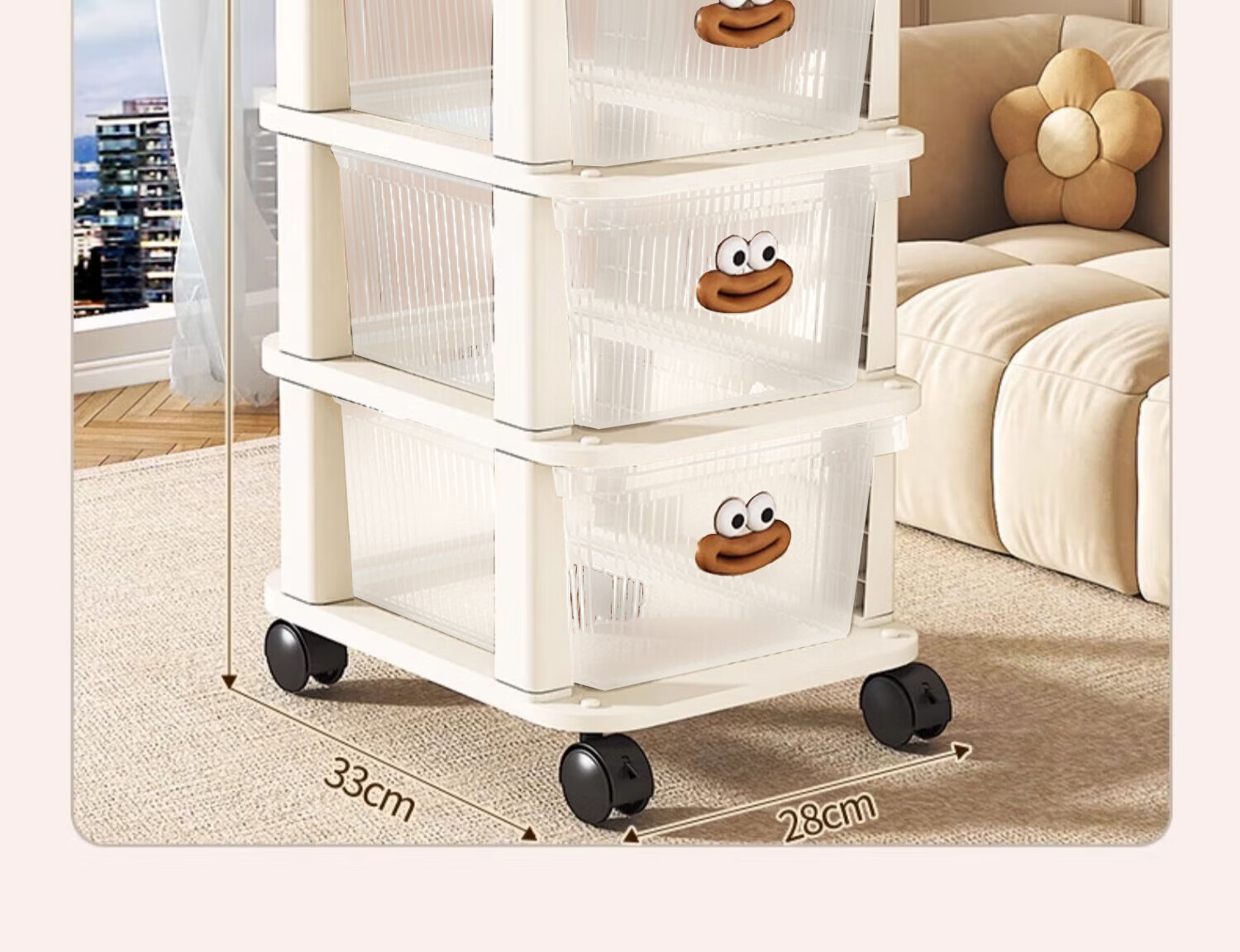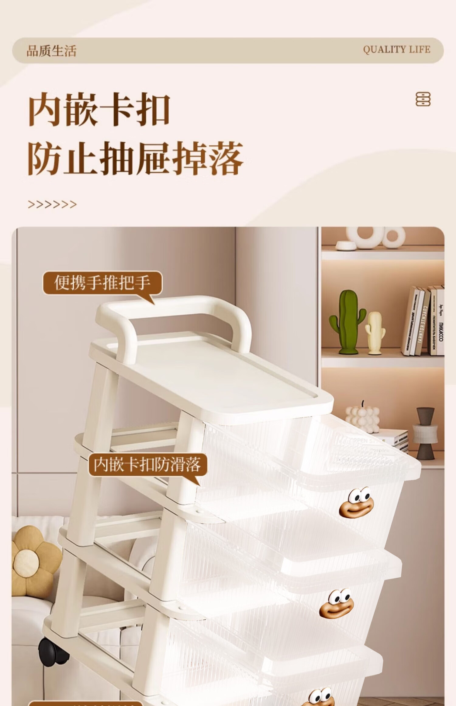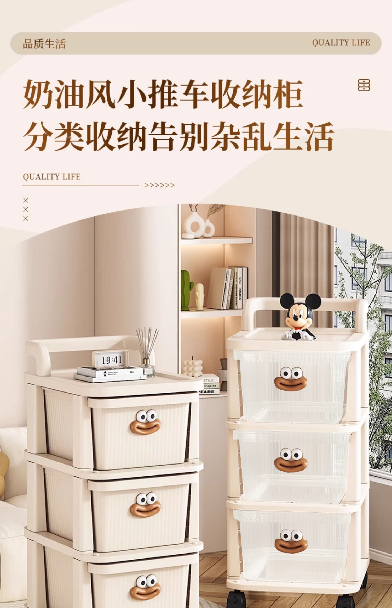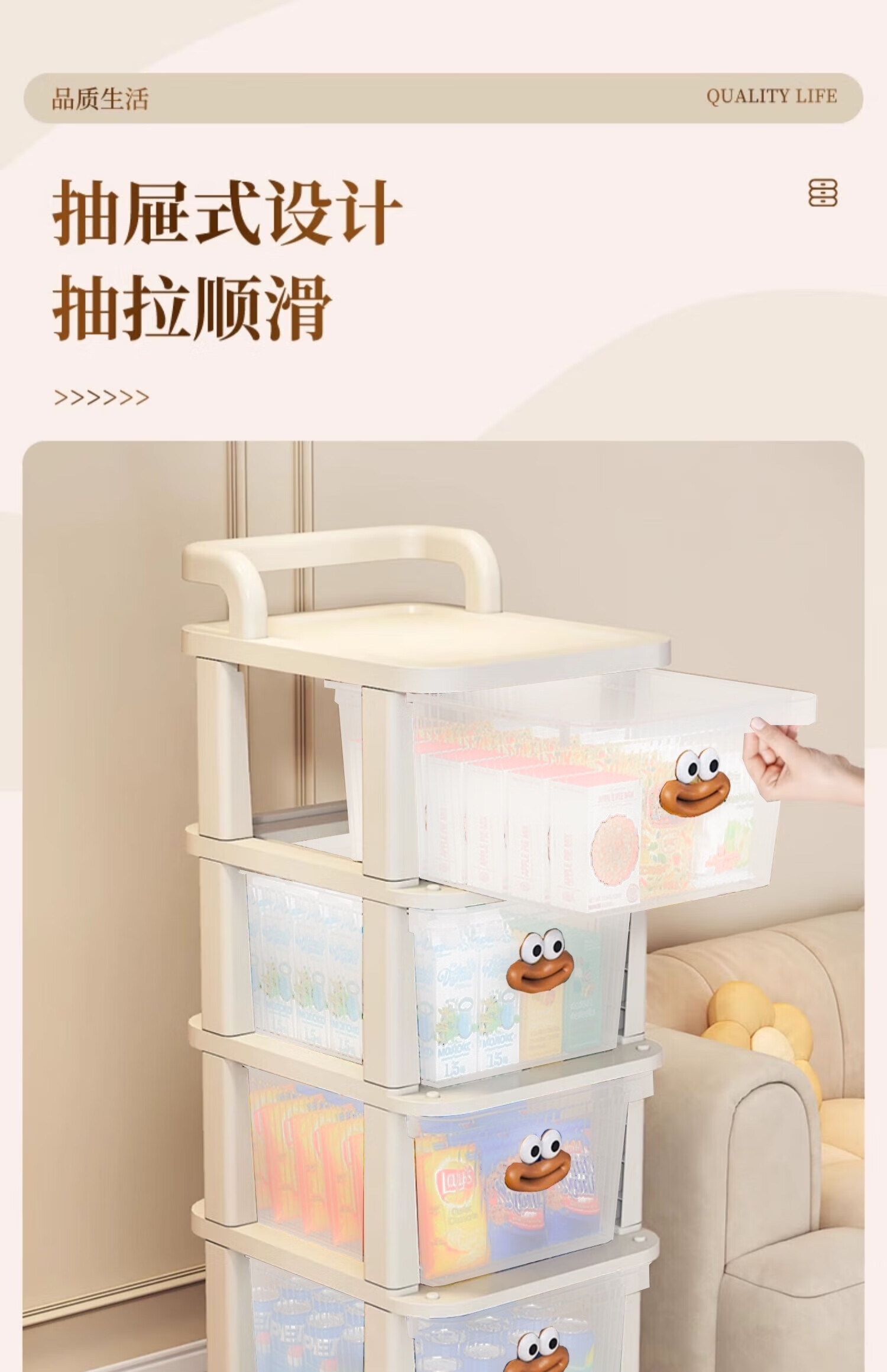 Jiajiesi floor-standing storage rack household snack toy storage cabinet drawer-type mobile multi-layer storage rack trolley transparent drawer model three-layer high cabinet