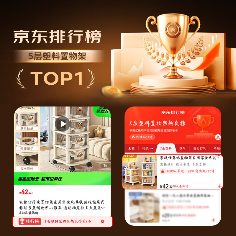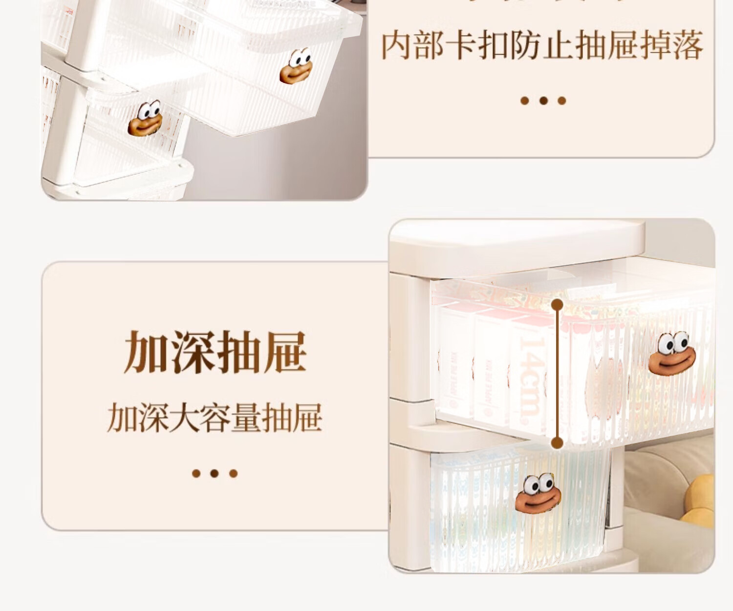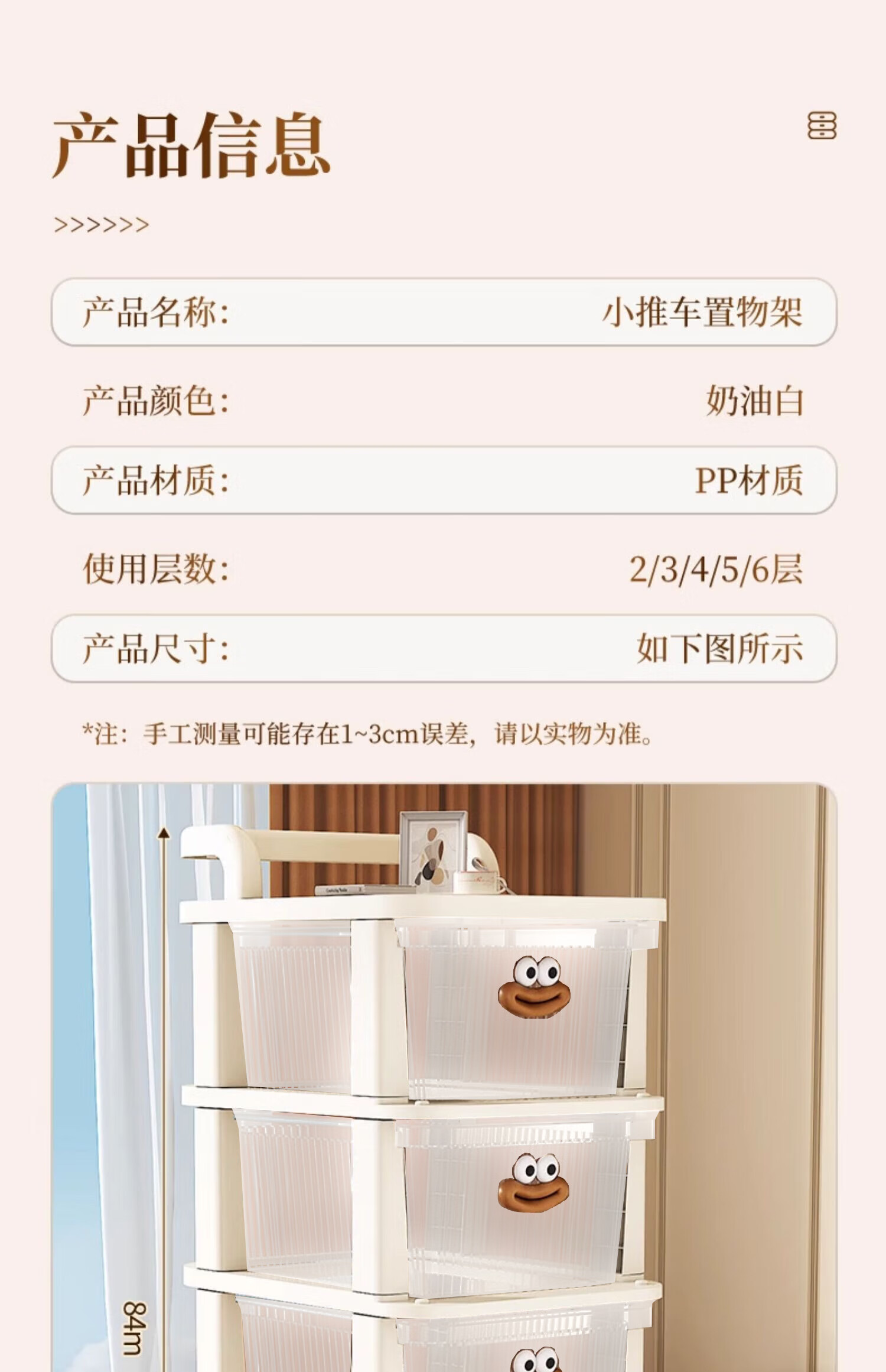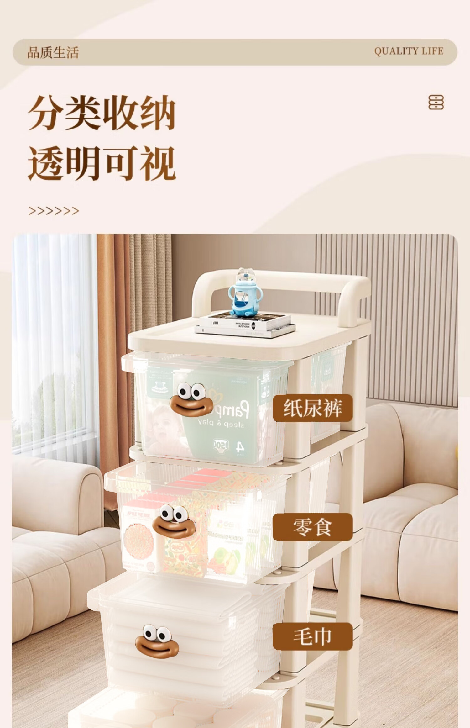 Jiajiesi floor-standing storage rack household snack toy storage cabinet drawer-type mobile multi-layer storage rack trolley transparent drawer model three-layer high cabinet