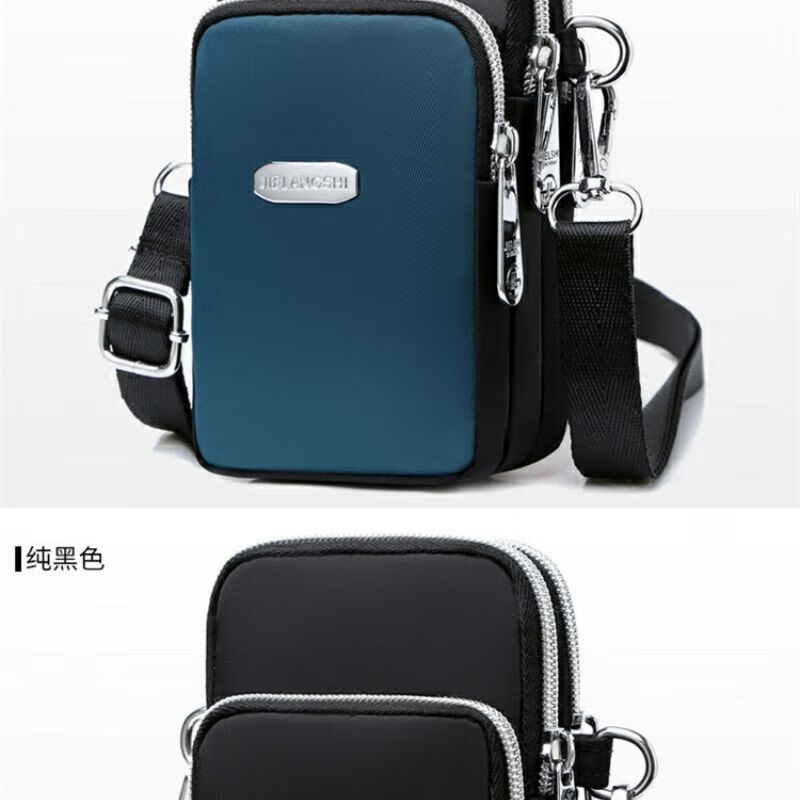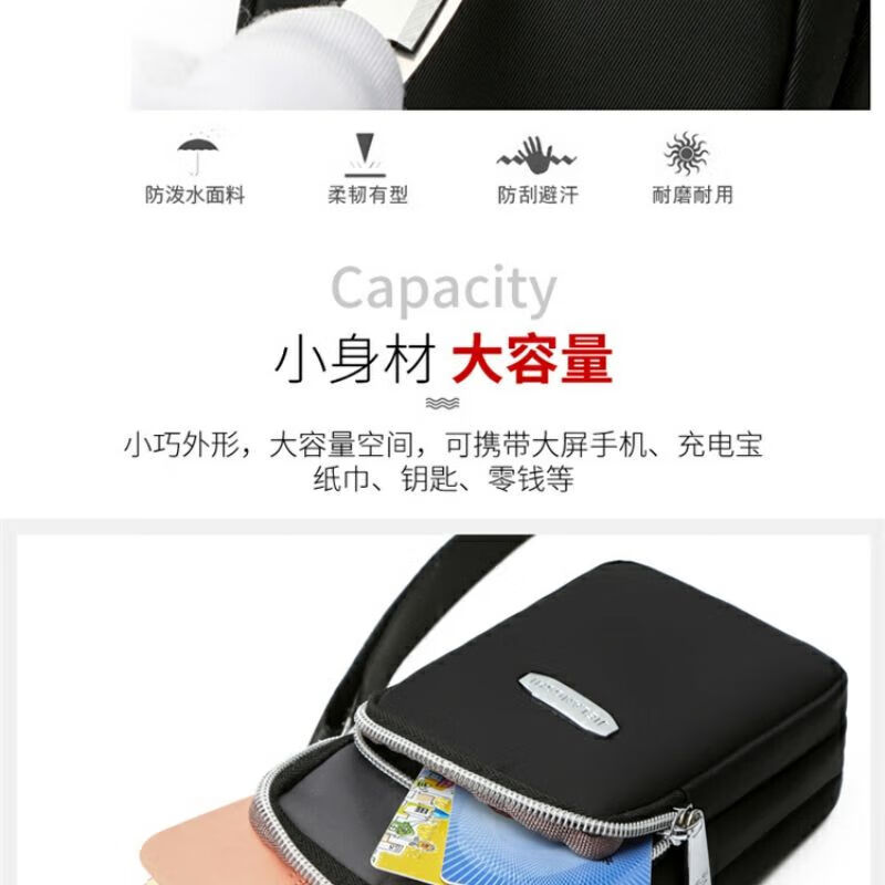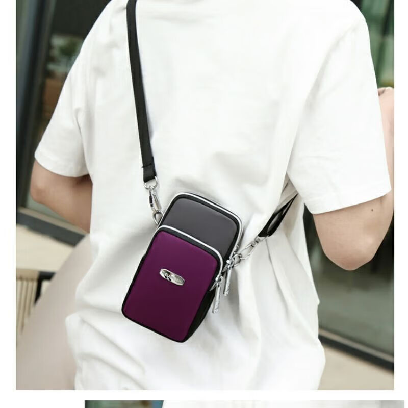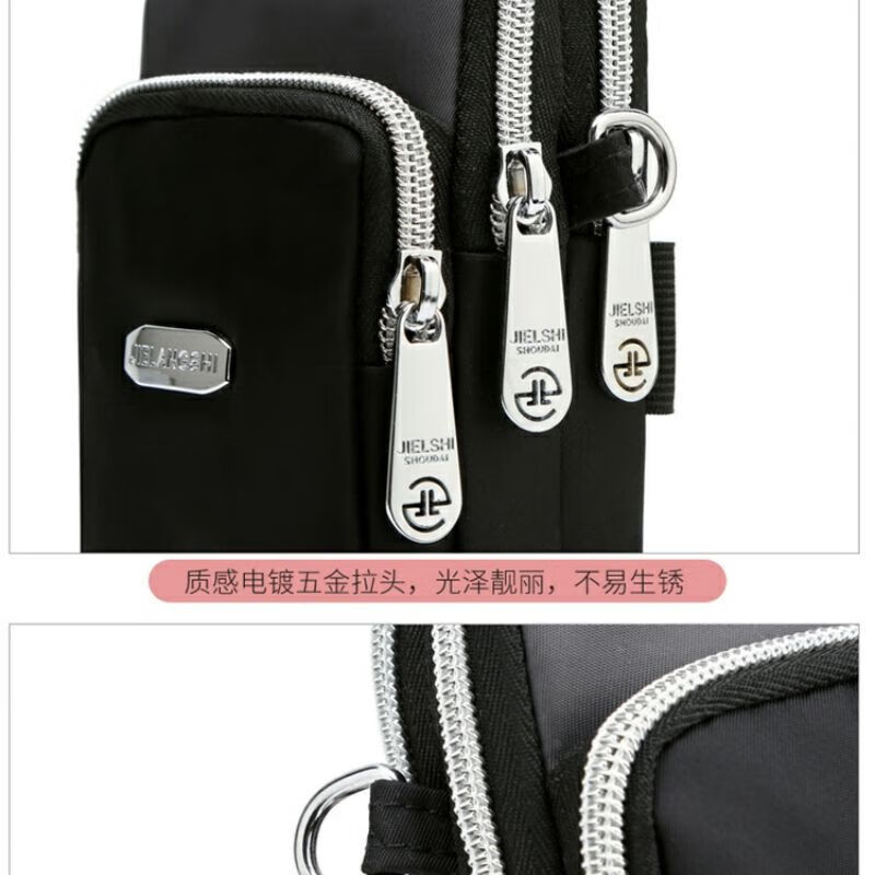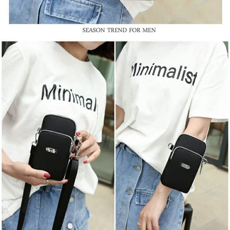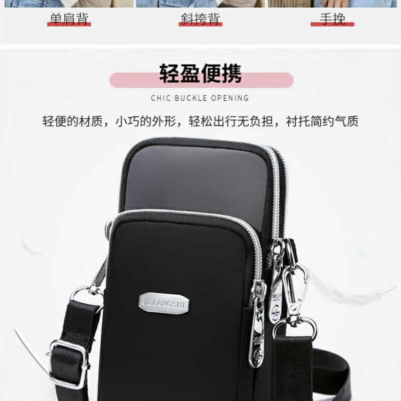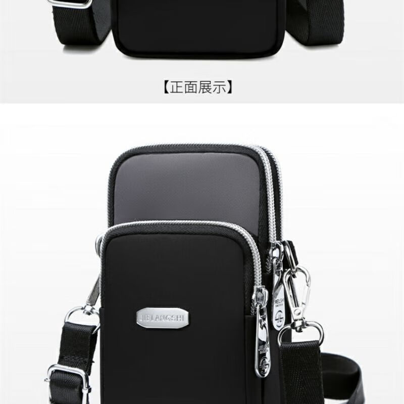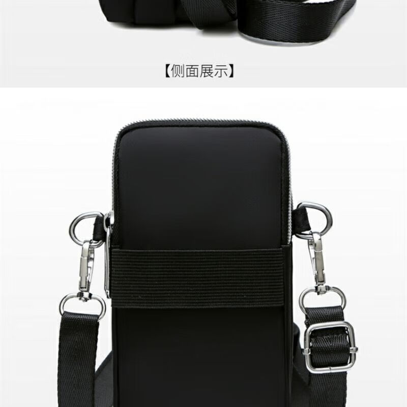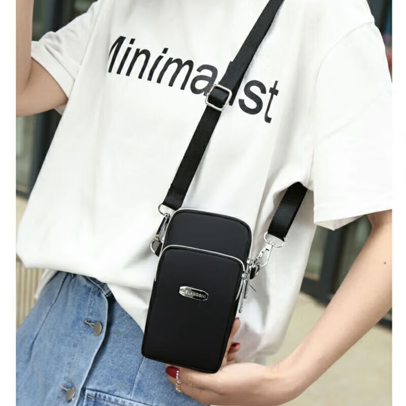 Complete waterproof mobile phone bag for women, Oxford cloth crossbody bag, summer arm bag, running mom model, simple mini shoulder bag, pure black