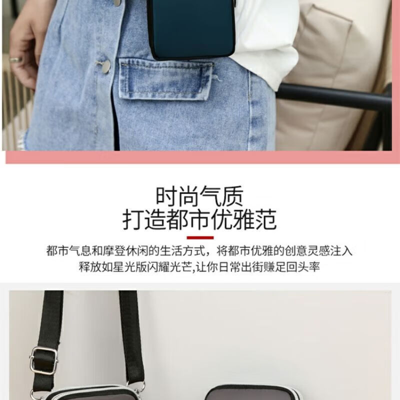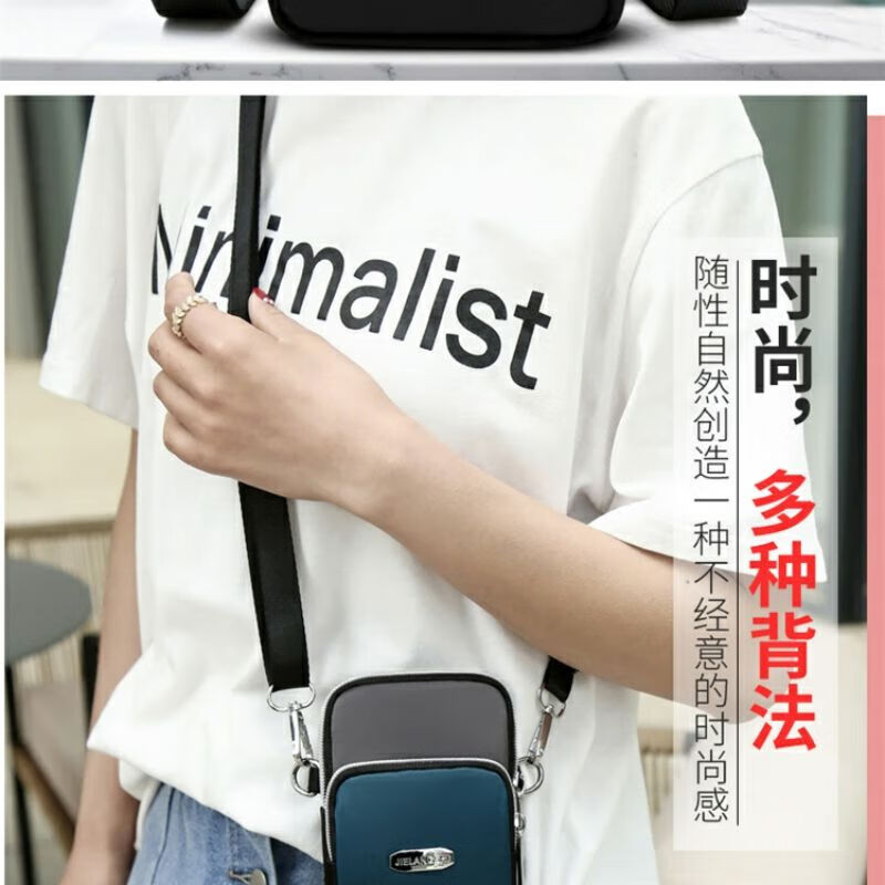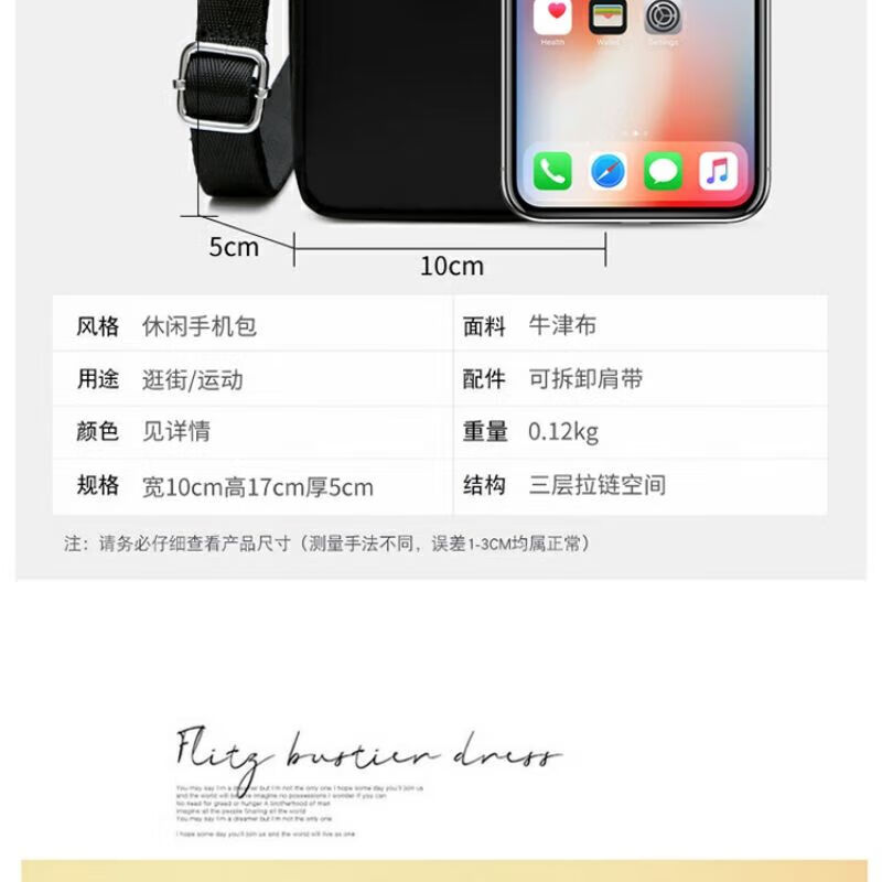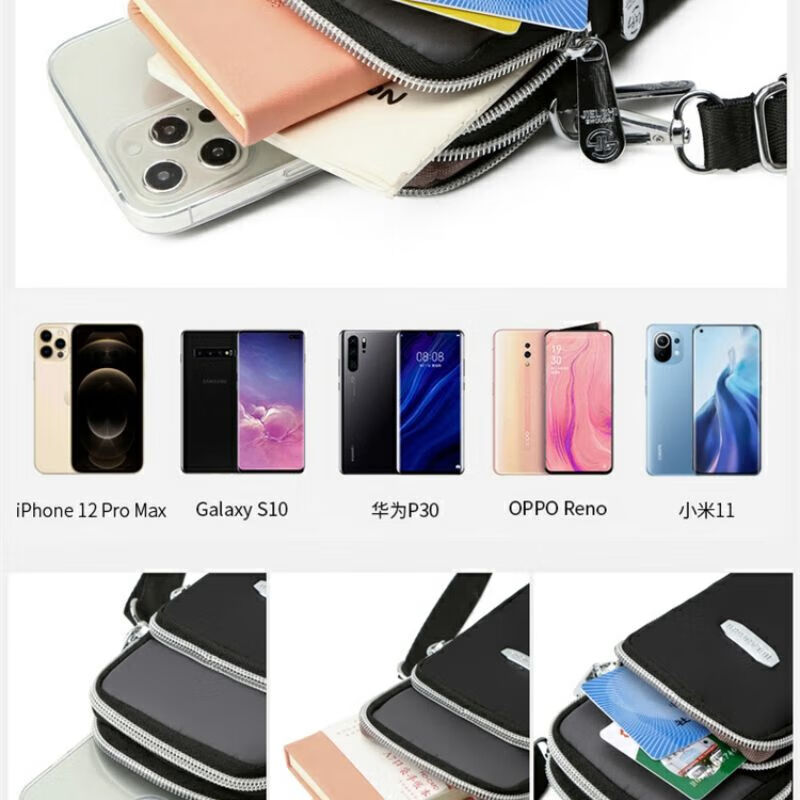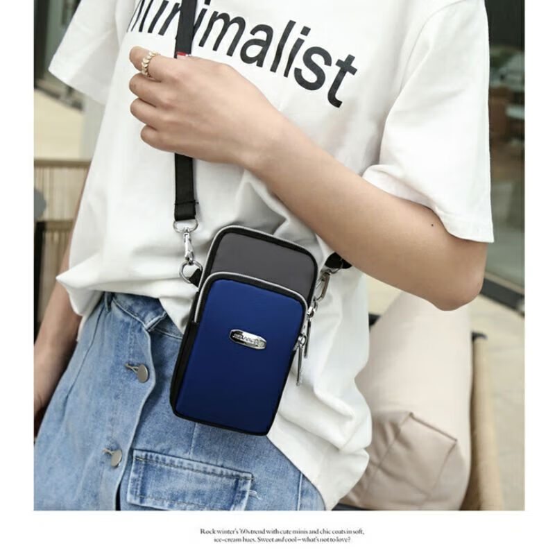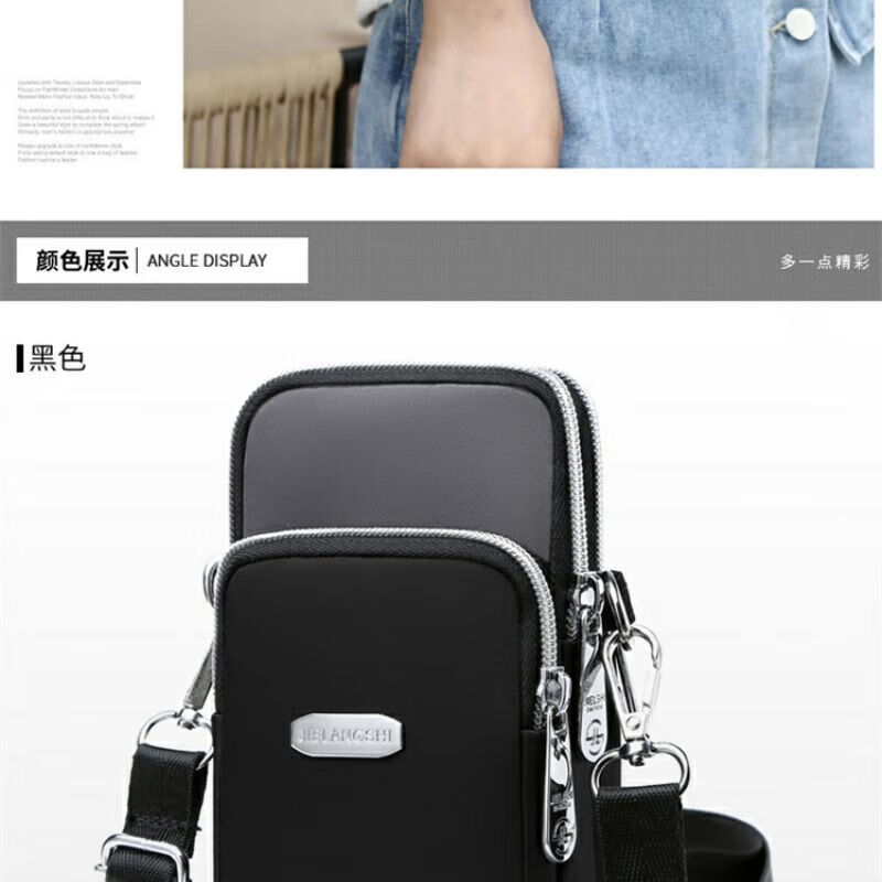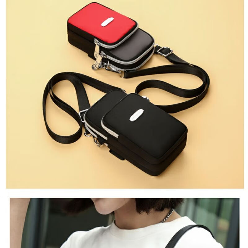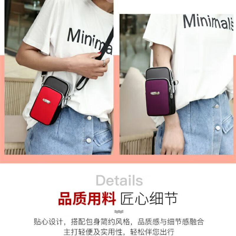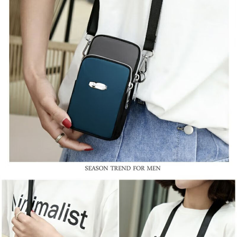 Complete waterproof mobile phone bag for women, Oxford cloth crossbody bag, summer arm bag, running mom model, simple mini shoulder bag, pure black