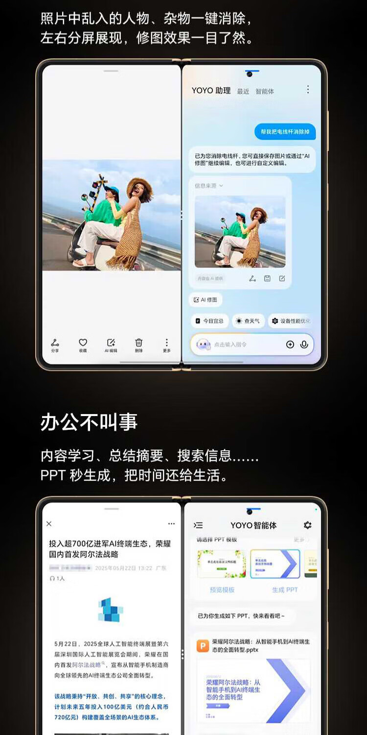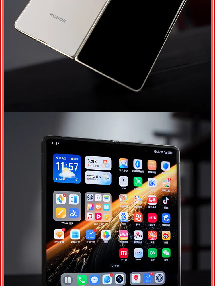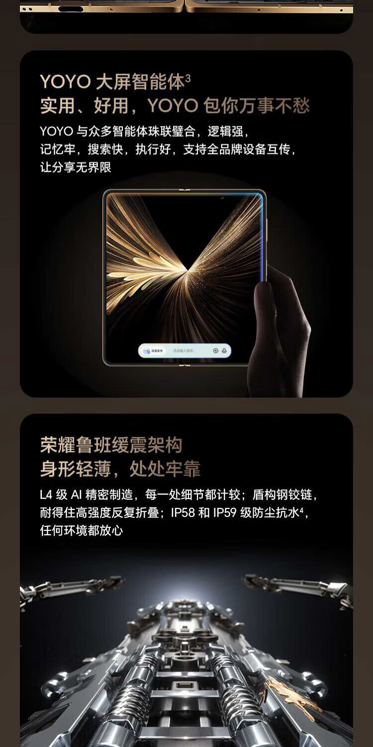 Honor (HONOR) Magic V5 new folding screen mobile phone Honor 24 periods of interest-free optional 8.8mm thin and light long battery life 3 Snapdragon 8 Extreme Edition 5G mobile phone AI new product launched in 2025 Dawn Gold 16G+512G 24 periods of interest-free