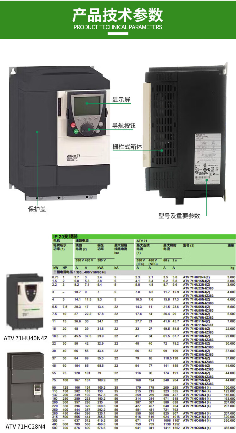 Feide Electric Inverter ATV71HU15/HD18/HD22/HD37/HD45/HD55/HD75N4Z ATV71H075N4Z