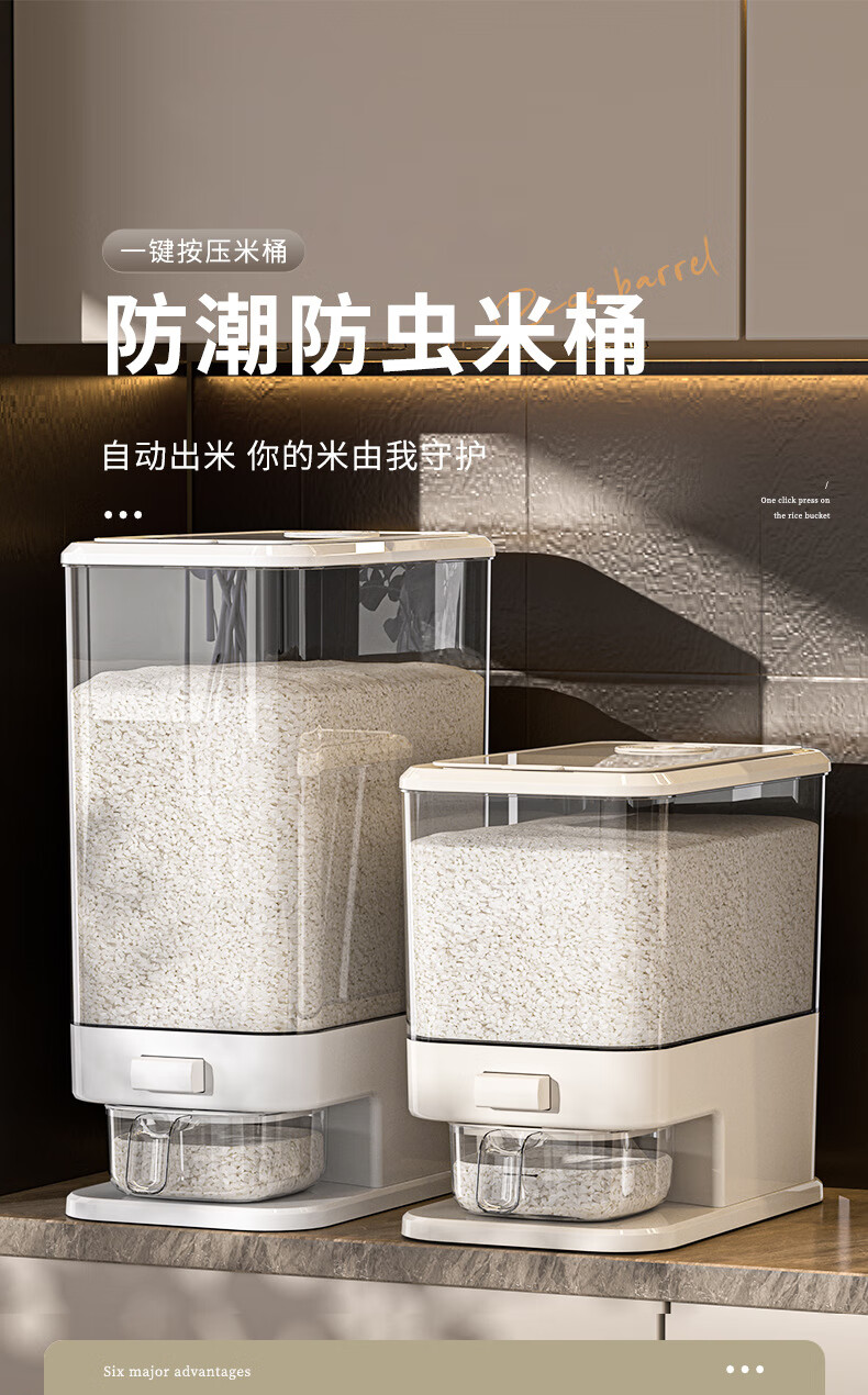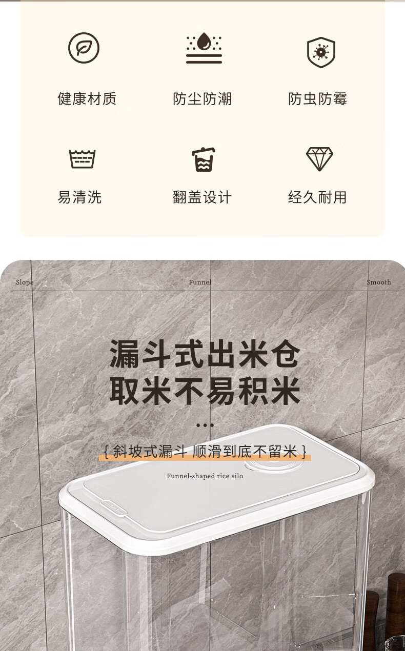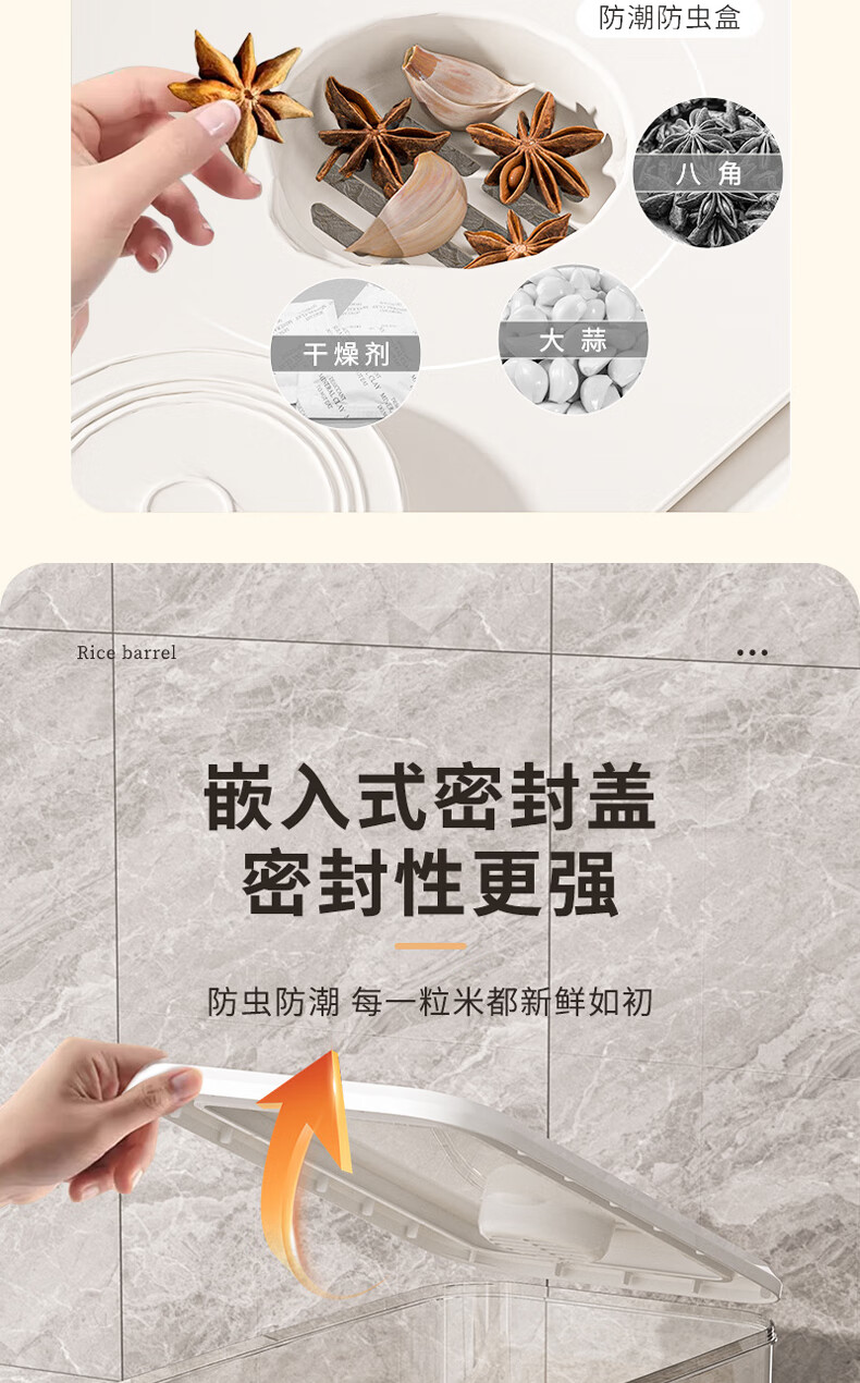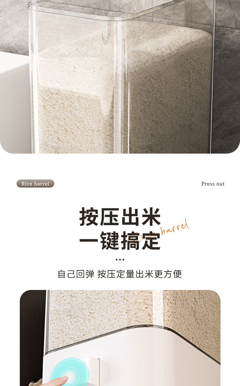 Bai Qixin rice bucket household insect-proof and moisture-proof rice bucket sealed storage container rice box flour bucket rice noodle large capacity push type white push rice bucket small size-5kg