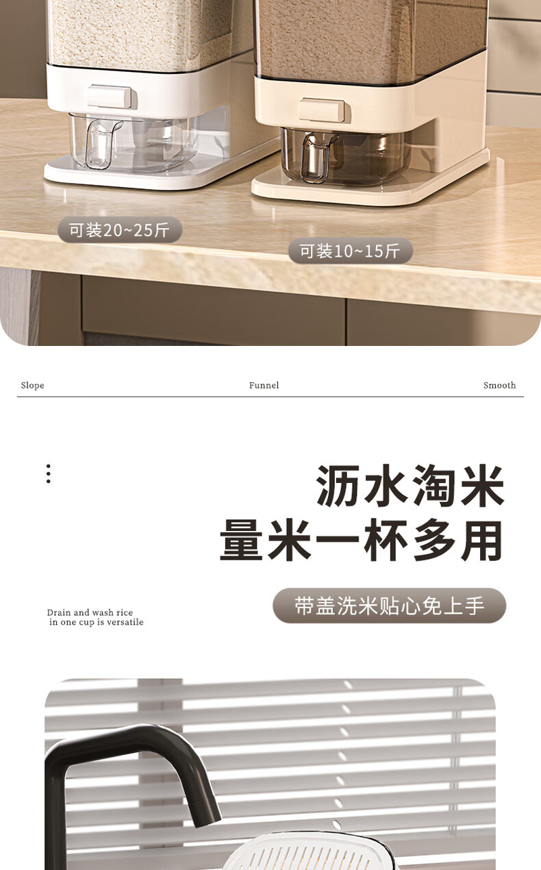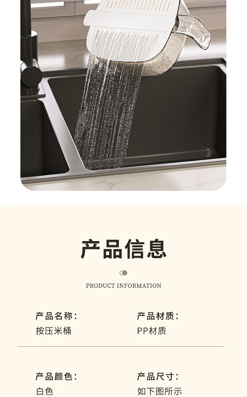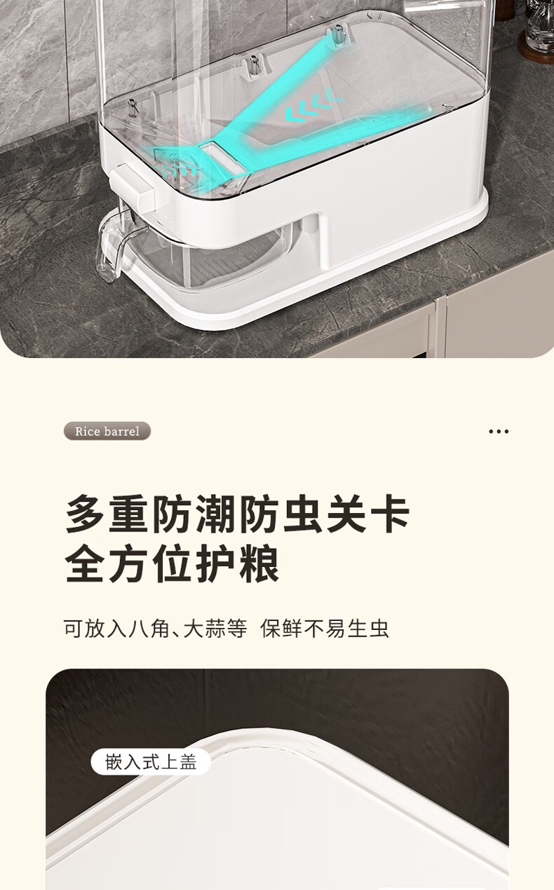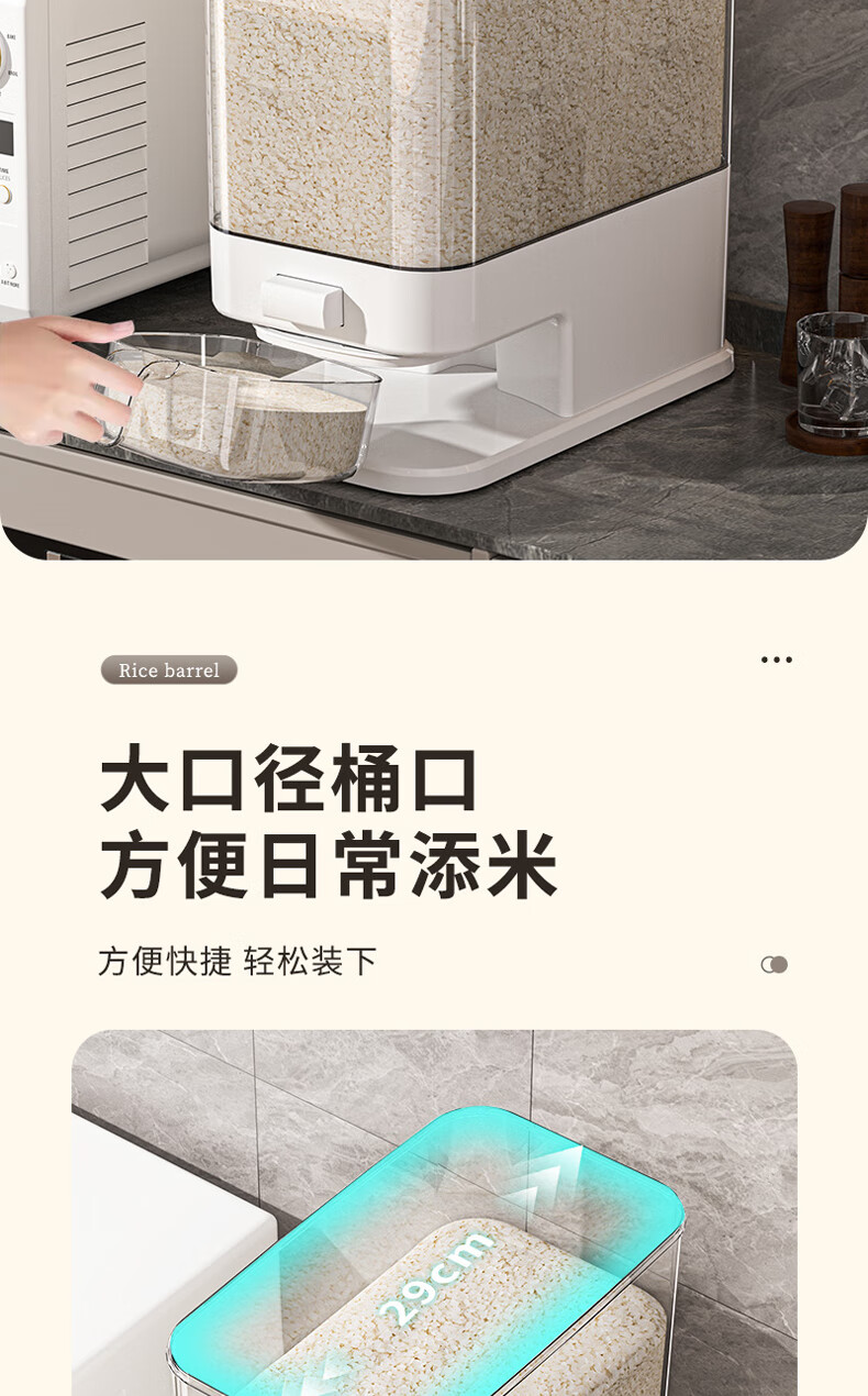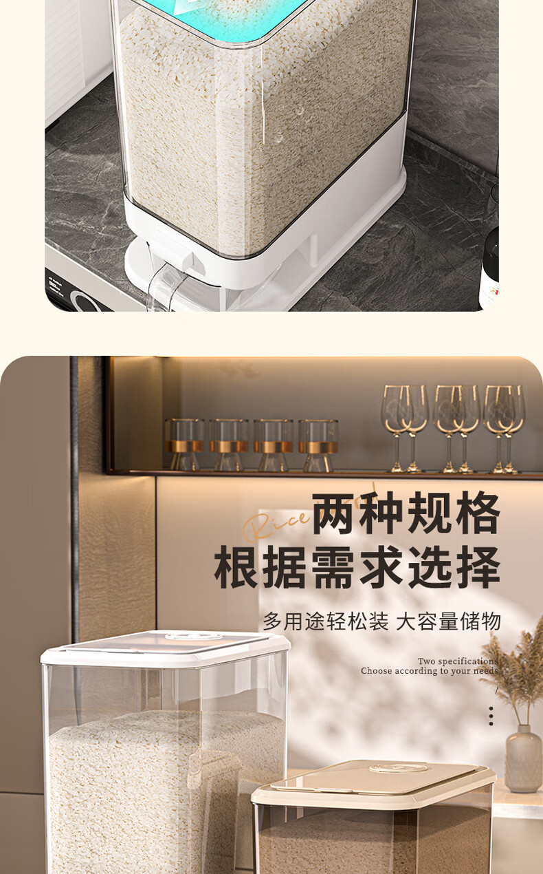 Bai Qixin rice bucket household insect-proof and moisture-proof rice bucket sealed storage container rice box flour bucket rice noodle large capacity push type white push rice bucket small size-5kg