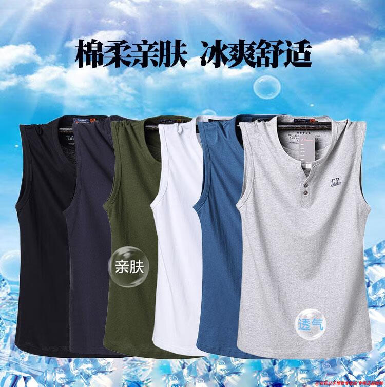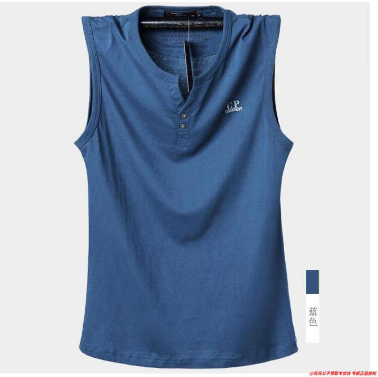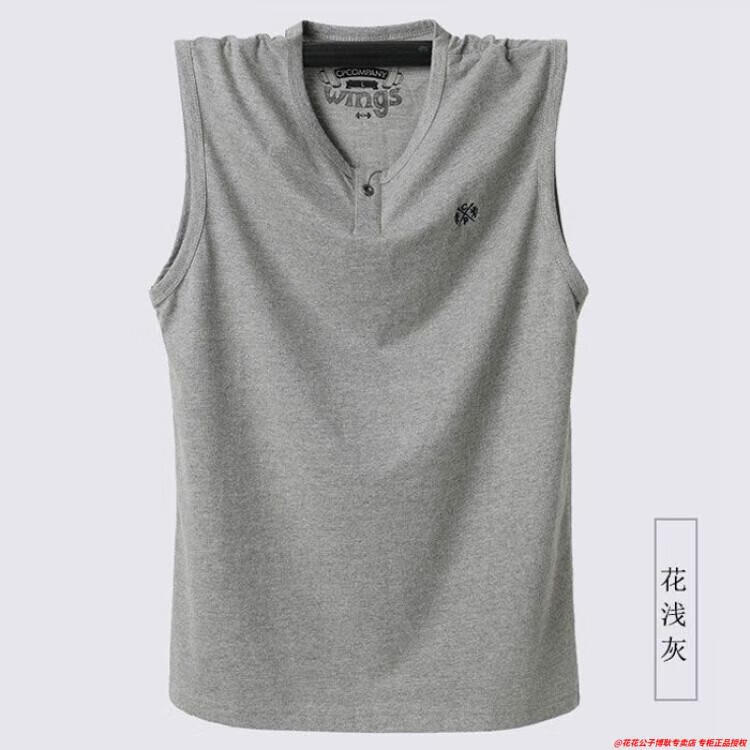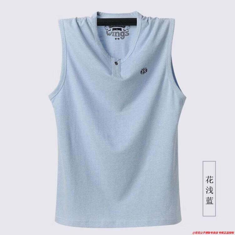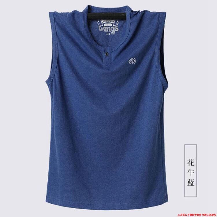 Playboy Henry Collar Pure Cotton Thin Summer V-Neck Vest Men's Broad Shoulders Plus Fat Extra Large Loose Shoulder Sweatshirt Fat Man Sleeveless T-Shirt Navy V 4XL Recommended 205-225Jin Jin is equal to 0.5 kg