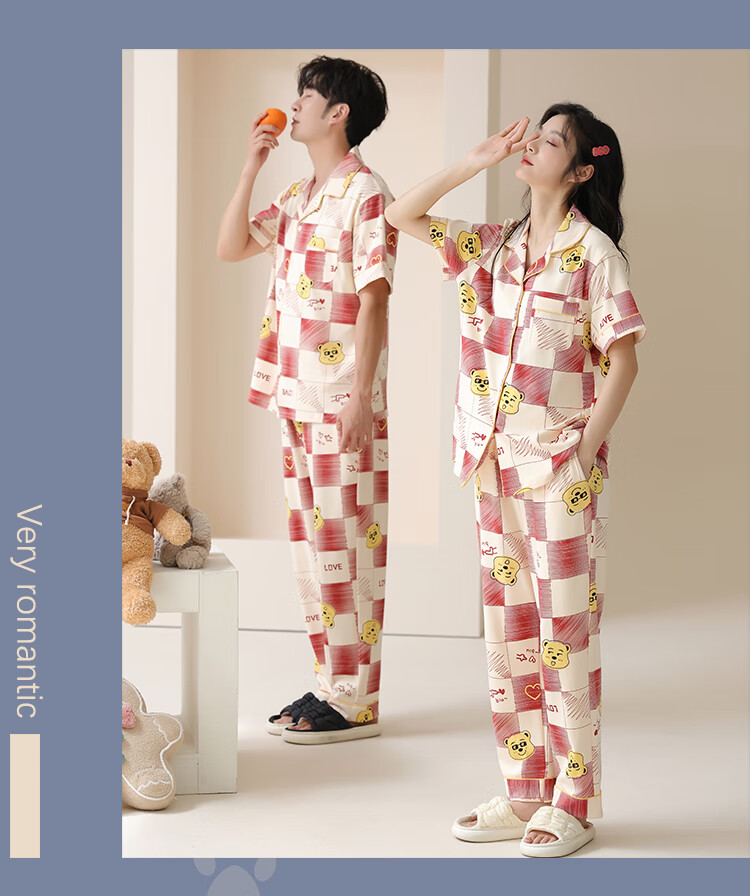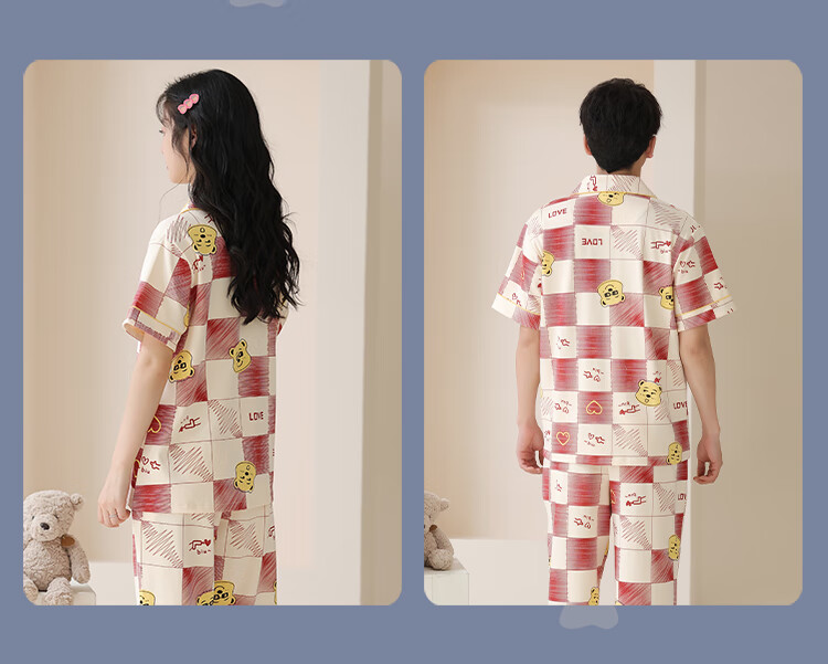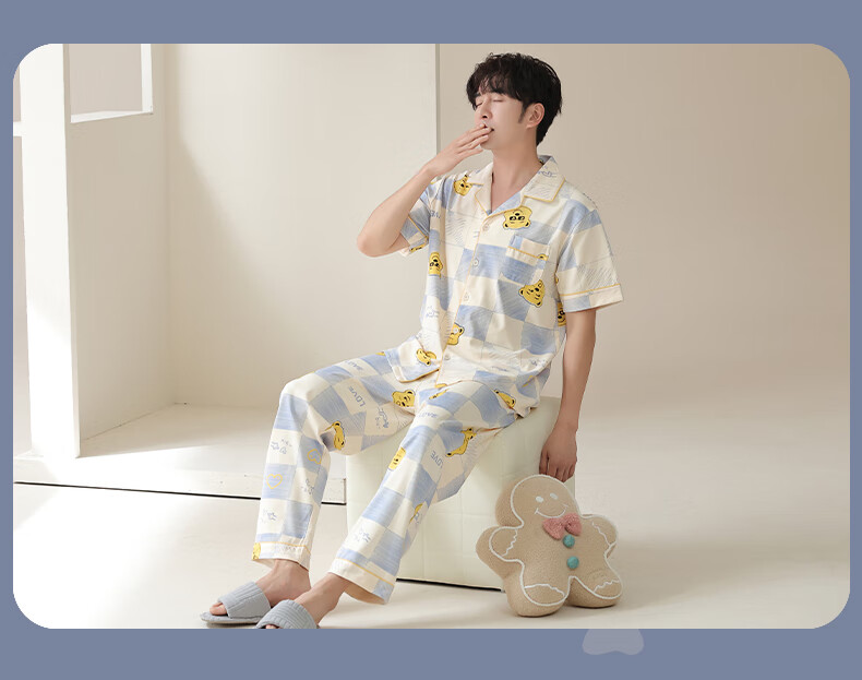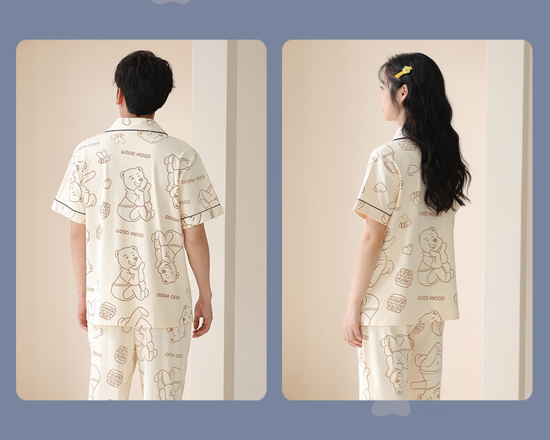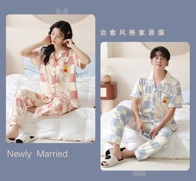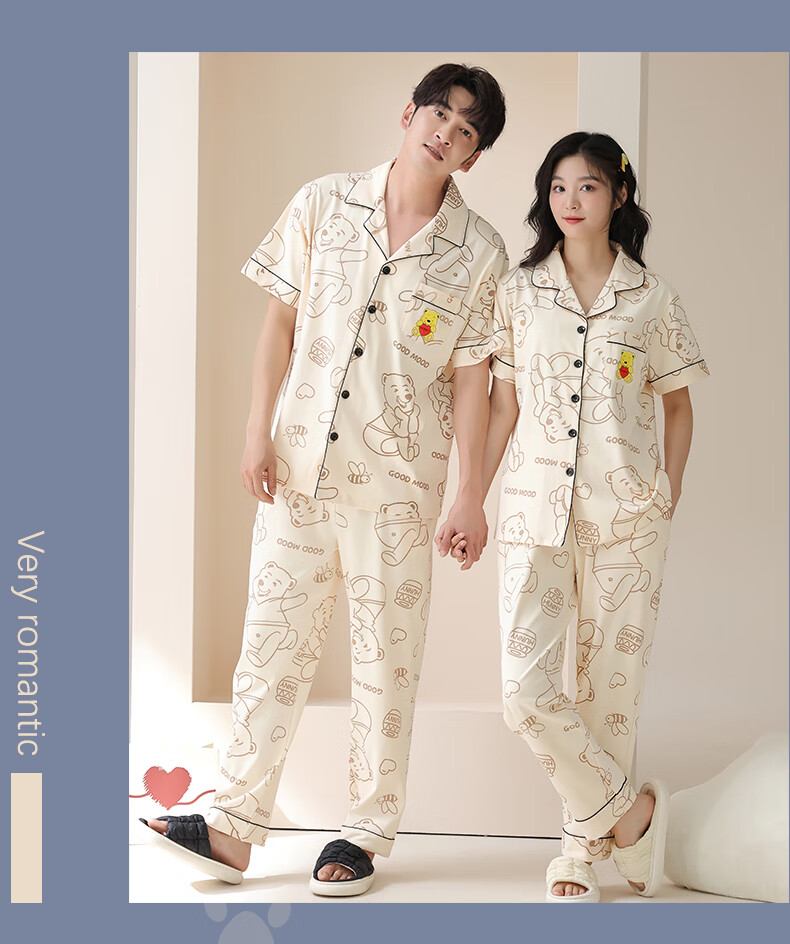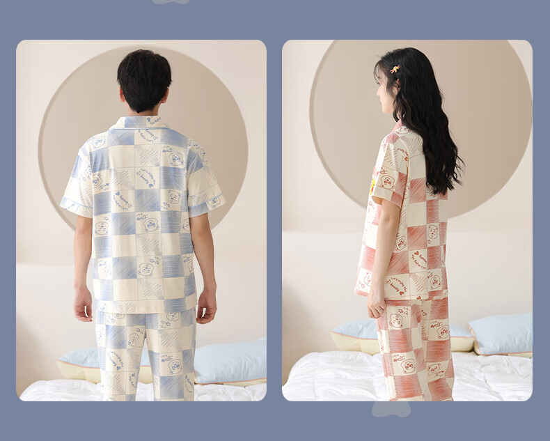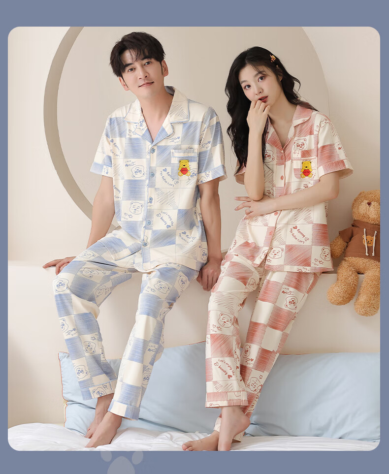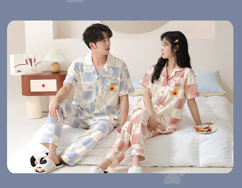 LangSha couple pajamas for one man and one woman, summer pure cotton thin section 7A antibacterial and anti-mite short-sleeved trousers, cardigan, casual home wear 6229 XL female + 3XL male