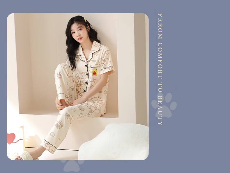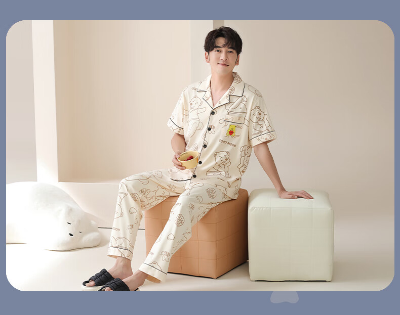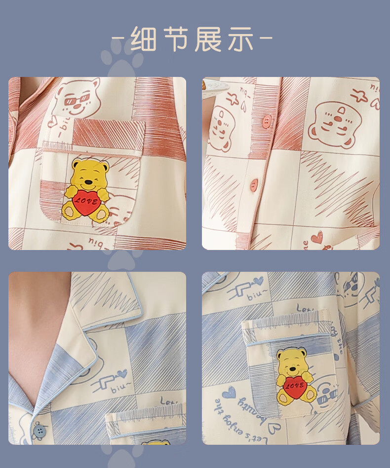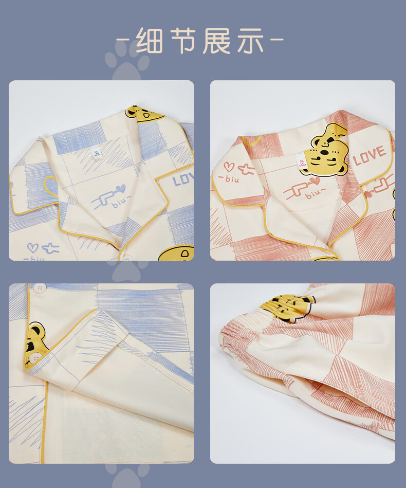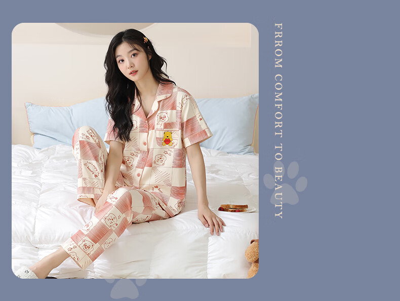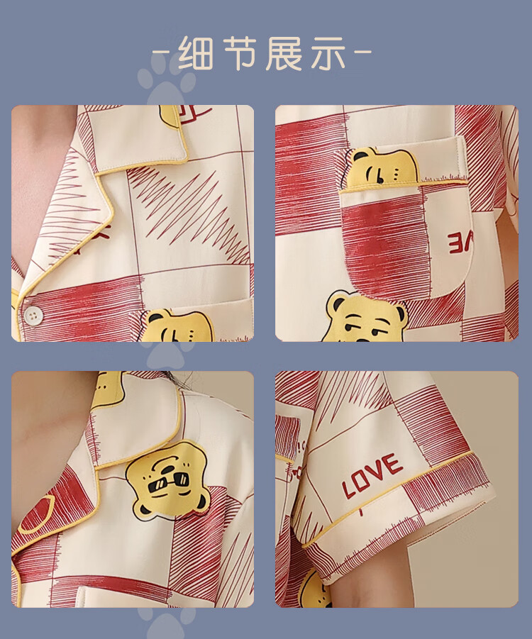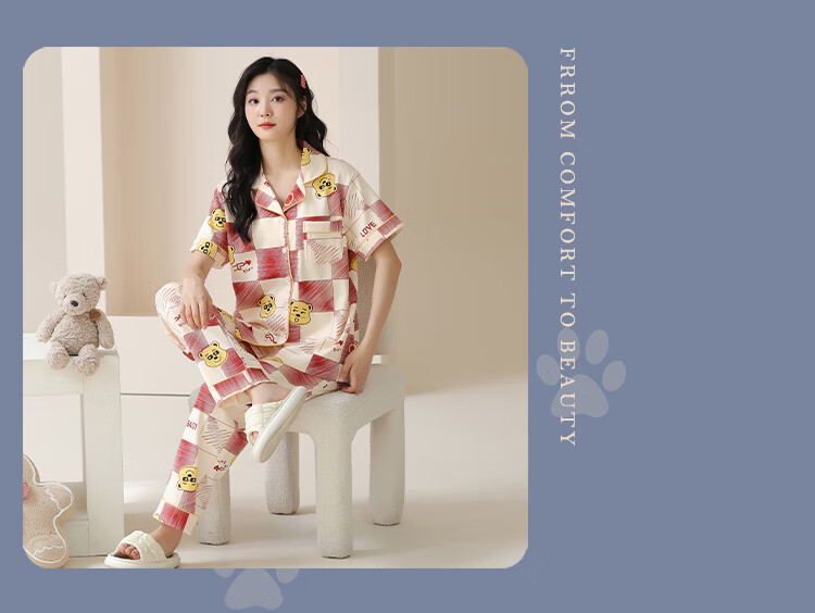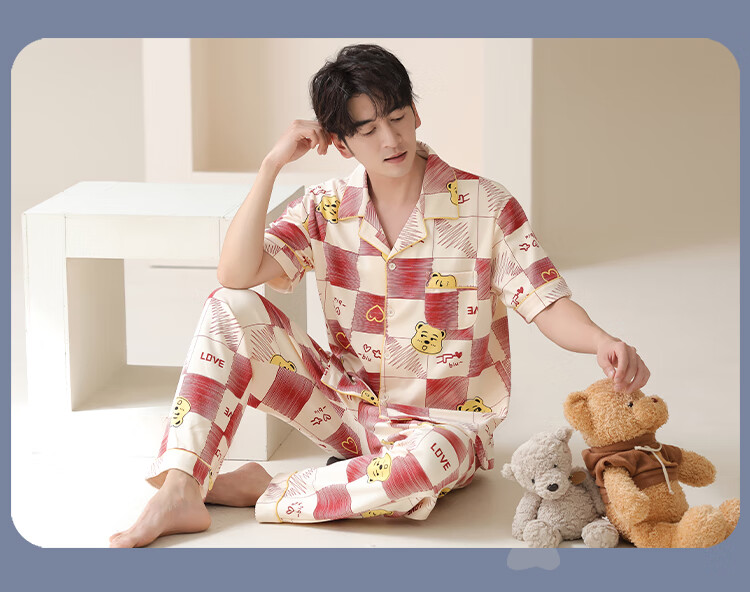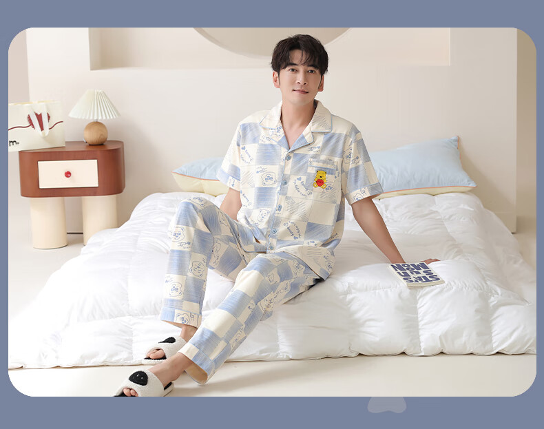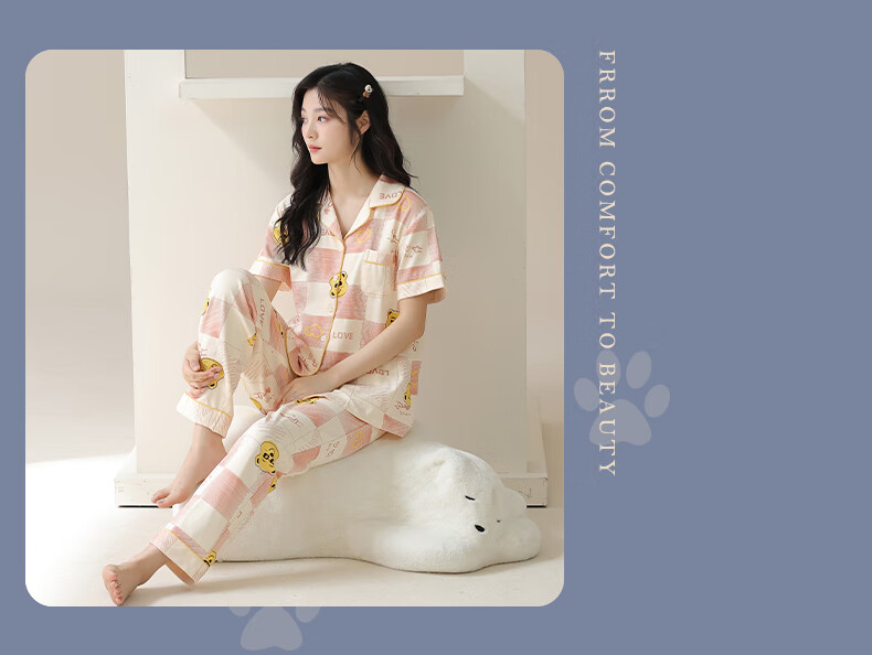 LangSha couple pajamas for one man and one woman, summer pure cotton thin section 7A antibacterial and anti-mite short-sleeved trousers, cardigan, casual home wear 6229 XL female + 3XL male