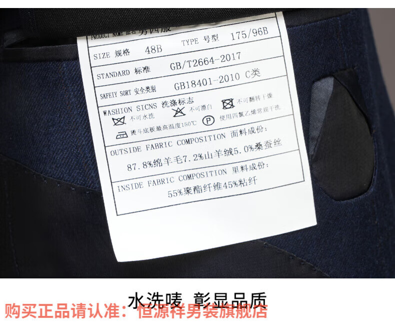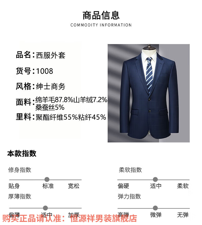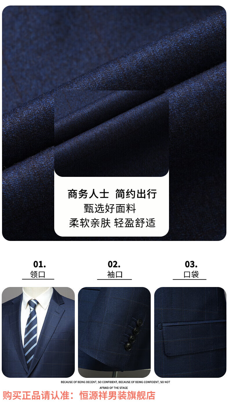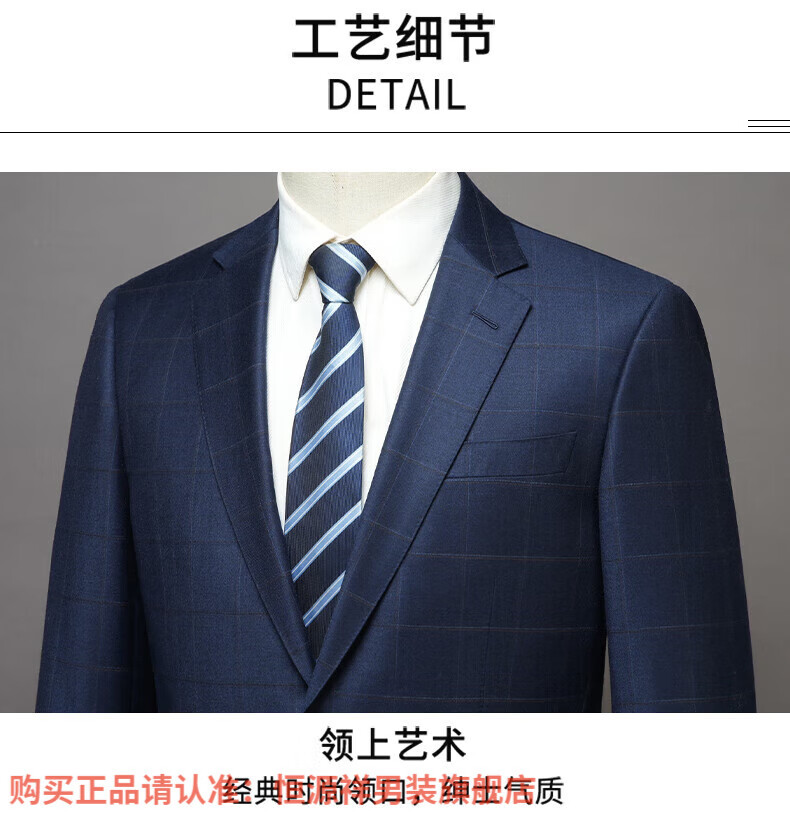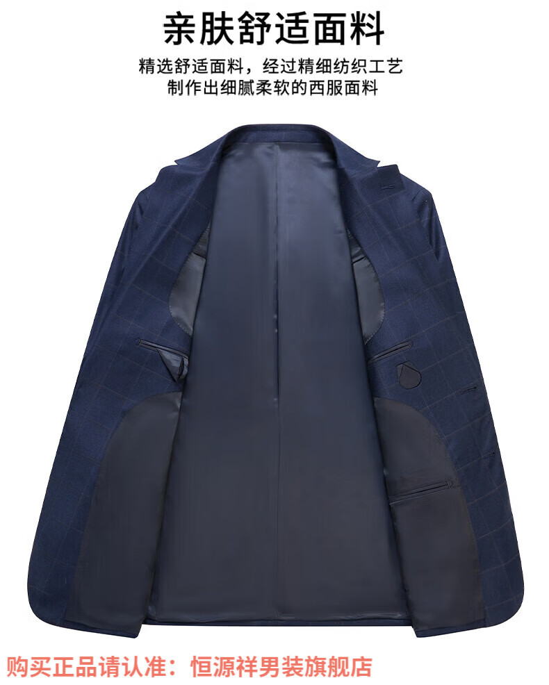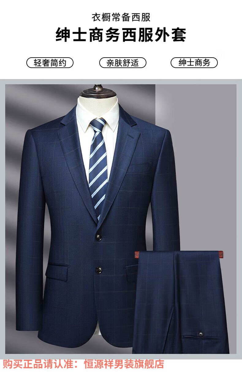 Hengyuanxiang high-end worsted wool cashmere suit men's two-piece suit business formal mulberry silk suit jacket spring and autumn men's wear blue without slit M 170/46B