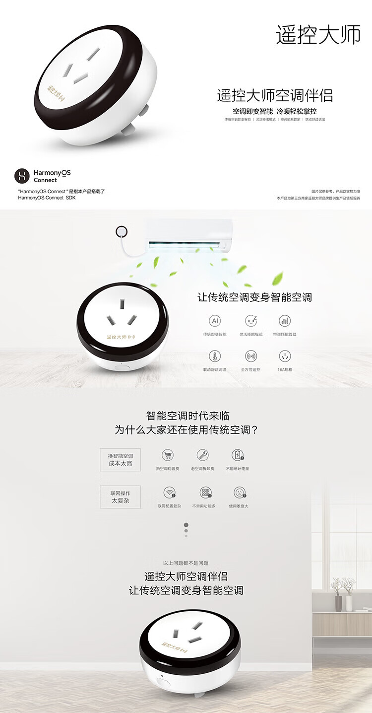 Huawei Hongmeng Intelligent Select Remote Control Master Plug Smart Socket Remote Control Air Conditioning Companion Plug Smart 16A Multi-Function Gateway WiFi Remote Control Remote Switch YKK-KT16A (Supports Hongmeng Intelligent Connect)