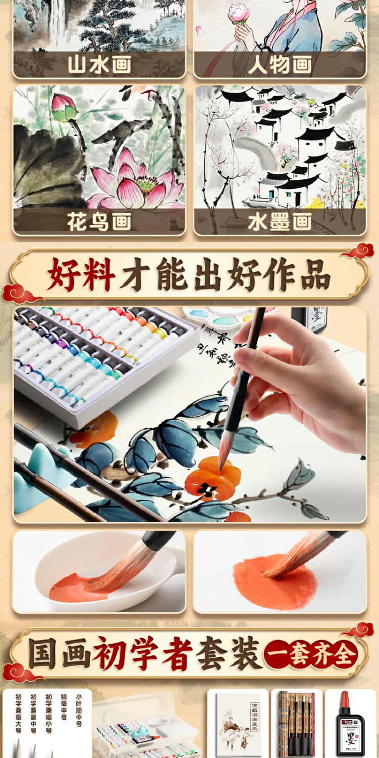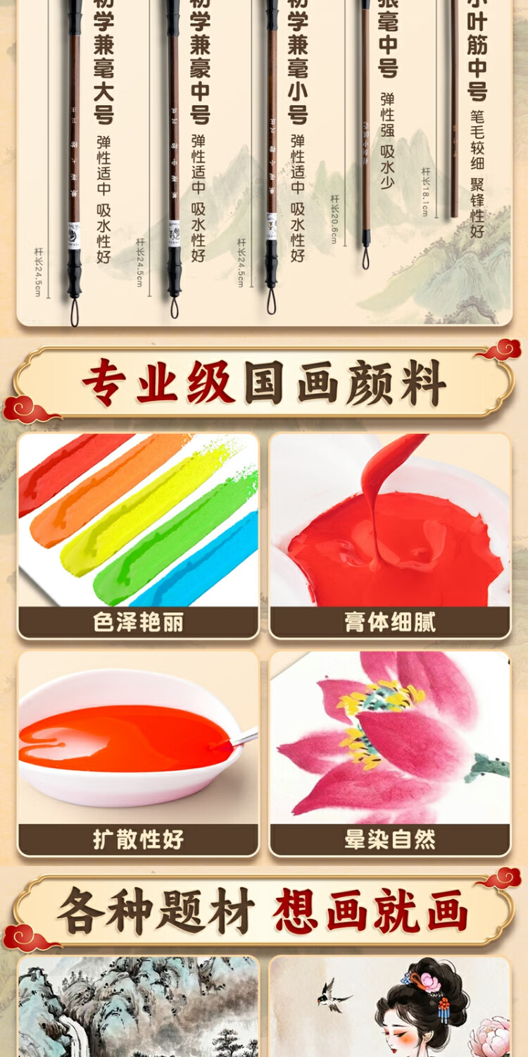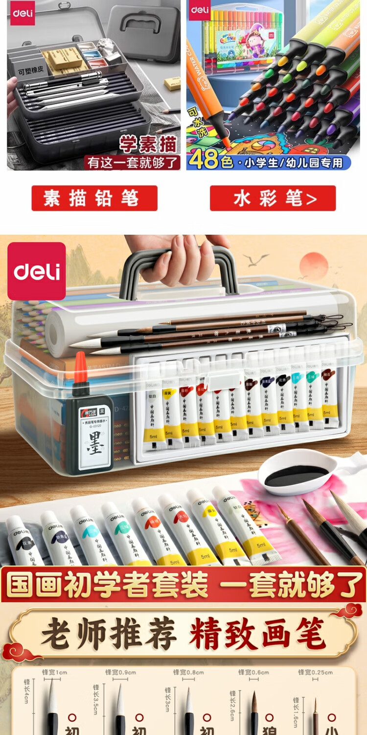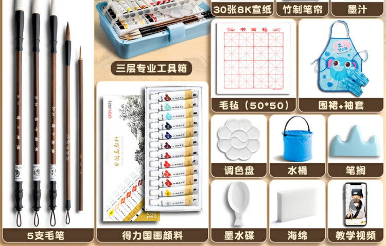 Deli Chinese Painting Pigments Beginner Set Solid Chinese Painting Chinese Painting Supplies Tools Full Set 12 Colors Ink Painting Primary School Junior High School Students Art Special Entry Materials Children Beginner 40 Piece Set Entry Level 18 Colors