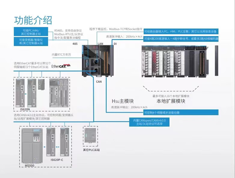 PLC Inovance H5U series controller 8-axis/16-axis/32-axis 1614MTD with IO expansion module GL10 8-axis 8-axis H5U-1614MTD-A8