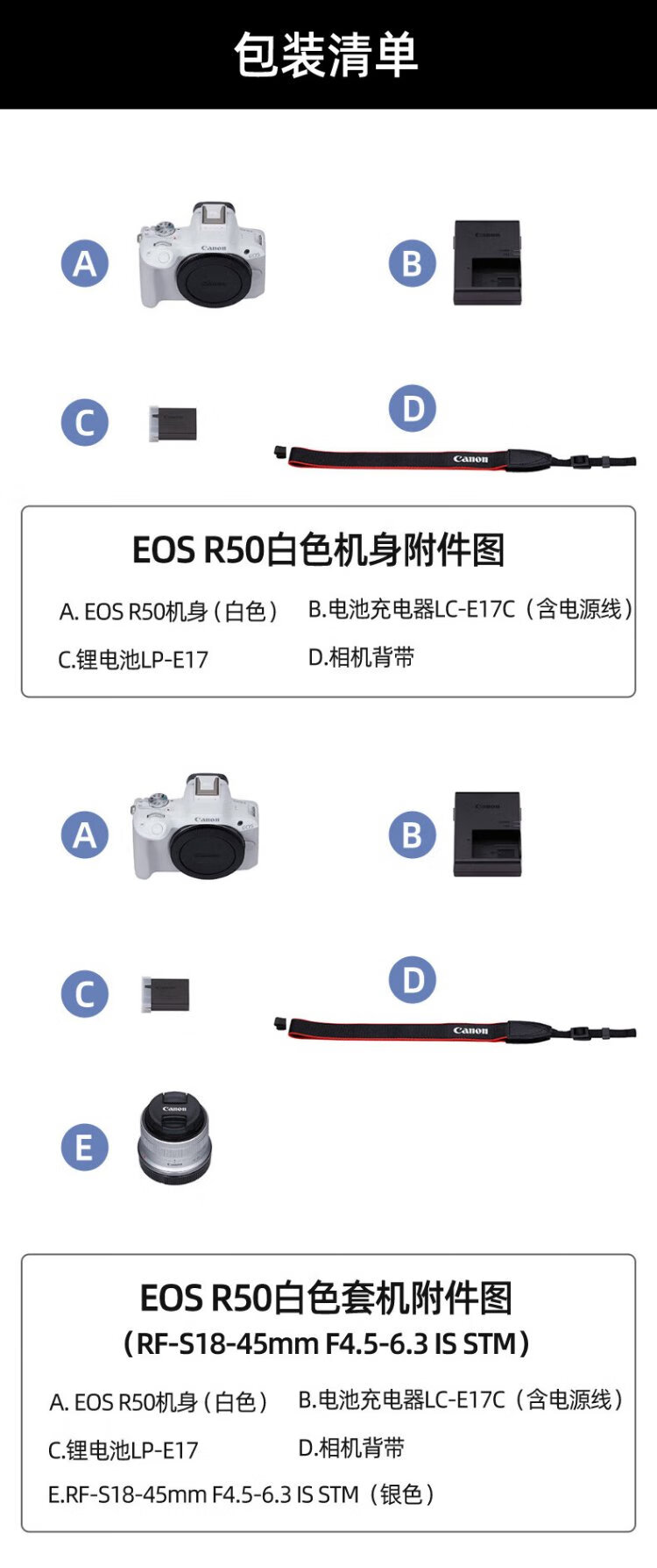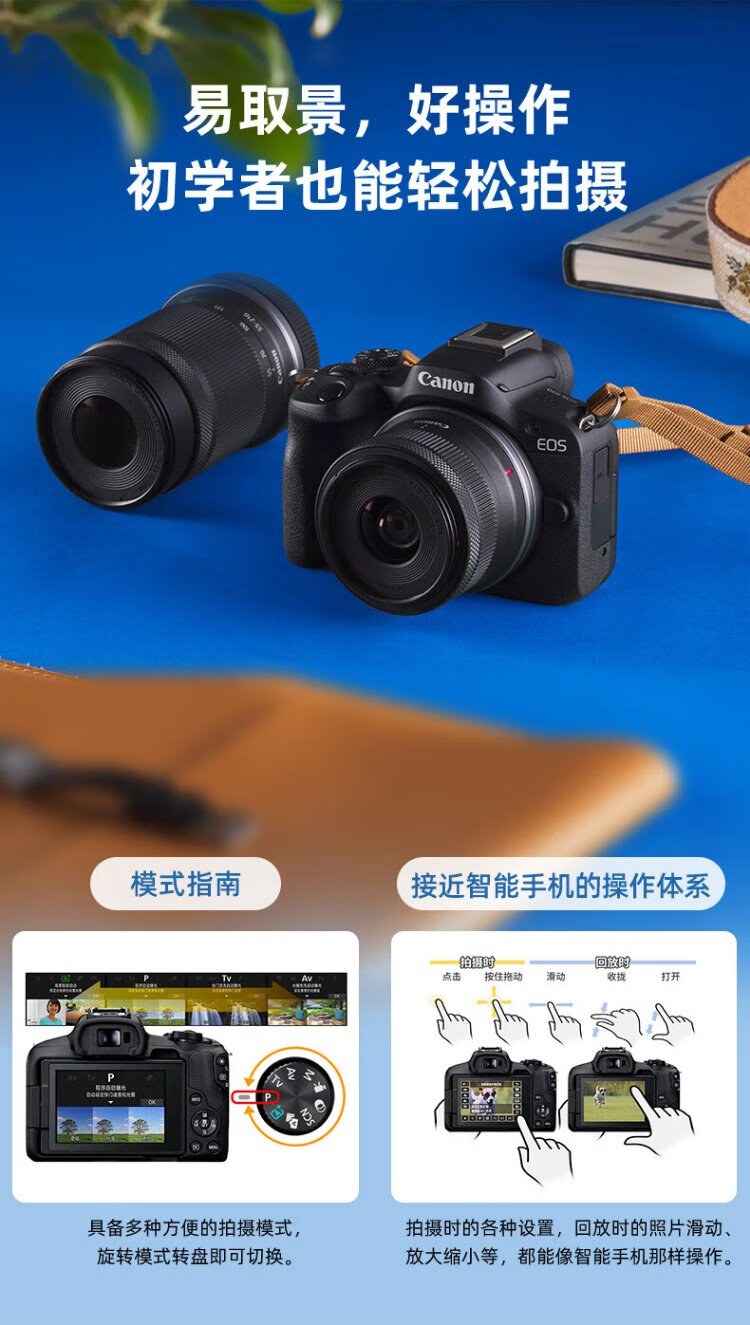Canon Canon flagship store EOS R50 body/kit mirrorless entry-level girl beginner camera vlog 4k short film R50 white kit RF-S18-45mm