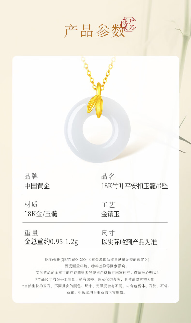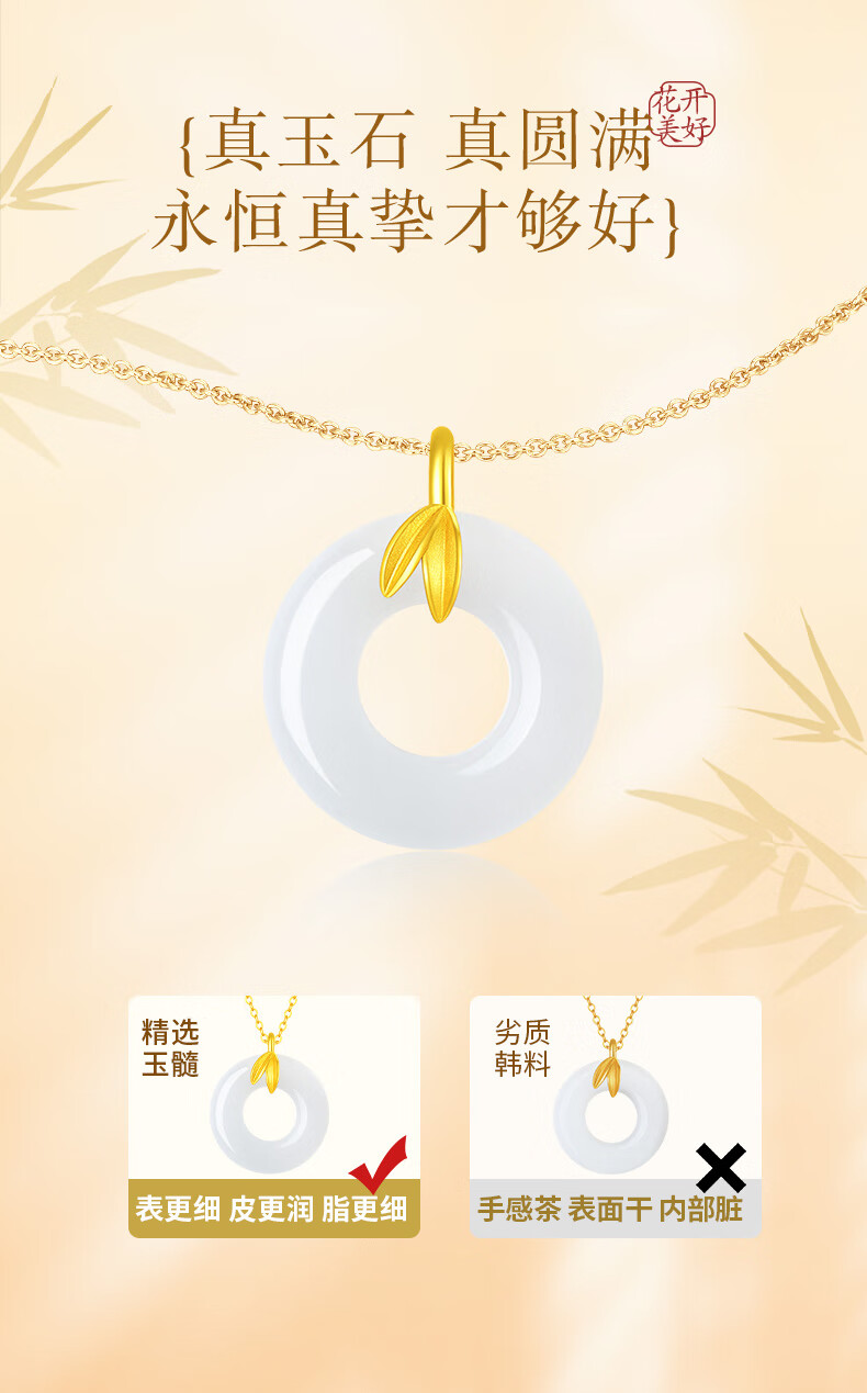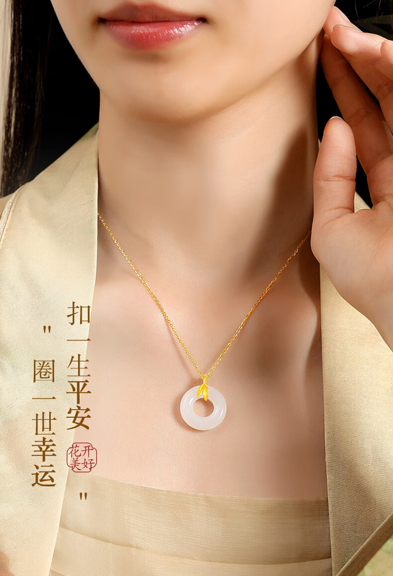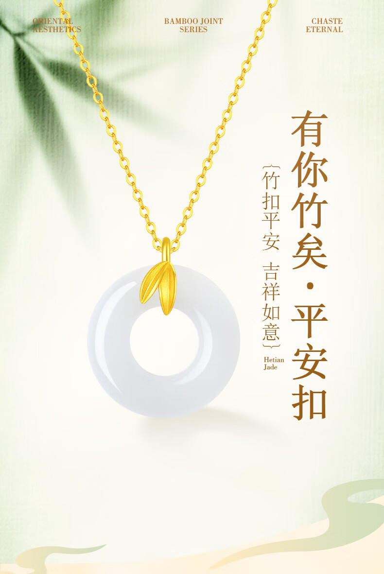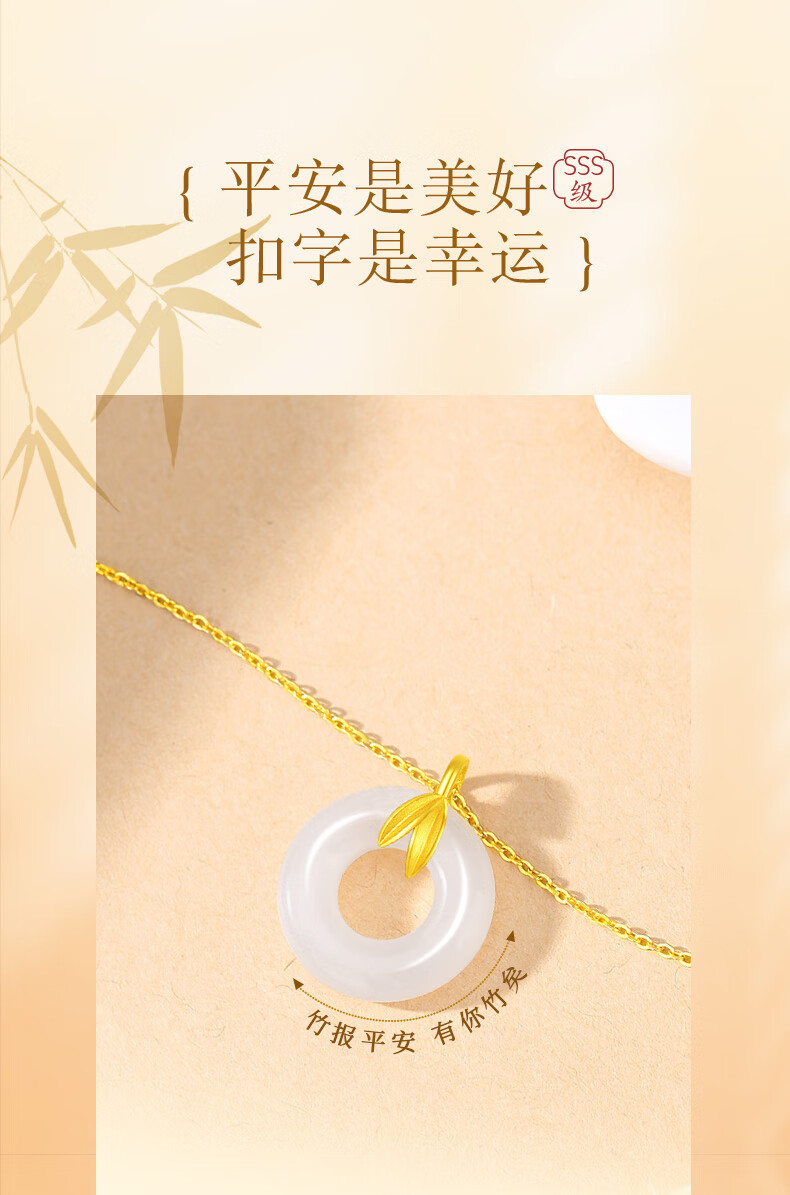 CHINA GOLD Youni Bamboo 18k Gold Necklace Bamboo Chalcedony Peace Buckle Pendant Birthday Gift for Girlfriend 18K Gold Bamboo Chalcedony Chain Souvenir