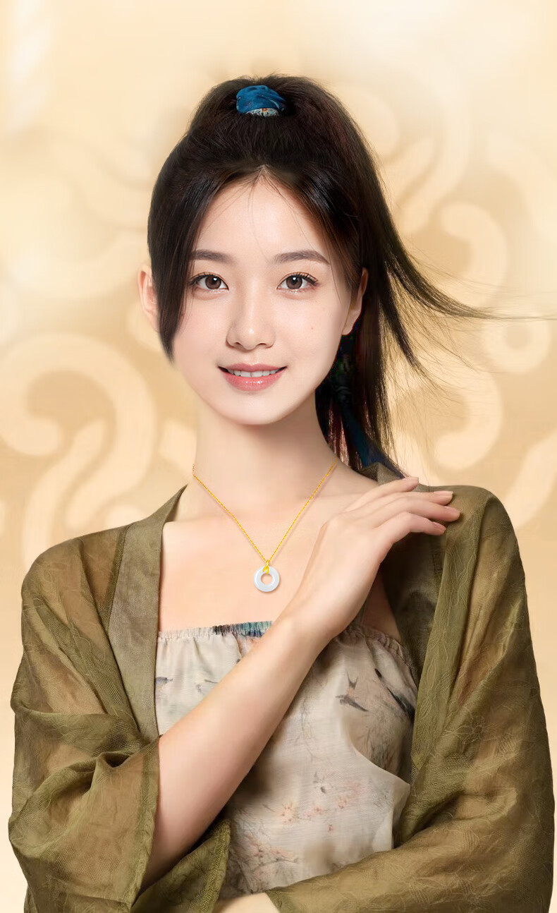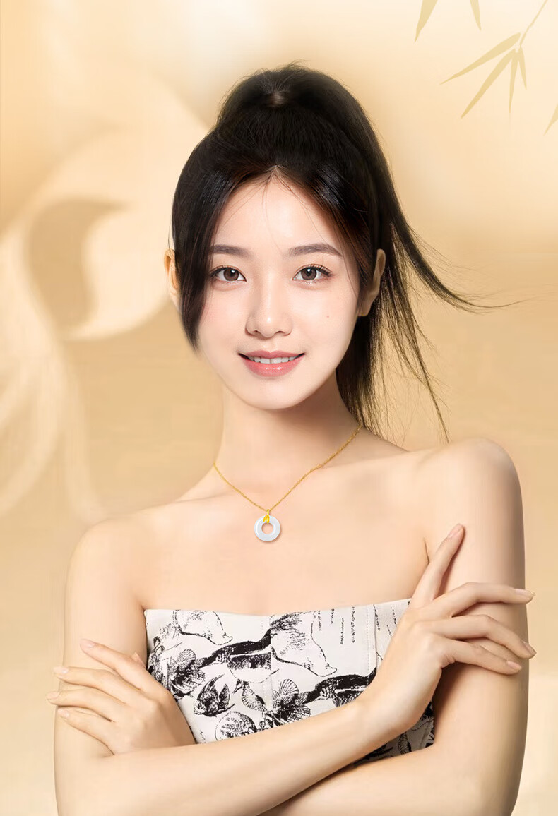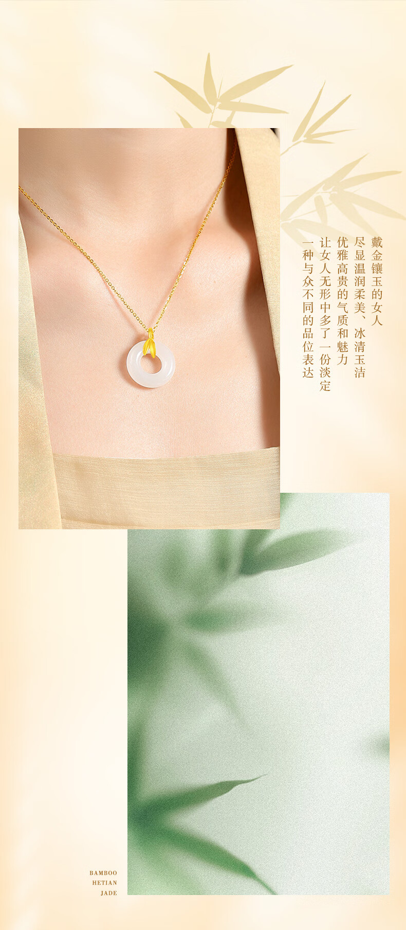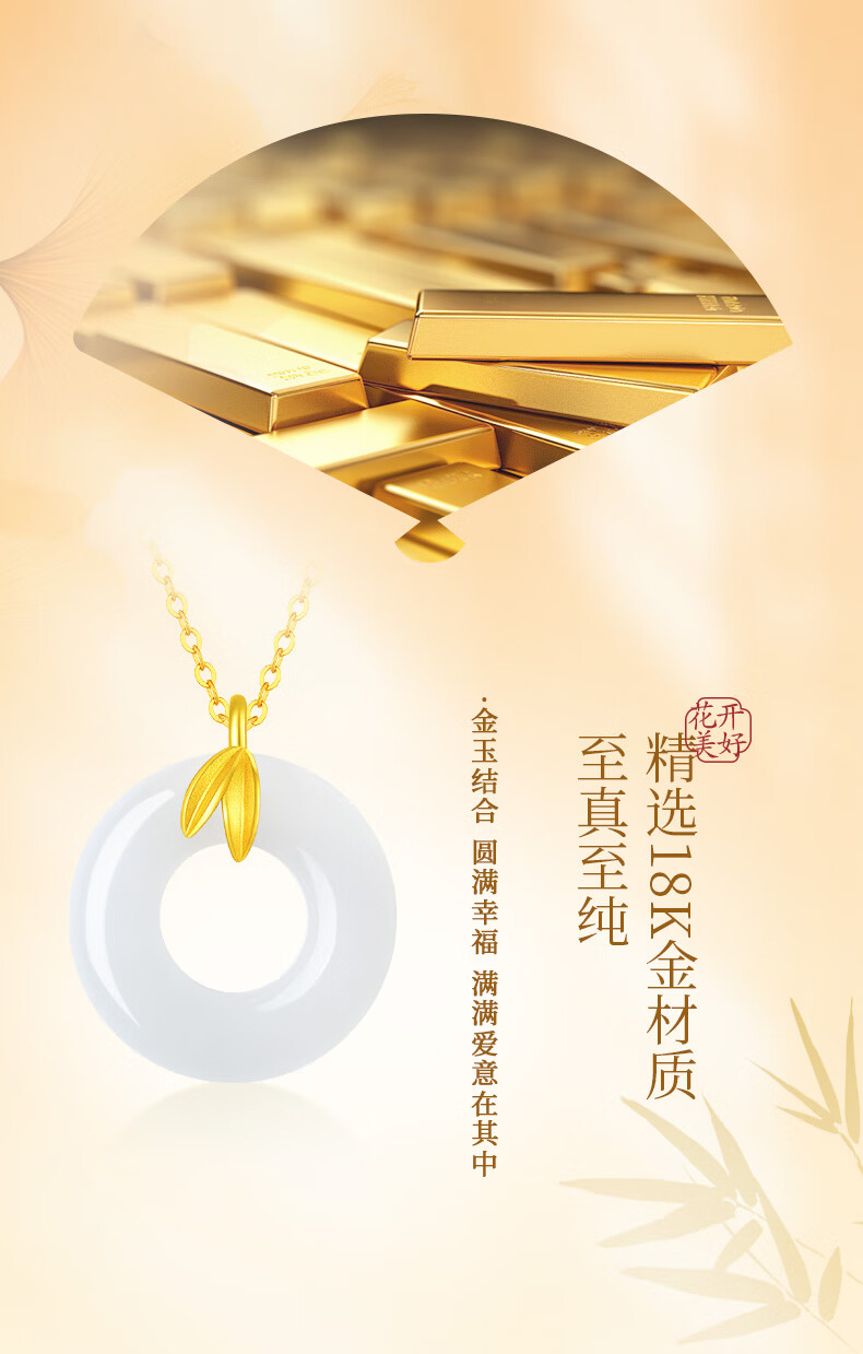 CHINA GOLD Youni Bamboo 18k Gold Necklace Bamboo Chalcedony Peace Buckle Pendant Birthday Gift for Girlfriend 18K Gold Bamboo Chalcedony Chain Souvenir