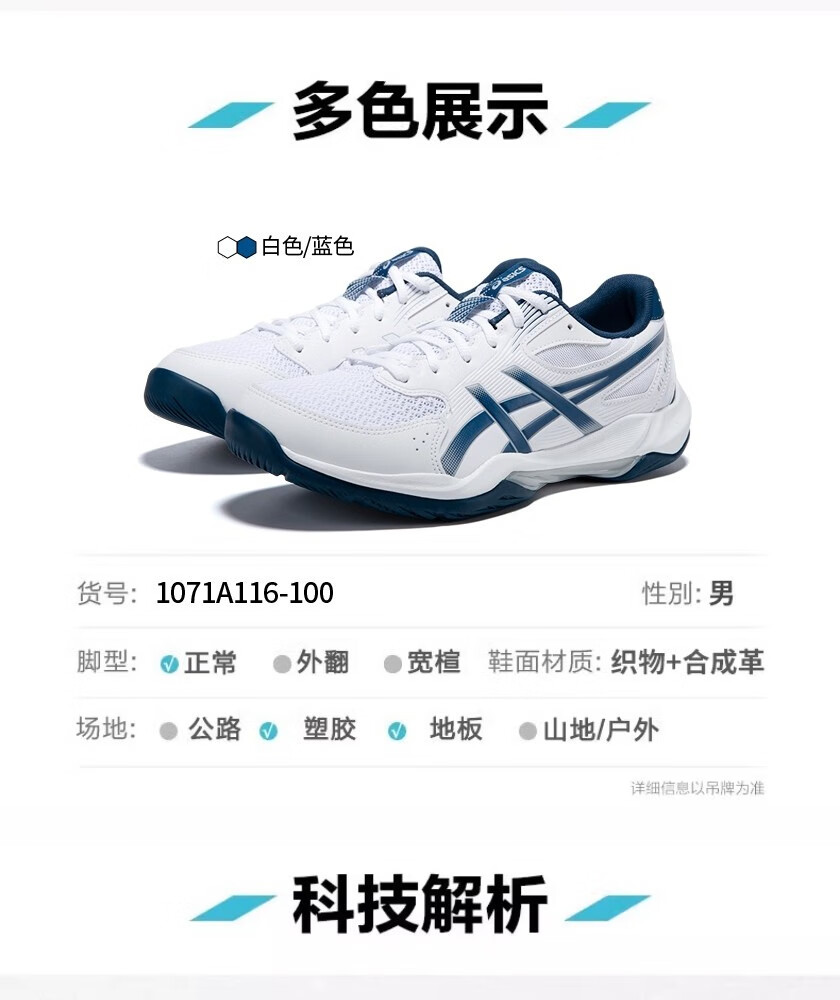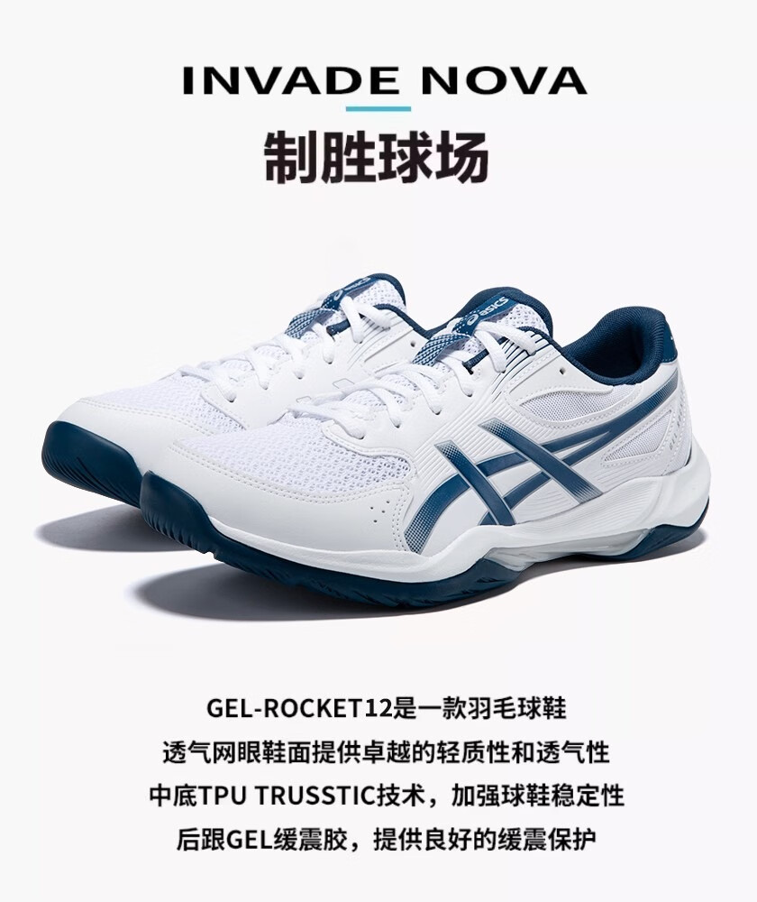 Asics men's badminton shoes autumn and winter lightweight breathable training sports shoes GEL-ROCKET 12 white/blue-100 41.5