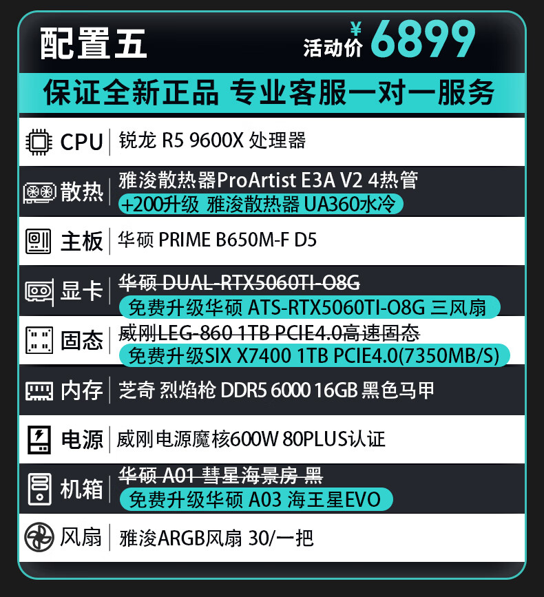 ASUS AMD Ryzen R5 9600X R7 9700X 5060/5070/5070TI graphics card rog family bucket host DIY gaming desktop assembly computer subsidy machine configuration five R5 9600X/RTX5060TI