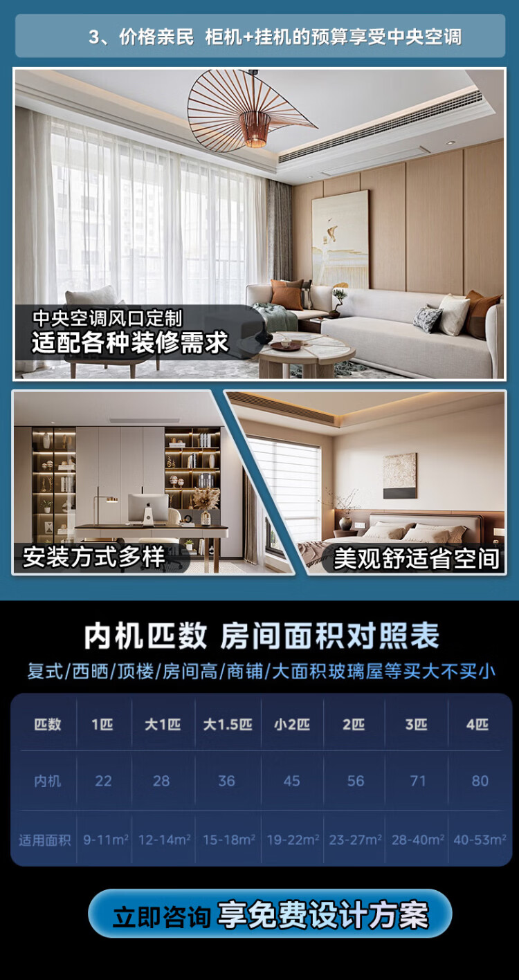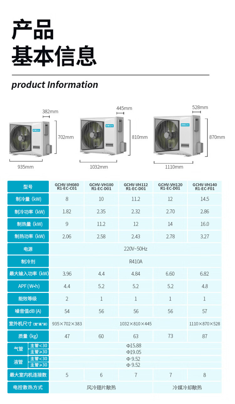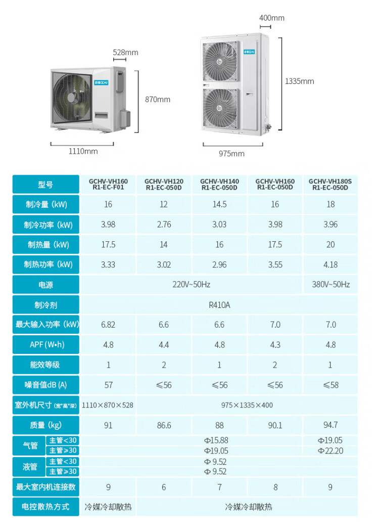 GCHV Jiwei Central Air Conditioning Household Central Air Conditioning Commercial Heating and Cooling Frequency Converter Multi-split Embedded 5 HP One to Four Three Bedrooms and One Living Room