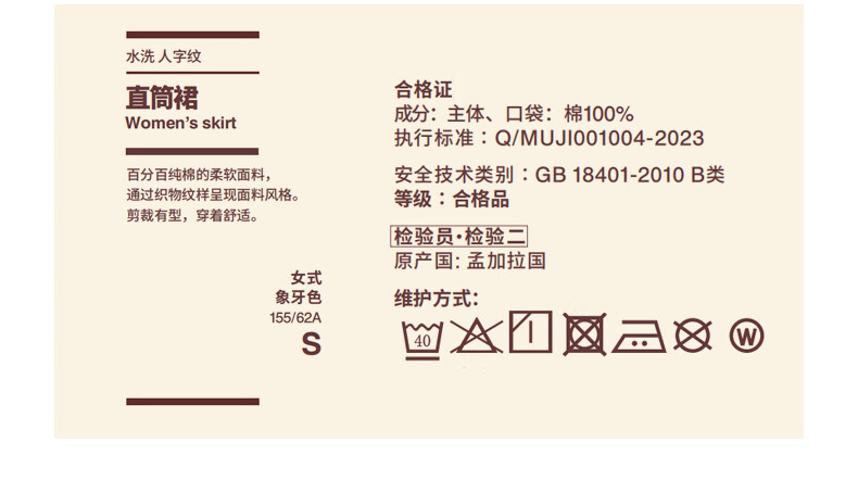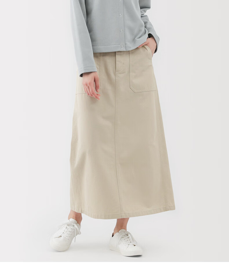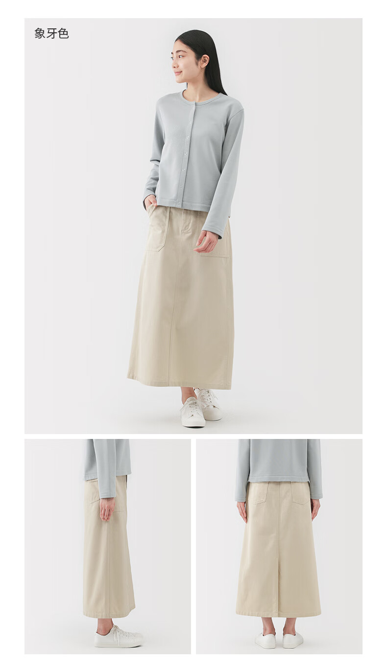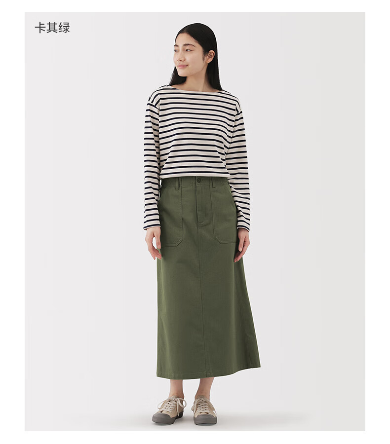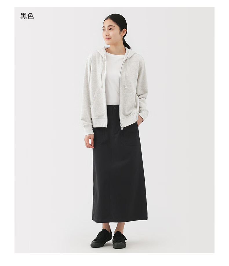 MUJI Women's Washed Herringbone Straight Skirt Long Skirt Women's Pure Cotton 25 Years Autumn Skirt Women's Black M (160/66A)