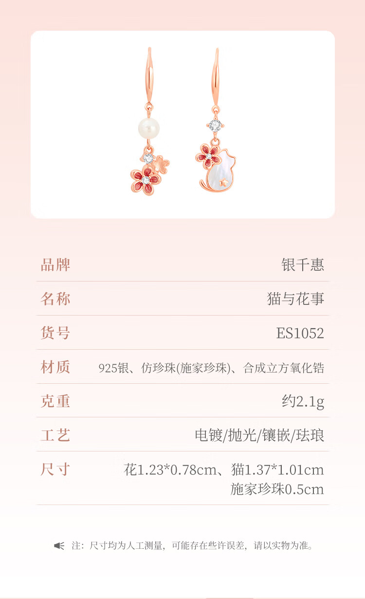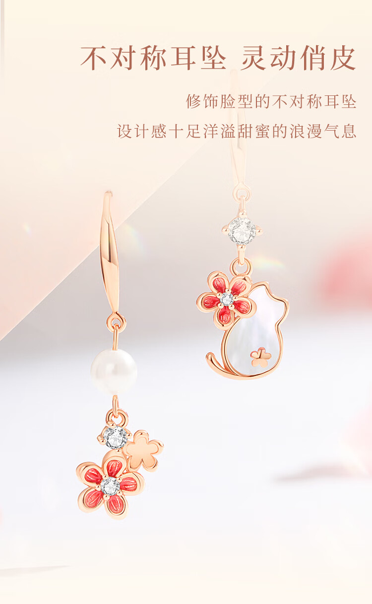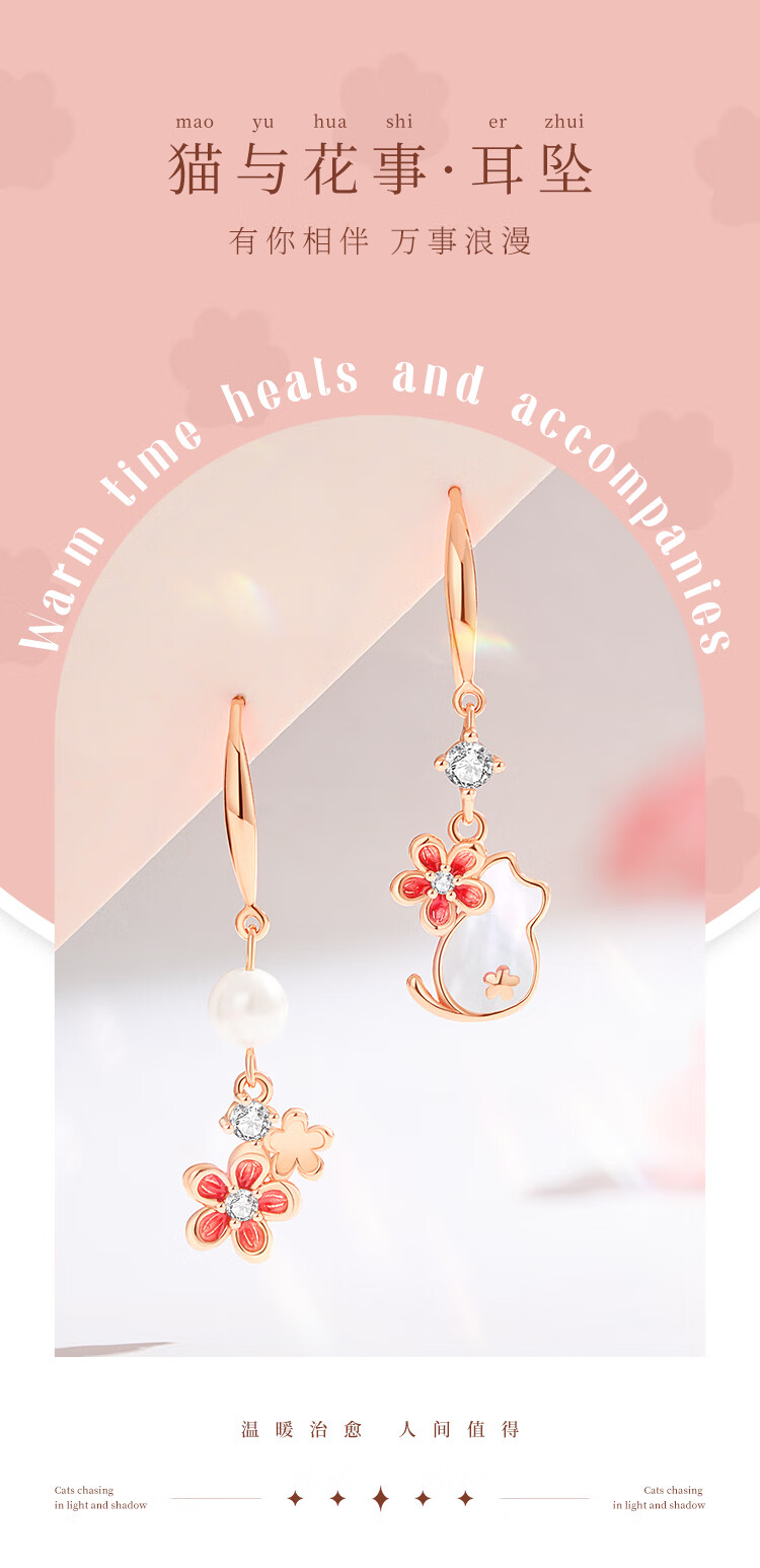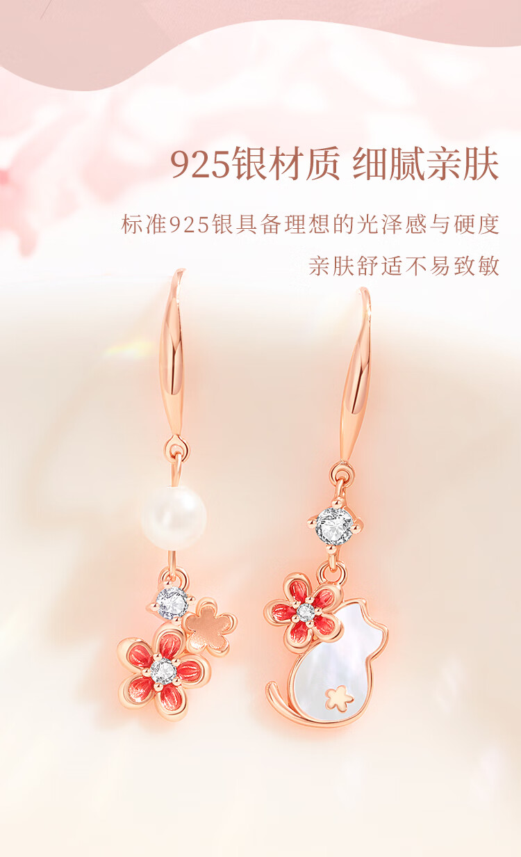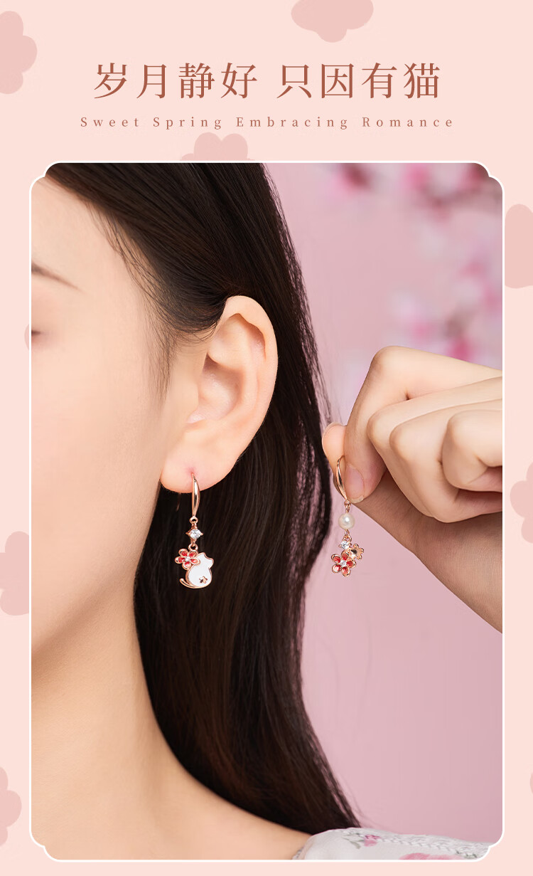 Ginqianhui 925 silver cat earrings for women 2025 new peach blossom earrings jewelry birthday and Valentine's Day gifts for girlfriend Cat and Flower Earrings/925 Silver + Seven Warehouse Delivery/Next Day Delivery Anniversary Gift/Exquisite Gift Box/Girlfriend