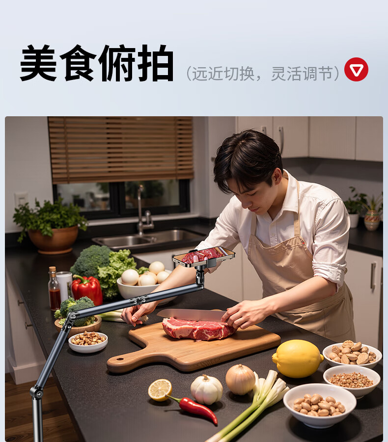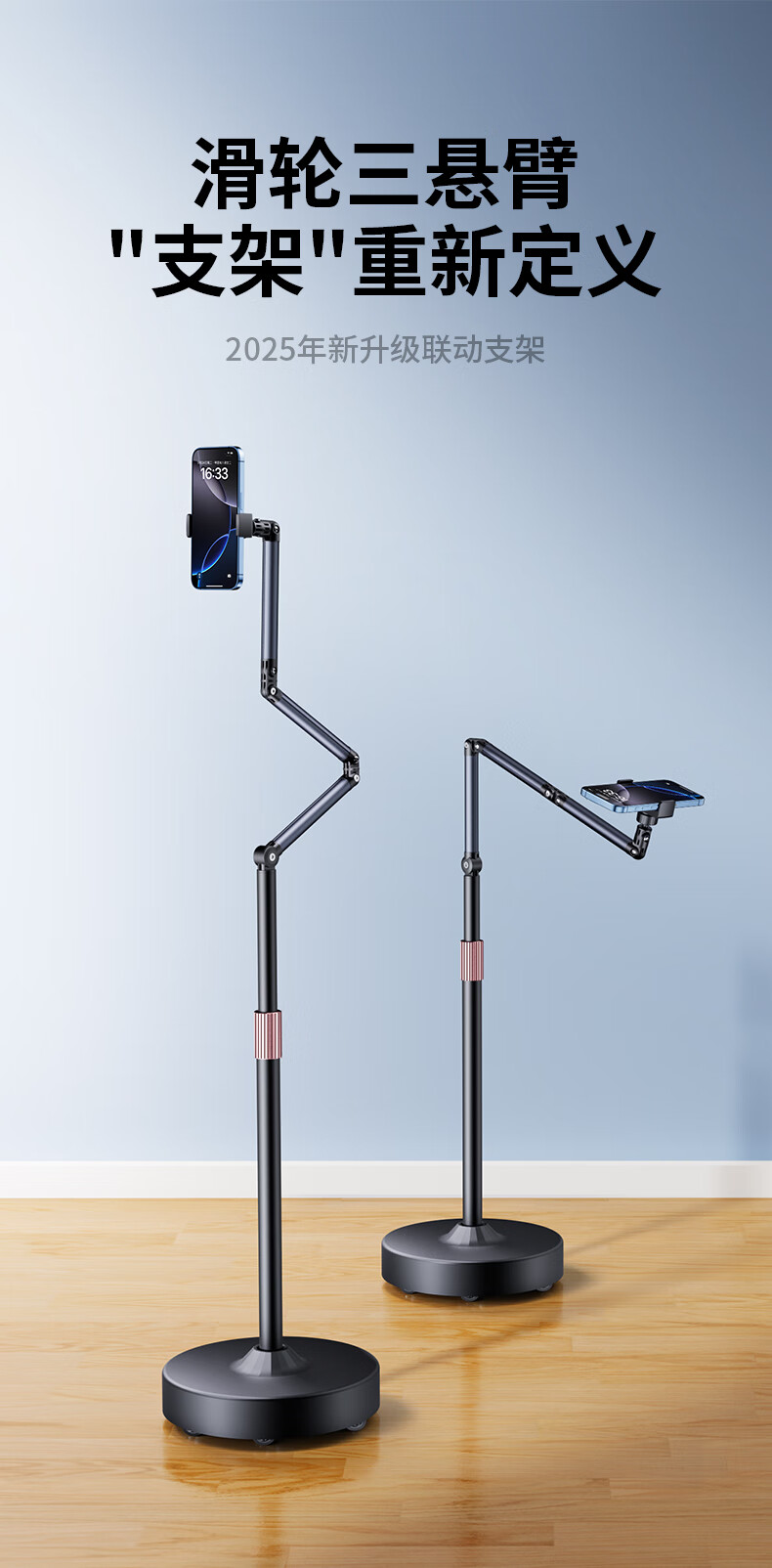 JIAHUACAI universal pulley mobile phone stand, dedicated for floor-standing overhead photography, 2025 new wheeled tablet support stand, multi-functional bedside bedside stand for watching dramas while lying on the bed, shooting video, single arm - for standard mobile phones