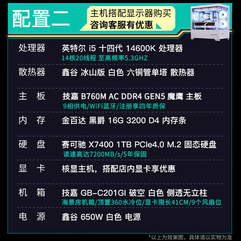 GIGABYTE 14600K core display no graphics card host 265K/14700KF/285K/14900K/245K/14490F desktop gaming office computer assembly DIY complete machine with seven 12400 core display host