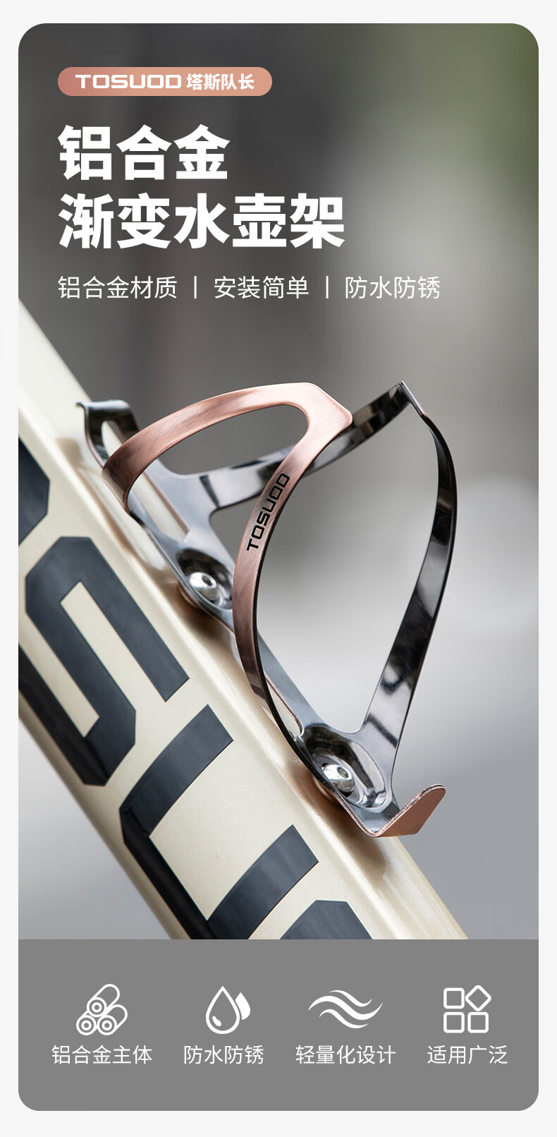 Captain Tas bicycle water bottle cage aluminum alloy one-piece design high-tenacity anti-corrosion water cup holder mountain road bike accessories pink and white gradient aluminum alloy one-piece molding