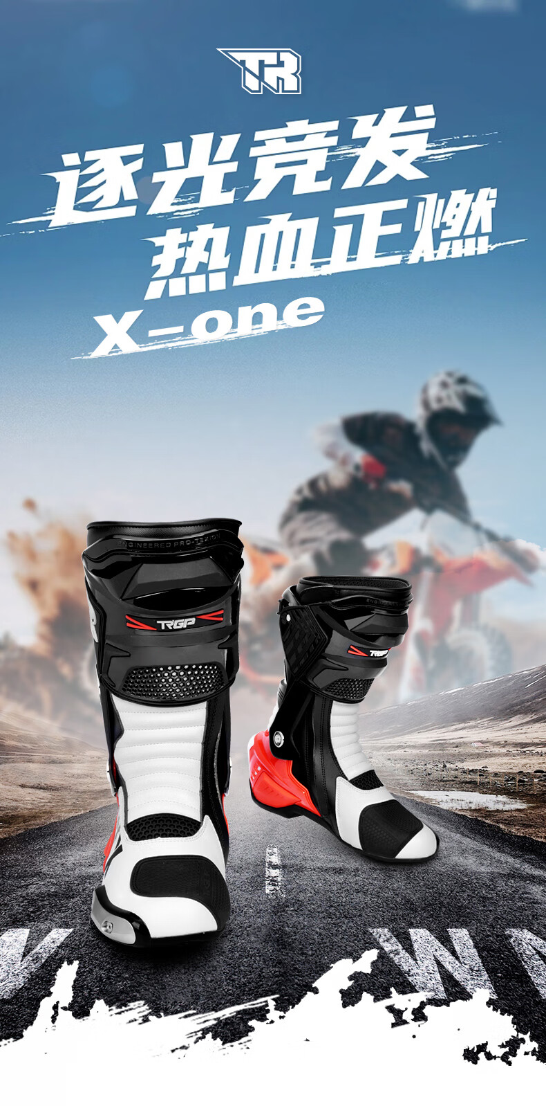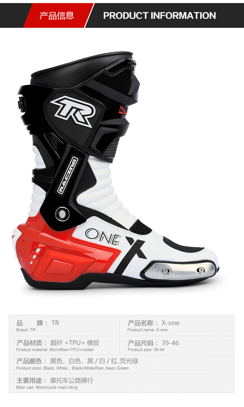 TR motorcycle riding boots anti-fall competitive racing shoes for men and women Tiger road rally track rider shoes for all seasons X-ONE black PRO 42