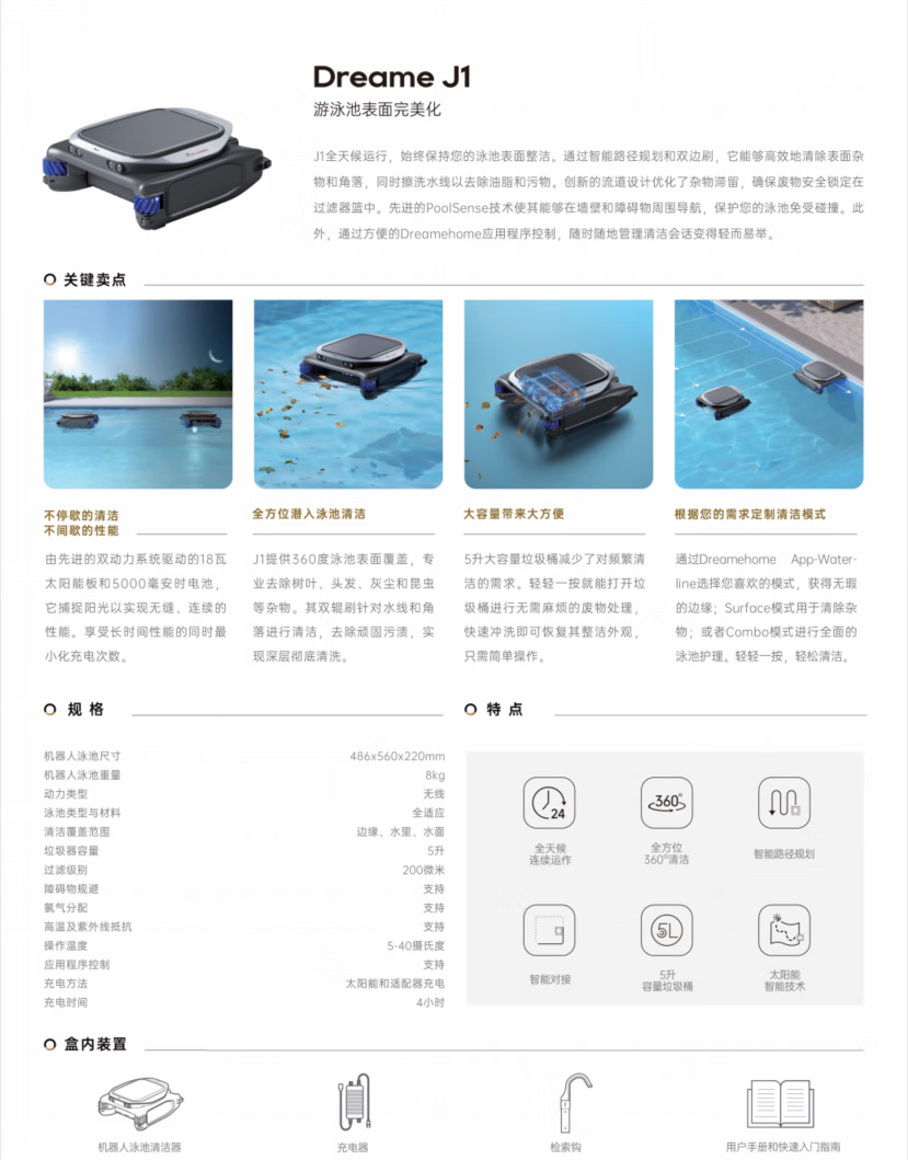 J1 swimming pool surface cleaning robot solar energy automatic cleaning water purification intelligent swimming pool cleaner J1