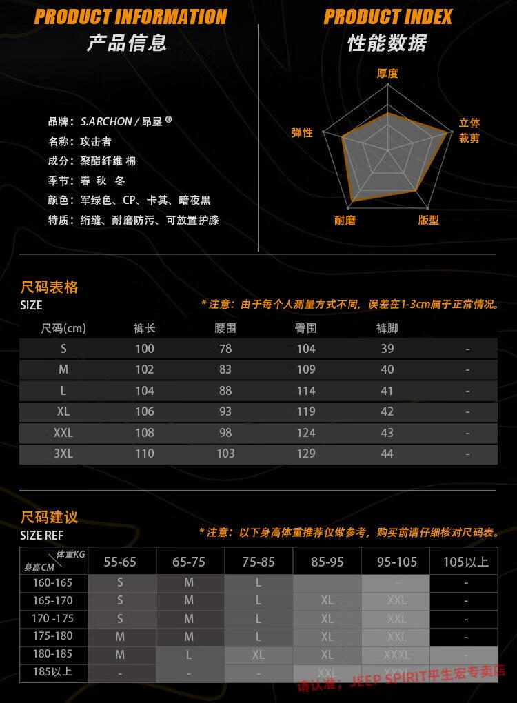 JEEP SPIRIT2025 New Outdoor Tactical Pants Men's Summer Thin Archon 511 Combat Workwear Long Pants Anti-scratch and Wear-Resistant Black L