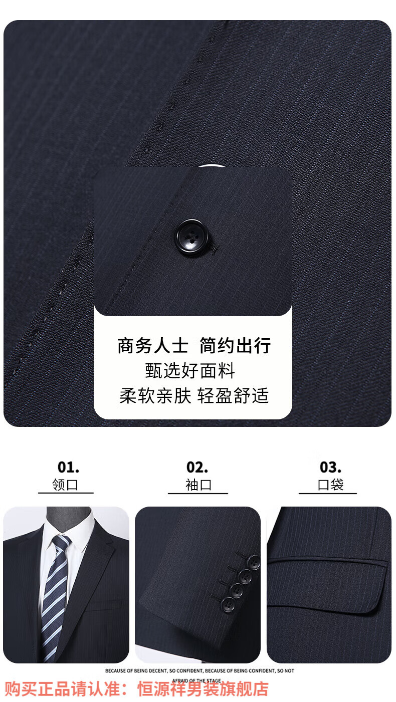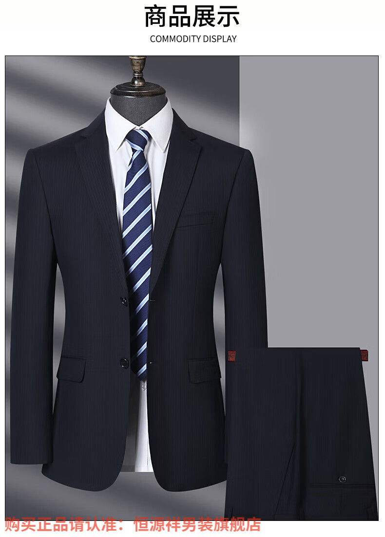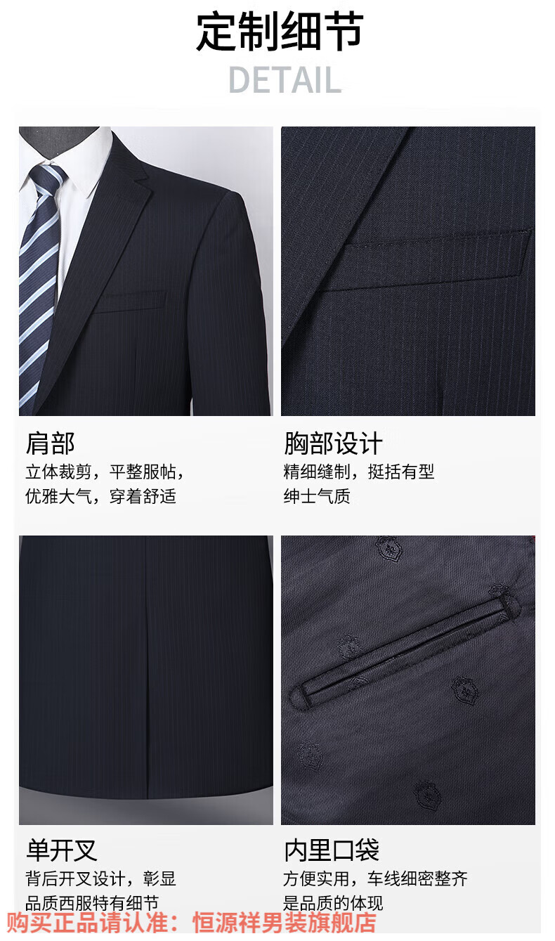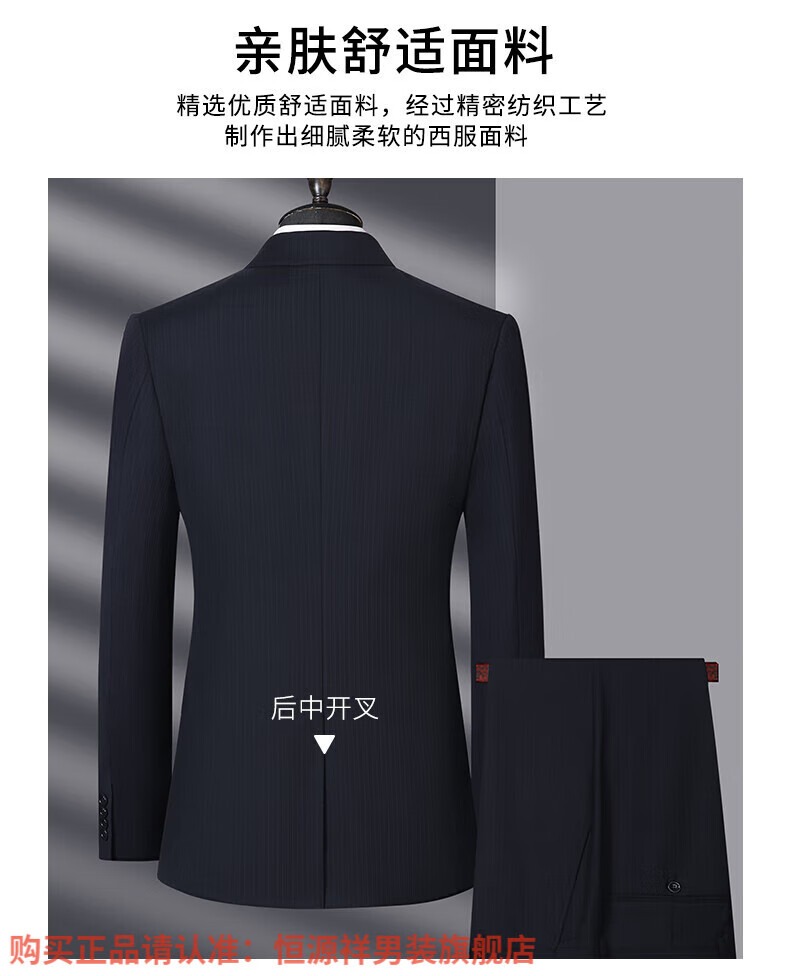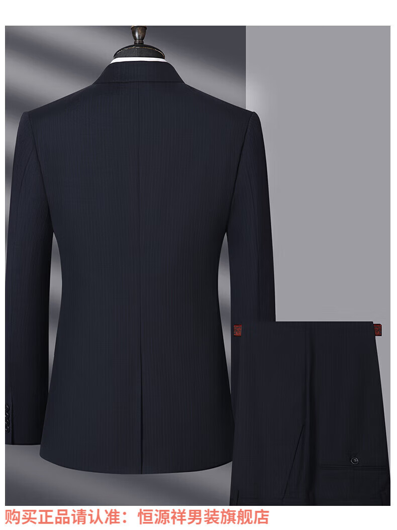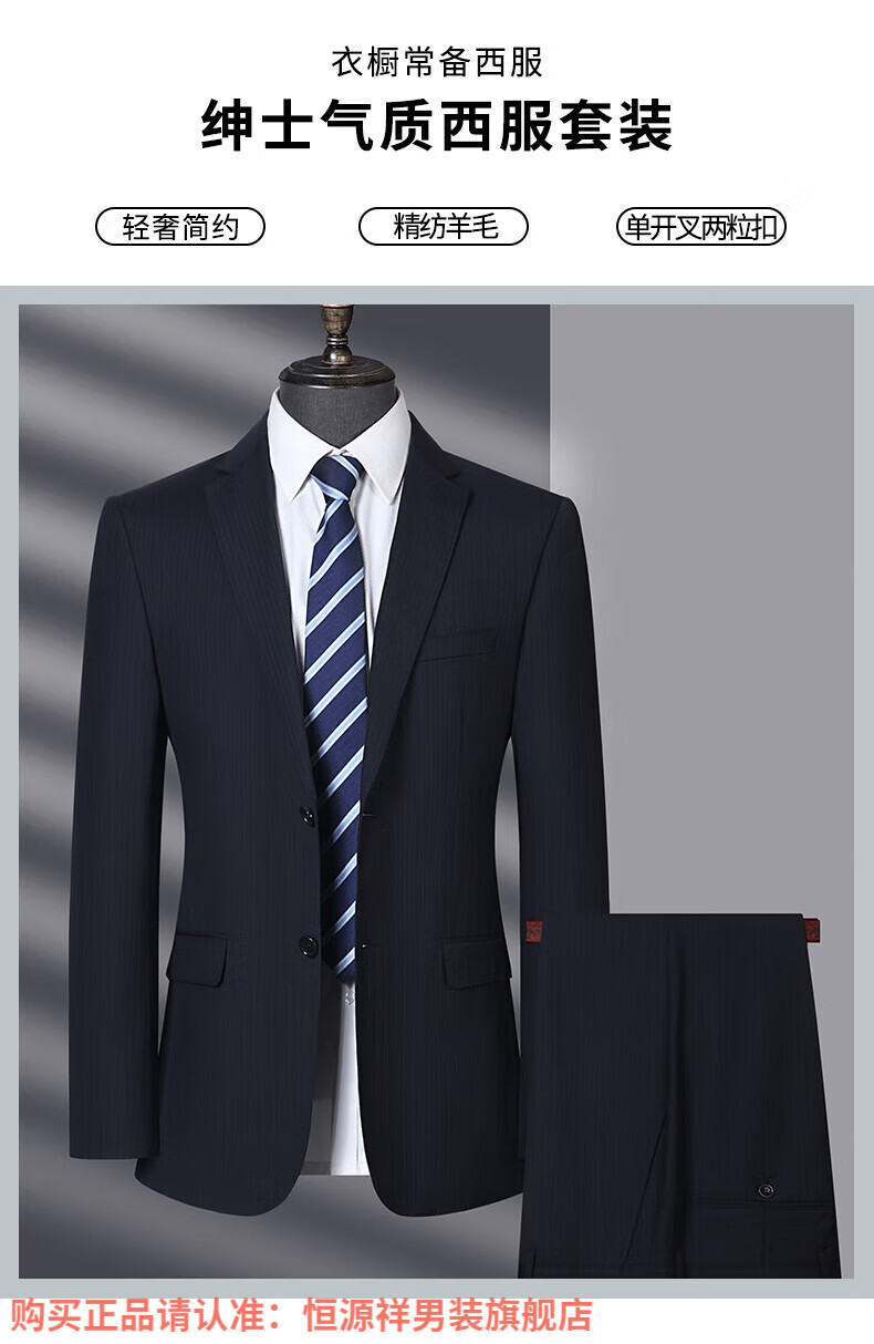 Hengyuanxiang high-end light luxury men's worsted wool suit striped middle-aged business formal suit wedding dress jacket navy blue center back slit L 175/48B