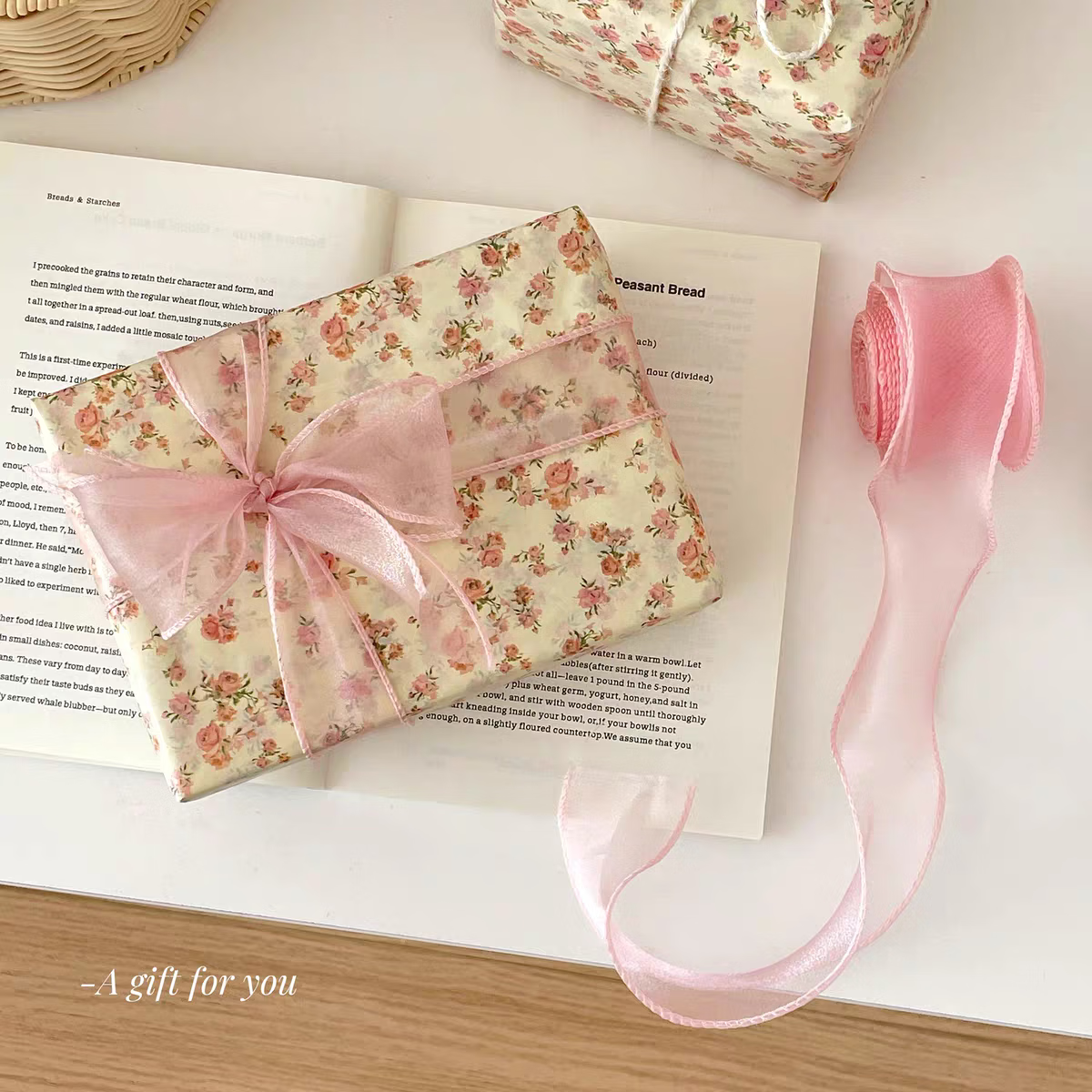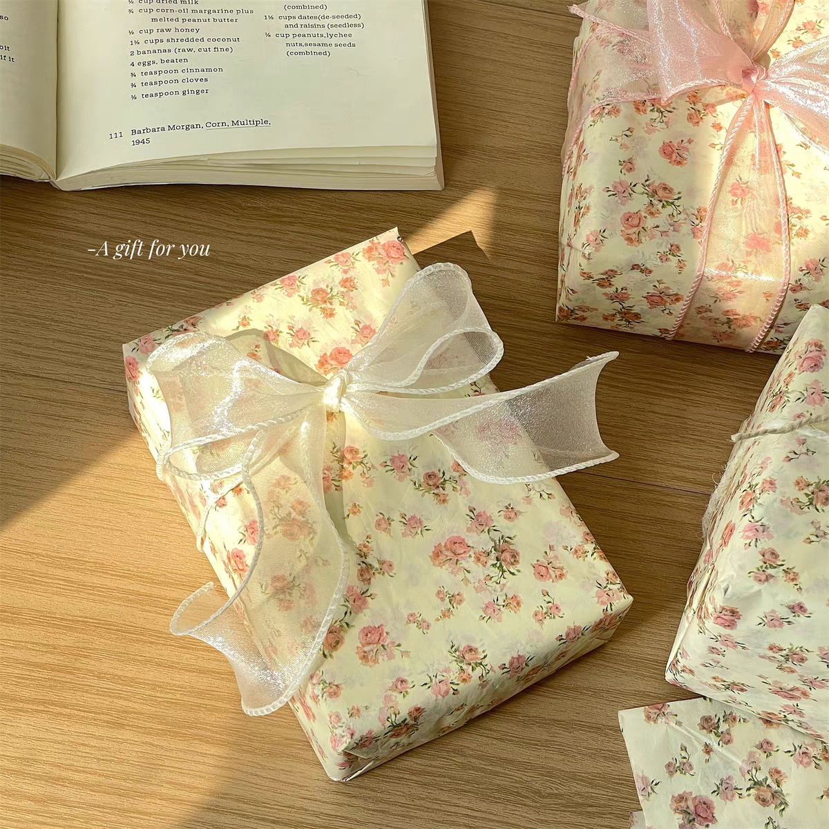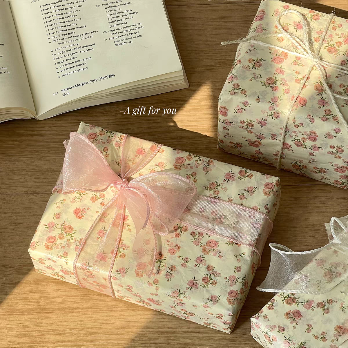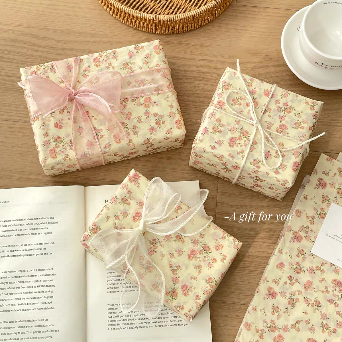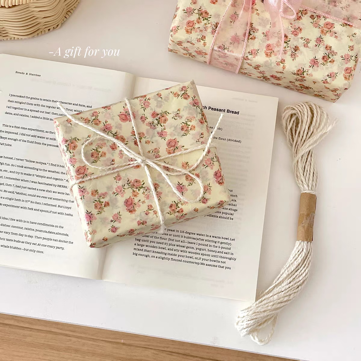 Romantic pink small floral snow pear paper flowers, floral art, high-looking gift wrapping paper, holiday surprise for girlfriend, 10 pieces of floral snow pear paper + one roll of cream fishtail yarn