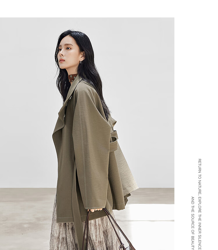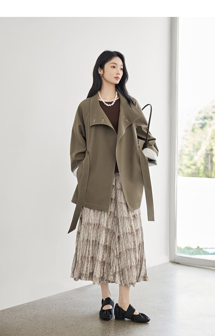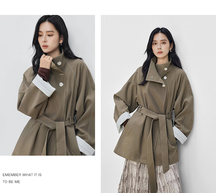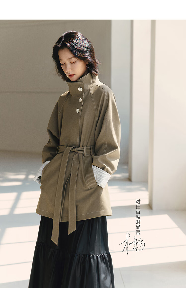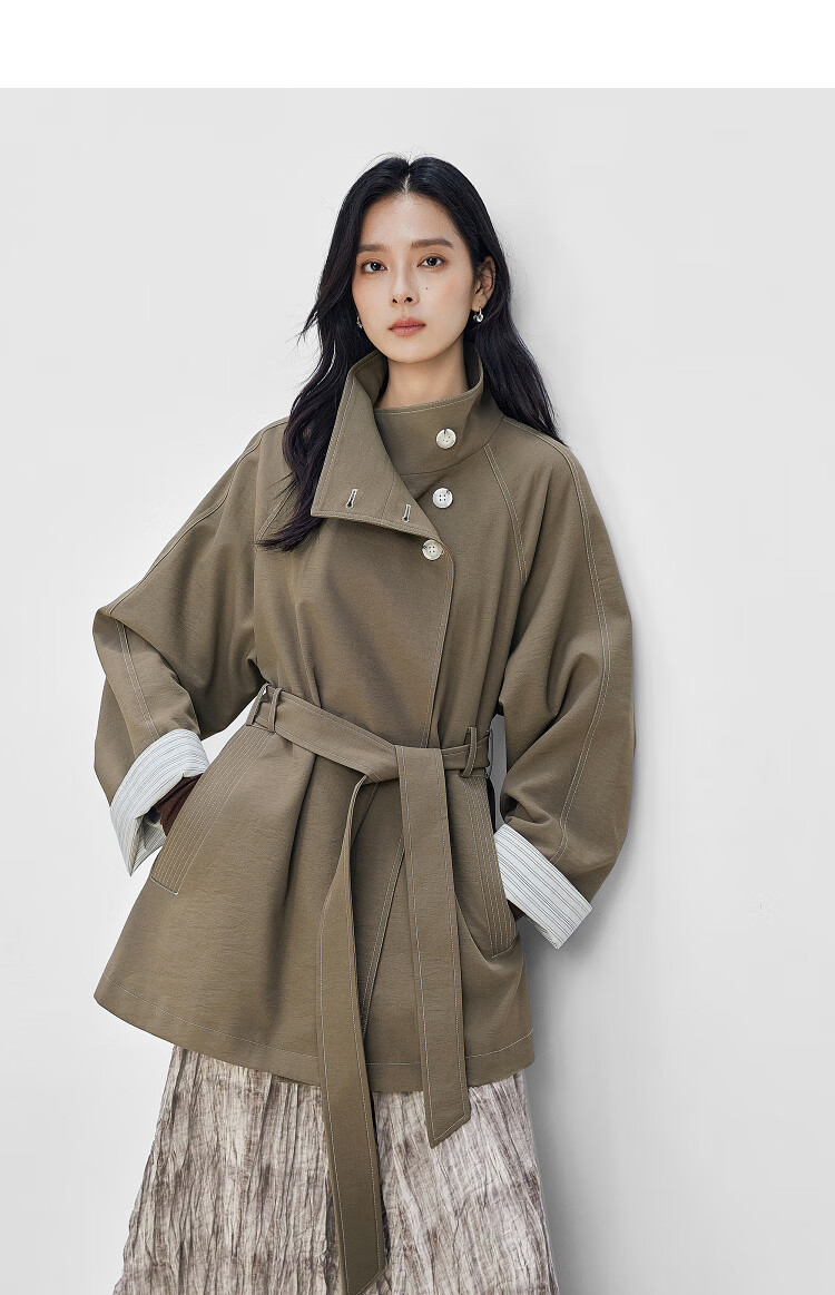 Dialogue (DUIBAI) Dujuan same style retro commuter stand collar windbreaker for women 2026 spring new loose casual jacket Khaki Green S