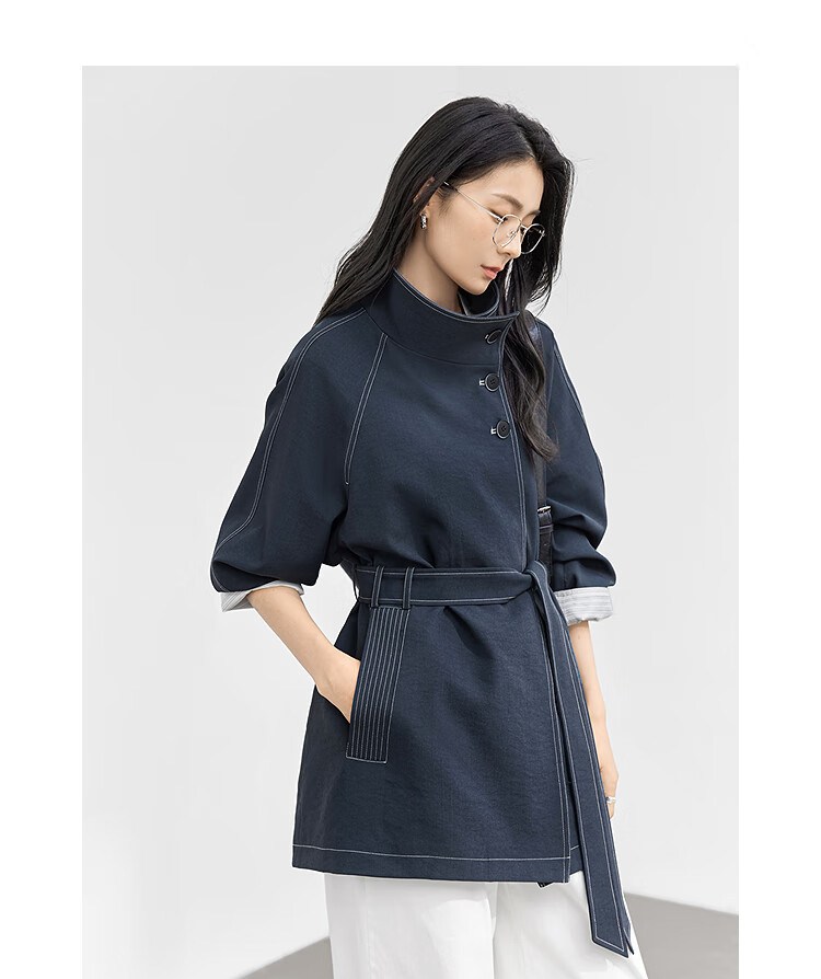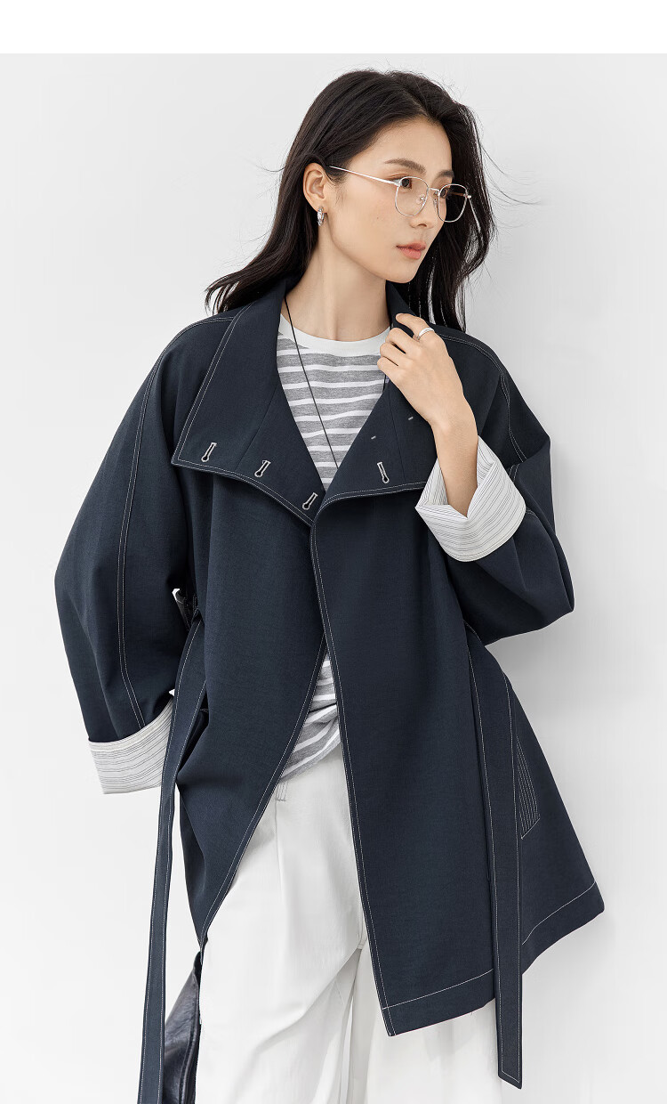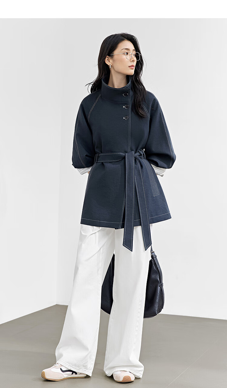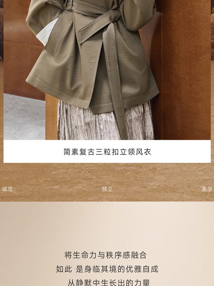 Dialogue (DUIBAI) Dujuan same style retro commuter stand collar windbreaker for women 2026 spring new loose casual jacket Khaki Green S
