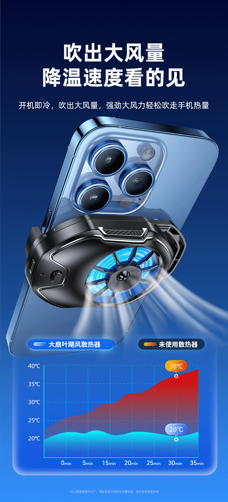 Maoniu (MAONIU) 2025 new mobile phone radiator, two-speed large-capacity battery, super battery life, built-in battery, air-cooled heat dissipation, back clip cooler, live game cooling artifact, super long battery life, large-capacity battery model