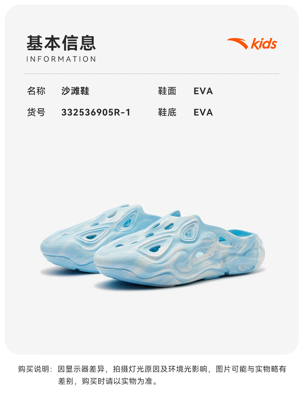 Anta children's sandals, non-slip, men's and women's shoes, 2026 new summer outdoor sports toe-toe anti-collision beach shoes, Mingpu blue/paper white-1 36, shoe inner length 23cm
