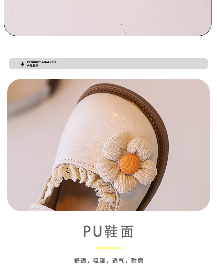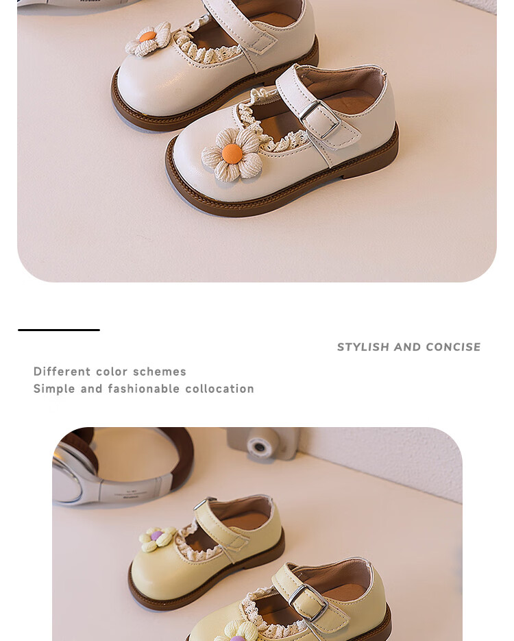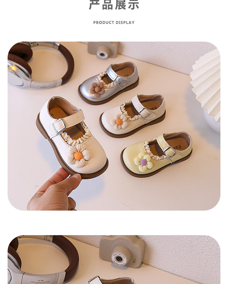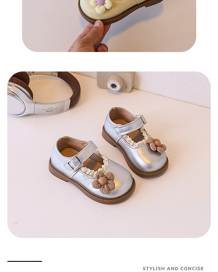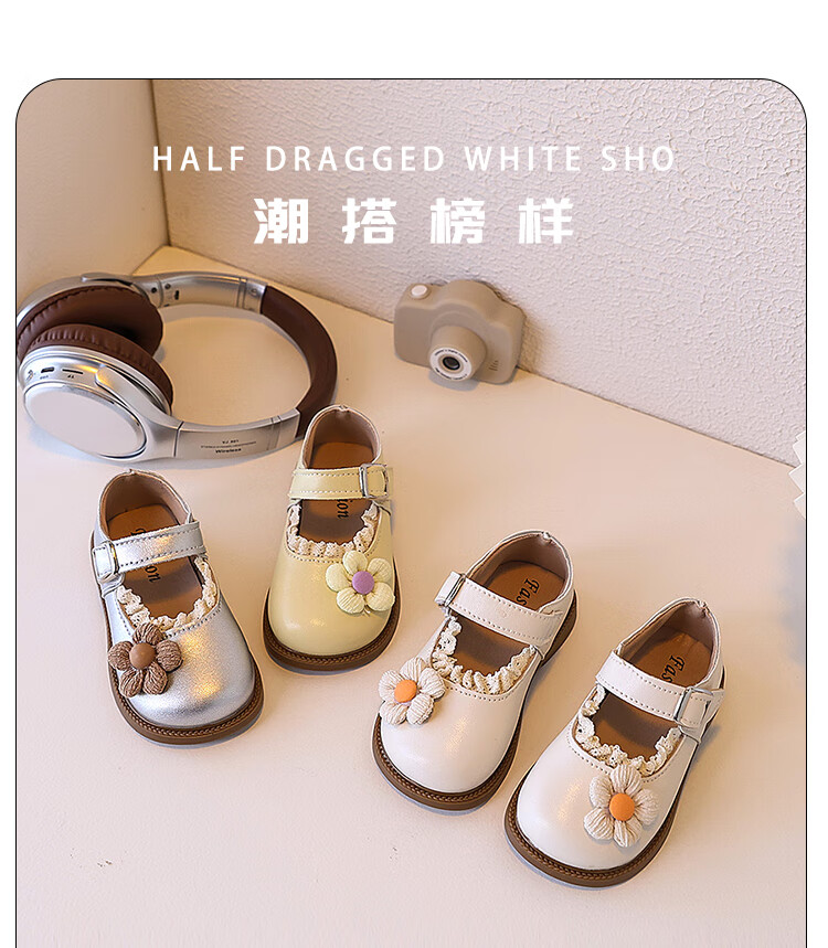 Girls Flower Princess Shoes 2025 Autumn New Korean Style Children's Soft Sole Shoes Anti-Slip Soft Sole Off-White 32 Inner Length 20cm