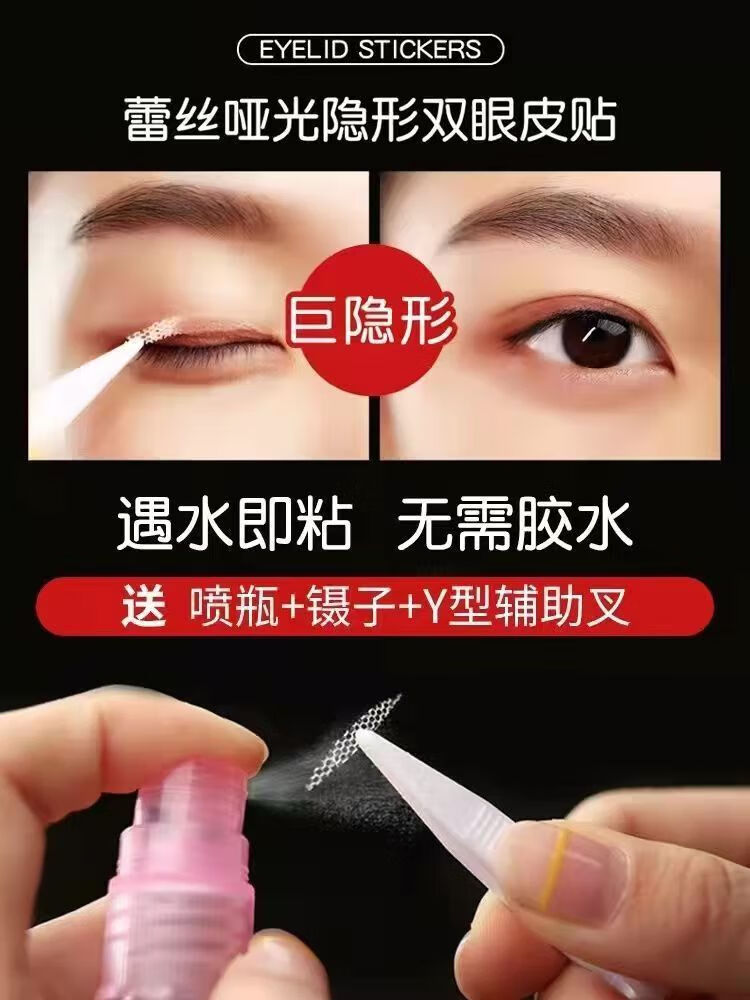 Middle-aged and elderly people aged 30-60 years old, anti-eyelid double eyelid patch with lace invisible natural canthus for sagging eyelids, long-lasting support, anti-eyelid sagging, 600 patches, tweezers + fork + watering bottle