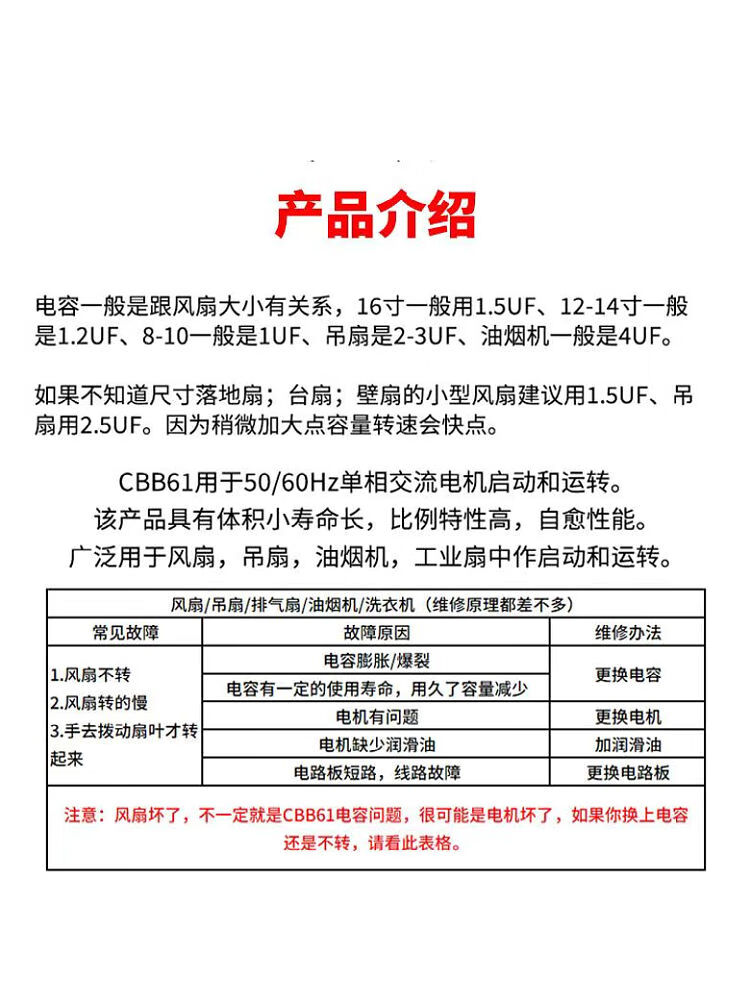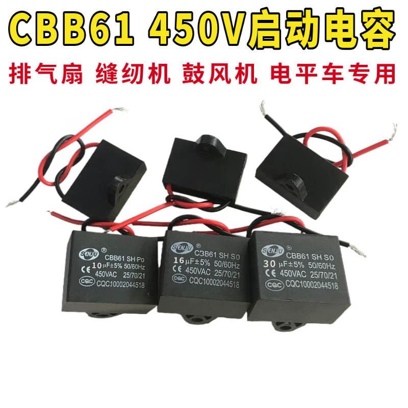 CBB61 sewing machine level car motor starting capacitor 450V10UF/12/14/16/18/20/30uf 10UF 450V with wire