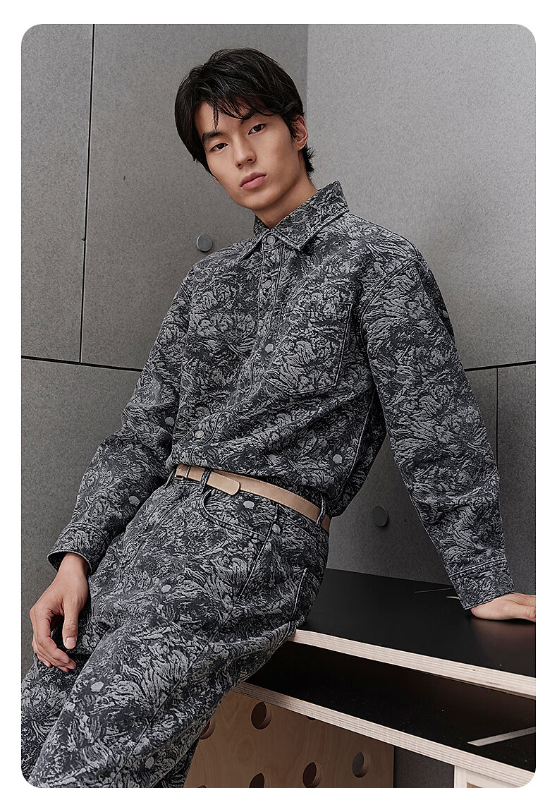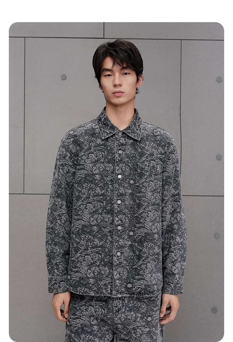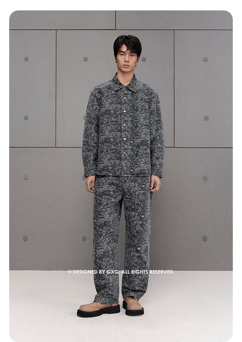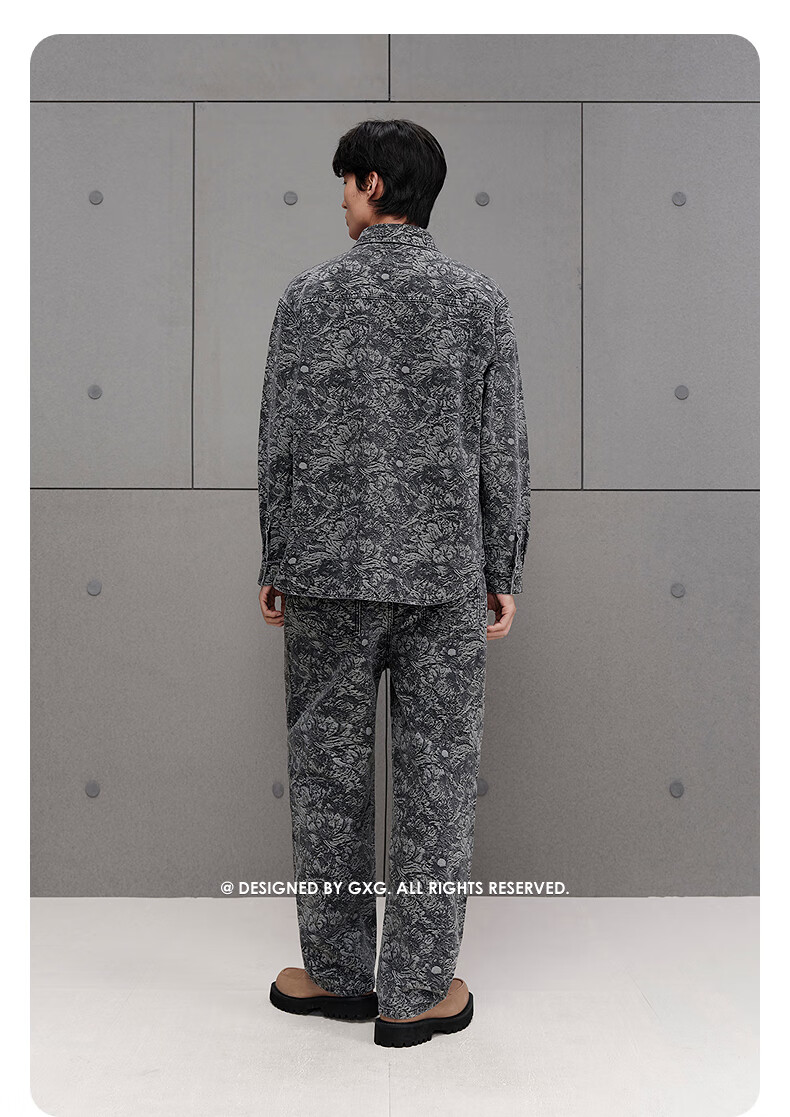 GXG Men's Wear Same Style Full Print Denim Shirt Men's Long Sleeve Jacket 25th Autumn New Product G25XE93014 Gray XL